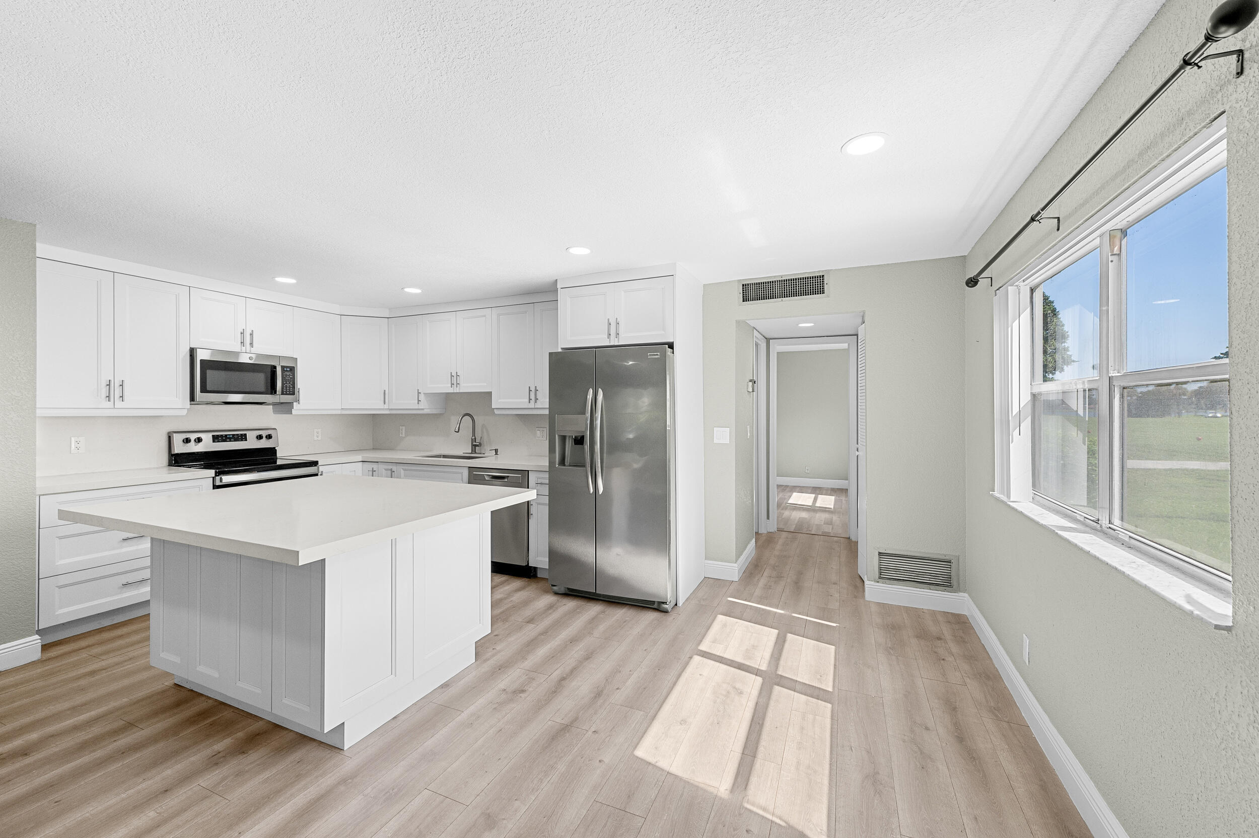 Experience resort-style living in this beautifully renovated 1-bedroom, 1.5-bath condo in the sought-after 55+ Kings Point Golf & Country Club. This ground-floor home offers a bright open floor plan with a stunning modern kitchen featuring a center island with extra storage, quartz countertops, and stainless steel appliances. Enjoy elegant wood-look laminate flooring throughout and beautifully updated bathrooms with tiled showers and frameless glass doors. The enclosed patio offers peaceful golf and water views perfect for morning coffee or evening relaxation. Newer A/C and Hot Water Heater. Kings Point residents enjoy world-class amenities including two 18-hole golf courses, three clubhouses, indoor and outdoor pools, fitness centers, tennis andpickleball courts, restaurants, a theater, courtesy buses, and daily activities for an active lifestyle. Ideally located just minutes from vibrant downtown Delray Beach, the ocean, top-rated restaurants, shopping, and medical centers. Move right in and start living the South Florida lifestyle you've been dreaming of!