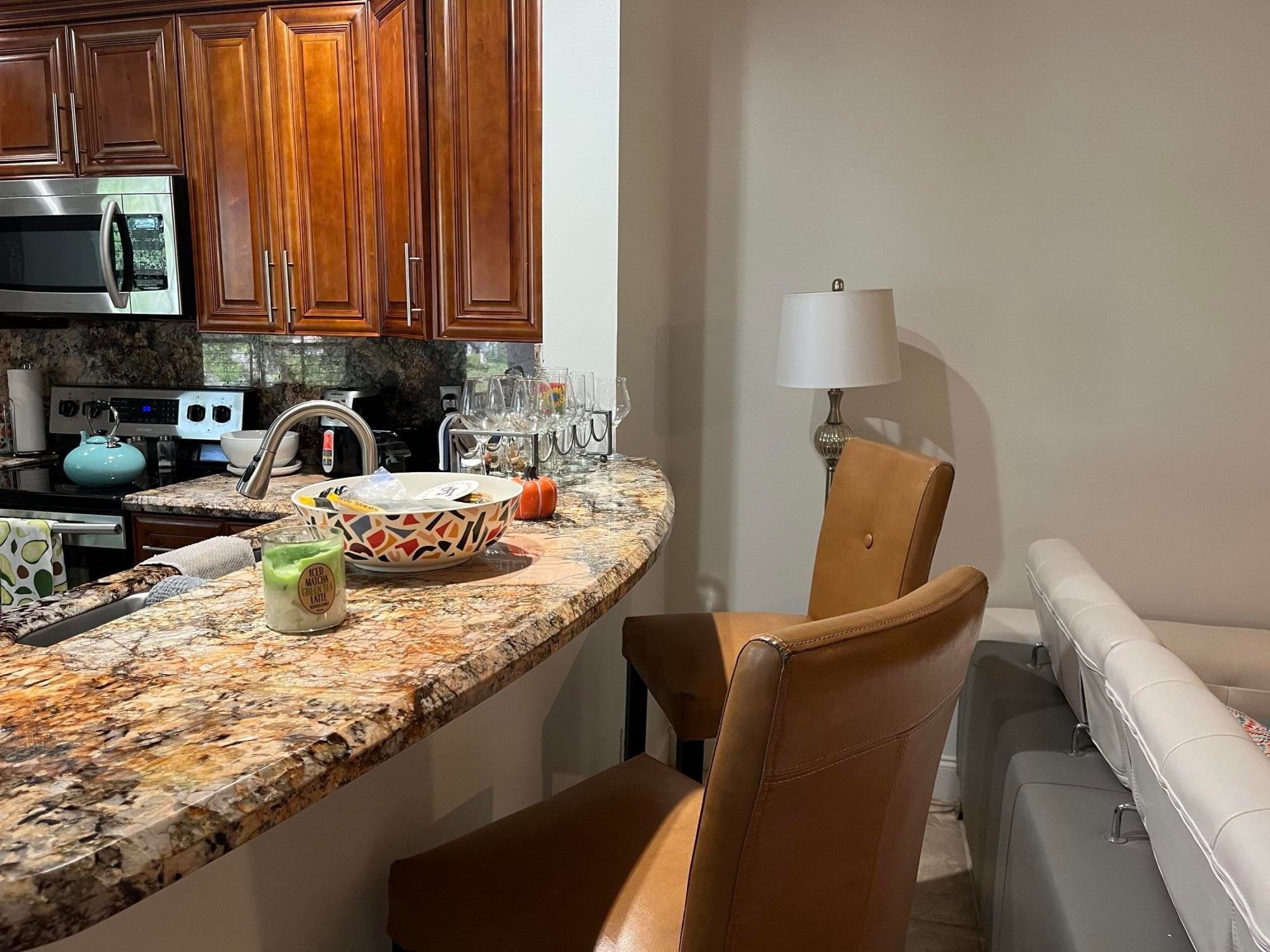 Beautiful, open concept, Condo at Boca Pointe. This is a spacious open living room and dining area with serene garden view. Kitchen has granite counters, newer appliances, enclosed screened patio. High ceilings, large master bedroom and bathroom with luxurious finishing and the perfect guest bedroom. Flat ceilings with no pop corn! Boca Point has a beautiful pool area and desired location!