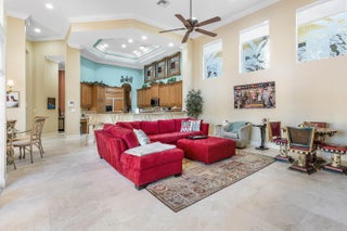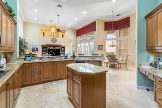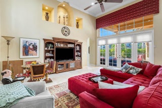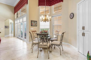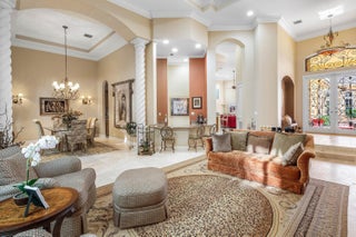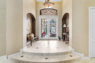 Welcome home to Woodfield Country Club! This elegant one-story courtyard home boasts 3 bedrooms plus an office, 3.5 baths, and a 3-car garage. Features include volume ceilings with crown molding, Saturnia marble floors, and custom window treatments. The living room offers an electric fireplace and wet bar, and the family room includes a built-in entertainment center. Kitchen highlights: maple cabinetry, granite counters, butler's pantry, and breakfast nook. Updates: roof (2022), water heater (2023), pool resurfaced/tiled (2023). Circular driveway, epoxy garage floor, and accordion shutters complete this beautiful home.