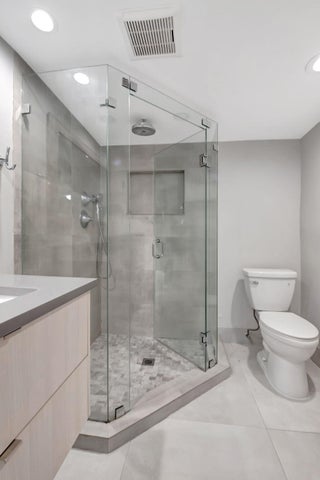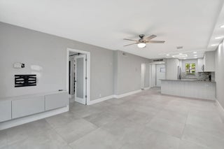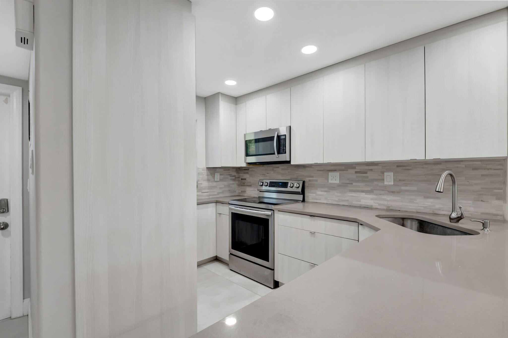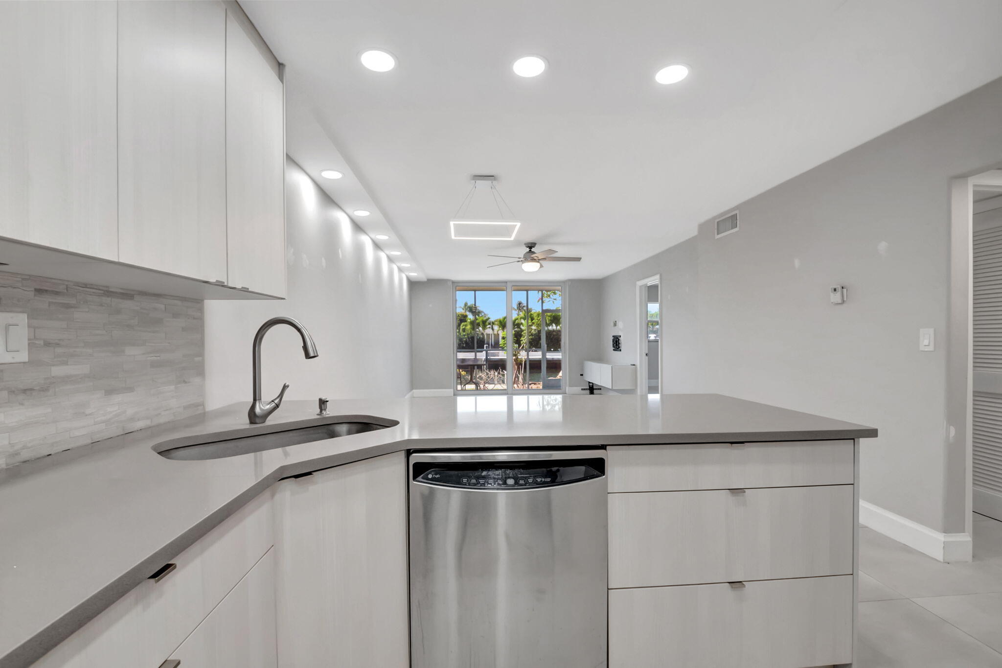 INCLUDES A DOCK! Discover your dream coastal escape with your very own 27' dock on Lake Rogers and the Intracoastal Waterway - a rare gem perfect for boating enthusiasts, with no fixed bridges on the short ride to the ocean. This fully remodeled condo combines modern elegance with beachside tranquility. Step into this beautifully designed ground-floor oasis featuring premium finishes throughout, just a 0.4 mile walk from the beach. Enjoy a sleek kitchen, spa-like bathrooms, and impact windows that bring comfort and style. Unwind on the screened patio overlooking the water. Additional highlights include custom closet systems, a new AC, and storage. Located close to downtown Boca Raton and Mizner Park, this condo truly captures the essence of sunny South Florida living!