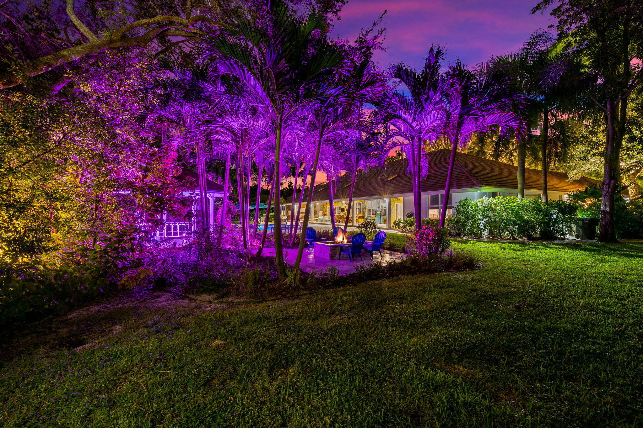 Welcome to this breathtaking 5-bedroom, 3.5-bath estate in the exclusive, guard-gated community of Fieldbrook Estates in the heart of Boca Raton. Situated on a full 1-acre lot of lush, tropical landscaping, this home offers the ultimate blend of privacy, elegance, and South Florida living. Flooded with natural light, the bright, modern interior showcases gorgeous updates and luxurious finishes at every turn. The expansive primary suite is a true retreat -- a huge bedroom paired with a stunning, spa-like bath designed for ultimate relaxation. A sleek wet bar and a gorgeous gourmet kitchen with high-end appliances elevate the home's everyday comfort and entertainment appeal. Impact windows and doors throughout provide peace of mind and efficiency. The backyard is a resort-inspired paradise.Retractable screens separate a portion of the outdoor space, while beyond them awaits the rest of the incredible yard. Enjoy a sparkling pool and hot tub, a charming gazebo surrounded by lush gardens and colorful flowers, and a separate fire pit area perfect for relaxing under the stars. At night, the entire yard is illuminated with vibrant, color-changing lighting, creating a magical ambiance. With a massive driveway and spectacular indoor-outdoor amenities, this home truly embodies luxurious Boca Raton living - a rare opportunity in one of the area's most prestigious neighborhoods.