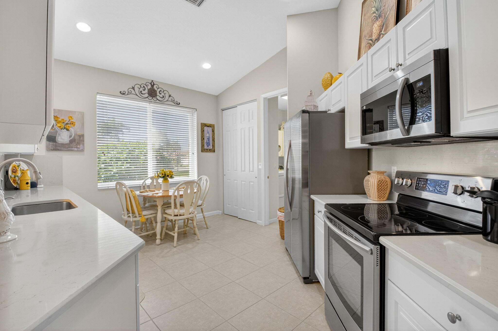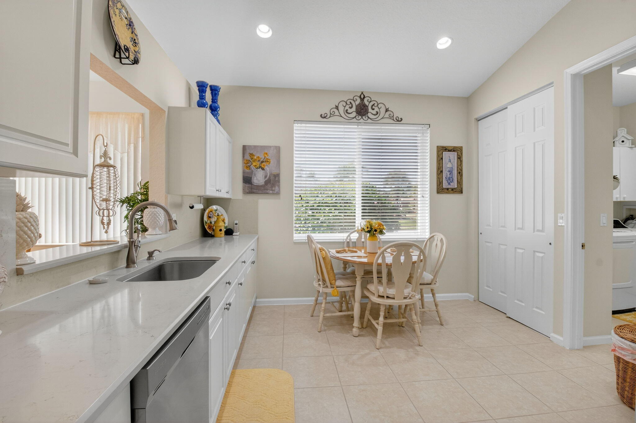 NEW ROOF OCT. 2025. Beautifully maintained & freshly painted 3/2, is located on a spacious corner lot, featuring hurricane shutters, newly installed gutters & tinted windows for comfort & peace of mind. This move-in-ready open home concept is enhanced w/ a neutral pallet, elegant built-in bar & porcelain tile floors, creating style & function-perfect for everyday living & entertaining. The Kitchen is modern light & bright, accented w/ Quartz counters, matching backsplash, stainless appliances & a large pantry. Venetian Isles is a vibrant 55+ community offering country club living. Amenities include a new clubhouse w/ a restaurant serving breakfast & lunch, PLUS an upstairs bistro bar serving dinner. The social hall is utilized for weekly parties & shows, craft room, library, & billiards.Outside is a large resort-like pool w/hot tub, resistance walking pool, Tennis, Pickleball & Bocce Ball courts. Last but not least, a free-standing state- of-the-art workout room.