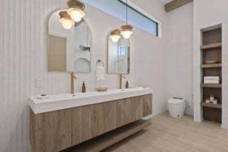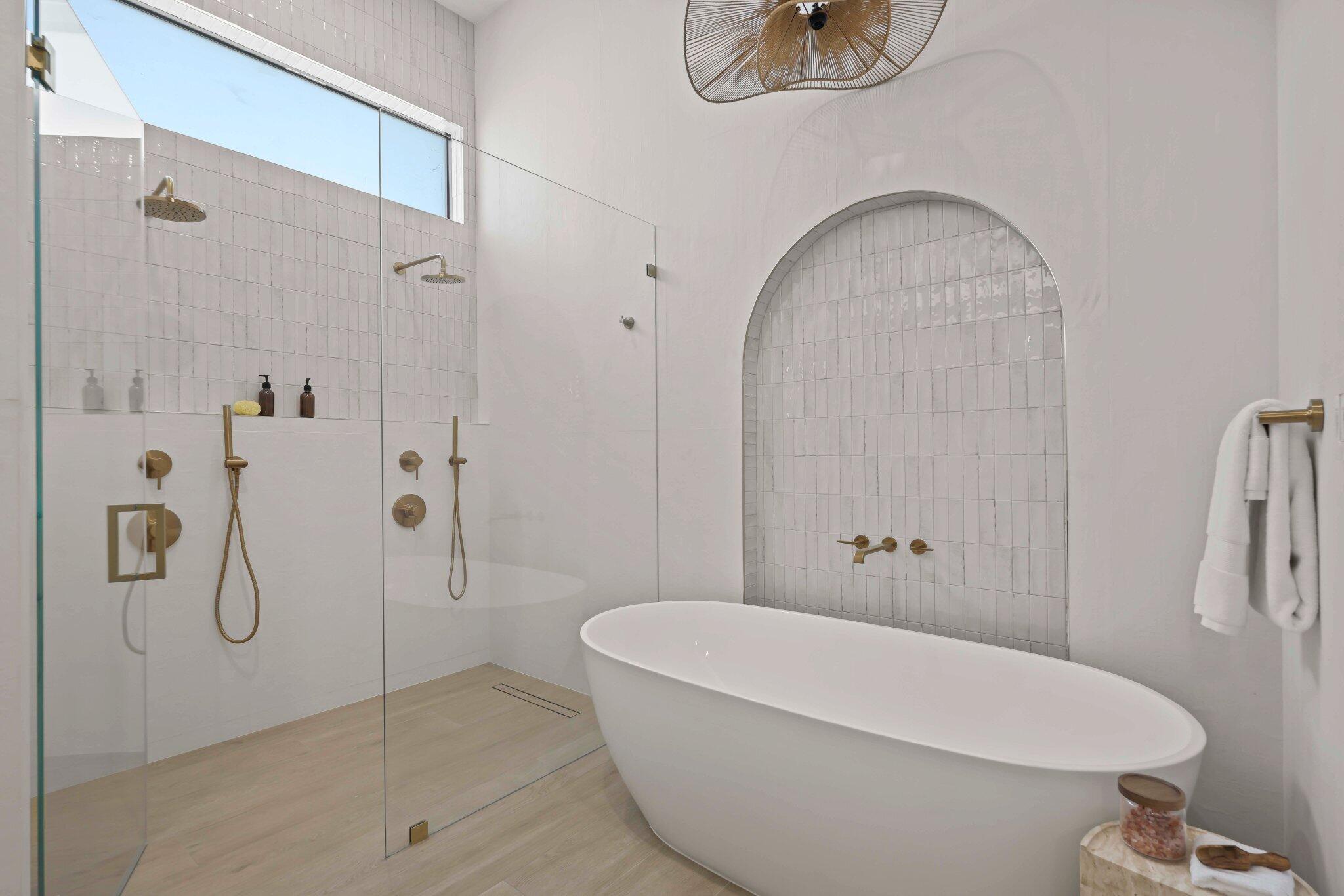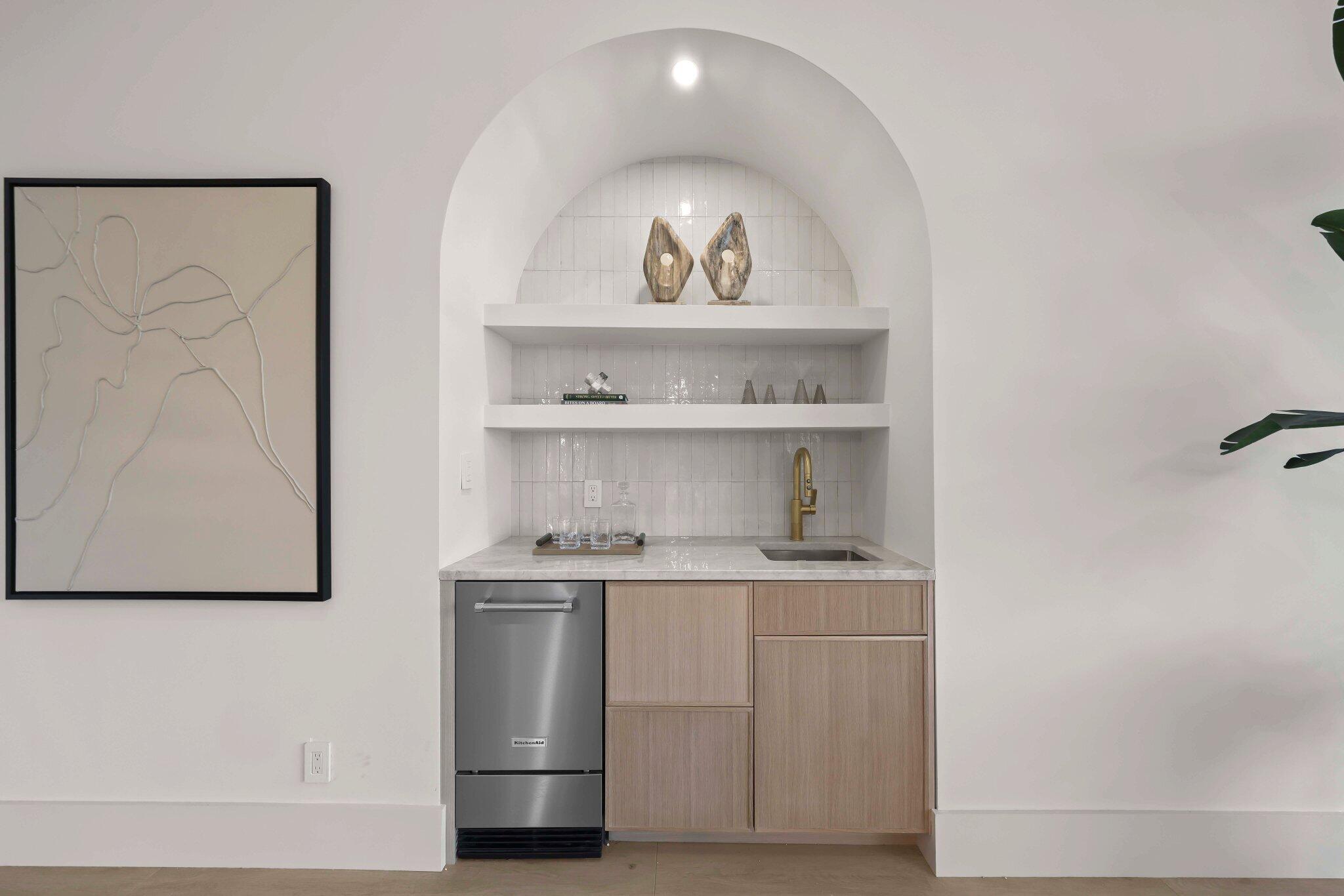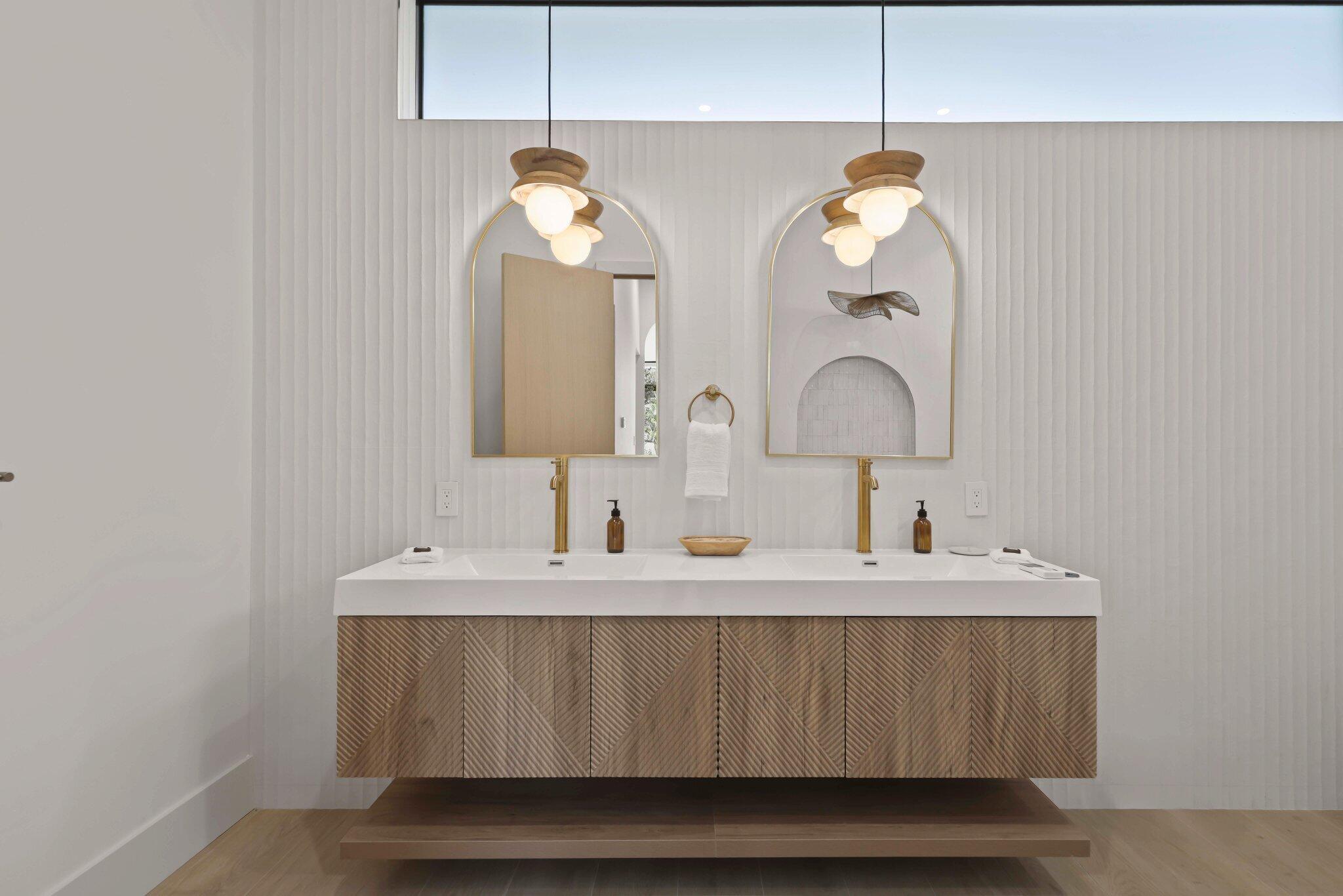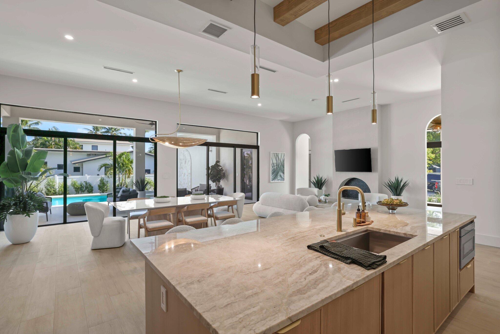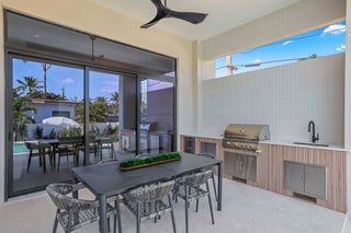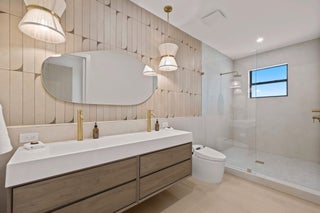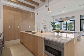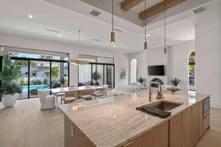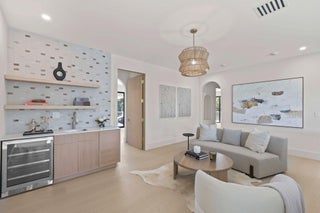 Welcome to Swinton Sands--a brand-new Coastal Modern masterpiece infused with Tulum-inspired serenity, featuring a breezy wrap-around front porch and private balconies off every bedroom. Offering 7,290 total sq. ft., this exceptional residence sits in the heart of Delray Beach on historic N. Swinton Ave--just three blocks from Delray's premier private school and only minutes from the vibrant pulse of Downtown Atlantic Avenue and the soft sands of the Atlantic Ocean. Designed to evoke the effortless elegance of a high-end Tulum retreat, Swinton Sands embraces airy, light-filled interiors, organic textures, soft neutral palettes, and clean modern lines. Expansive custom sliders and an abundance of oversized windows flood the home with natural light, creating a seamless indoor-outdoorconnection throughout. The dramatic 12-ft entryway, wide-plank oak flooring, and custom millwork set a refined tone from the moment you step inside. The gourmet kitchen is a statement of calm luxury with Quartz countertops and handcrafted Rift white oak cabinetry that mingle seamlessly with top-tier Wolf appliances. A dynamic pantry and double laundry room provide exceptional functionality, while the arched, recessed first-floor wet barand tiled fireplacecreate warm, inviting focal points for gatherings. The primary suite is a true spa-like sanctuary, showcasing custom marble finishes, dual vanities, a freestanding soaking tub, and an expansive his-and-hers walk-in closet. All bathrooms throughout the home echo this elevated tranquility with bespoke cabinetry, refined fixtures, and curated designer details. Upstairs, a loft with a barbacklit by striking 12-ft windowsoffers a serene space for work or relaxation, while every bedroom enjoys its own en-suite bath and private porch, continuing the purposeful indoor-outdoor Tulum-inspired living experience. The home is fully pre-wired for electric shades, smart-home ready, and includes connections for both a heater and generator. Outside, the resort-style backyard transports you to your own private escape. Enjoy the 15x30 heated saltwater pool with a 6' sunshelf and 6x6 jacuzzi, all enhanced by custom lighting and full automation. Entertaining is elevated with a summer kitchen featuring a Coyote grill, porcelain flooring throughout the loggia and pool deck, and a private stone outdoor shower. Lush tropical landscape lighting completes the ambiance day and night. Swinton Sands offers the ultimate blend of luxury coastal living and the tranquil, elevated aesthetic that sets this home apart from anything else on the Delray market.