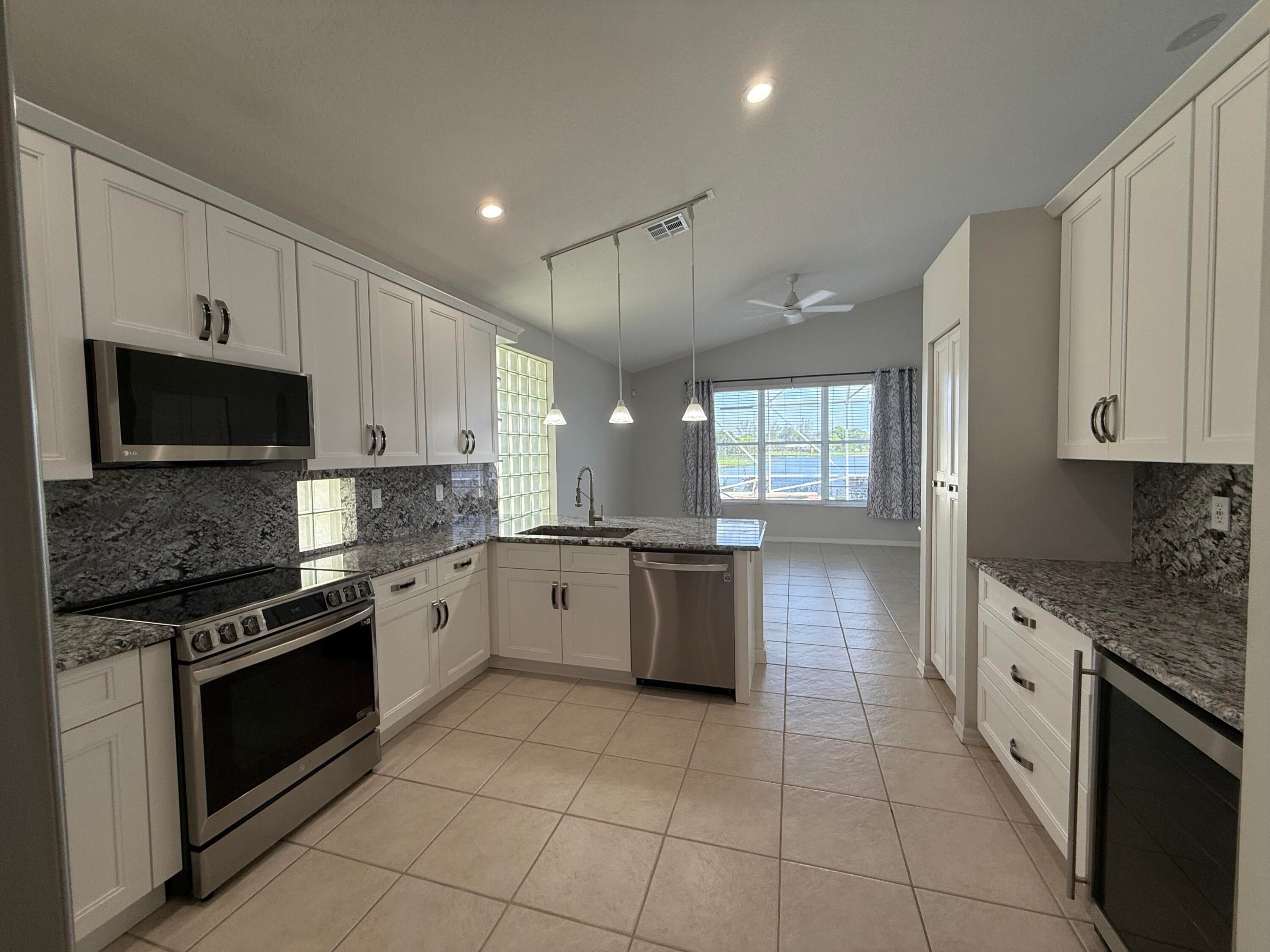Welcome to your dream home! This immaculate four bedroom three bath residence features a breathtaking Lakeview from your private, screened in backyard w/salt filtrated pool and waterfall spa perfect for entertaining. This property has over $200,000 in upgrades including newer AC unit, pool equipment, security system, kitchen updated bathrooms, laundry room, recessed, lighting, outdoor LED multifunction light bars etc.,The custom kitchen is equipped with granite countertop, ss appliances, wine refrigerator and beverage center. The primary bedroom has two walk-in closets and en suite bathroom. The home has 3 additional bedrooms and 2 additional baths. Perfect home to enjoy a cup of coffee in the morning overlooking the beautiful lake or a beverage at night enjoying the sunset.
