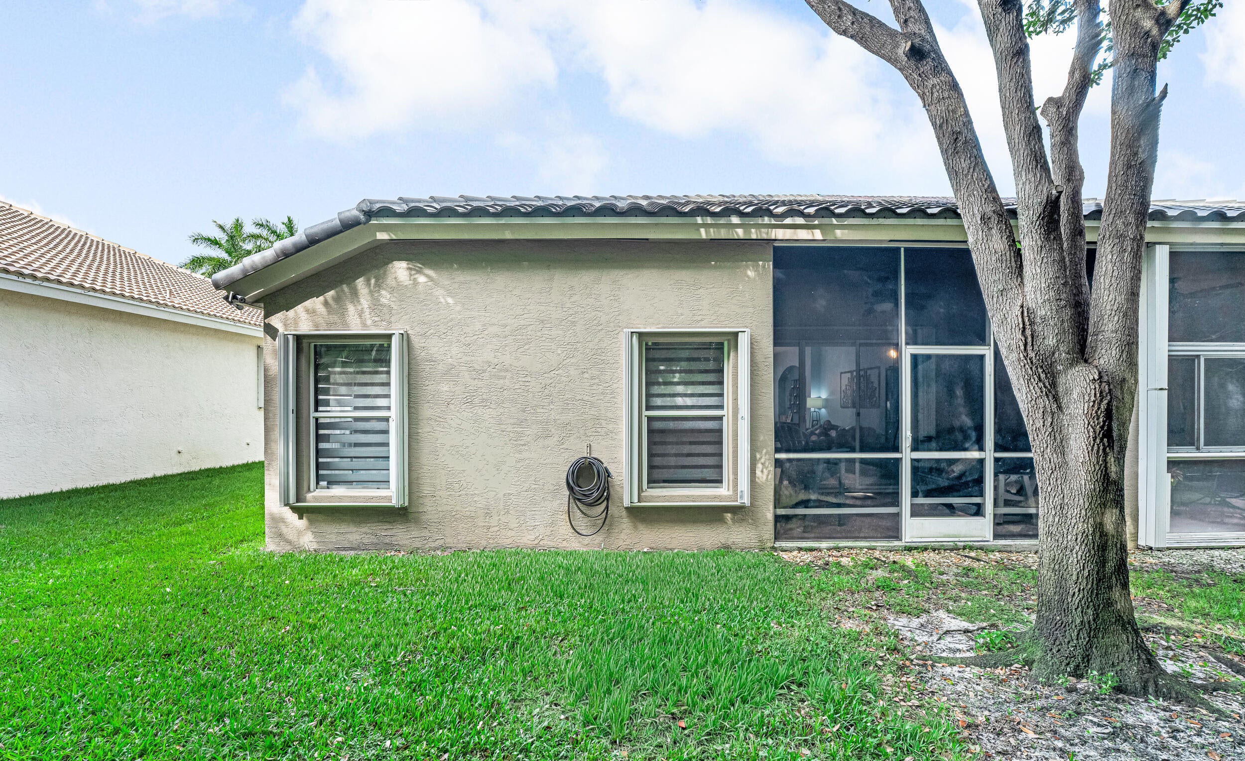 This ultra clean villa is a rare builder's model - 1 of only 2. Open and bright you're sure to feel right at home. Entering through the hurricane impact double doors & be greeted by a spacious living area and updated kitchen. The guestroom, guest bath and inside laundry are at the front of the home, flowing through the living room to the large den , which could easily be converted to a 3rd bedroom. Further in you'll find the covered & screened patio, perfect for relaxing (mostly) outdoors in privacy. Sliding doors open from the living room & primary bedroom. The primary bedroom has an extra deep walk-in closet & large ensuite bathroom. Be sure to check out the interactive 3D walkthrough tour! Multi-million Dollar Renovated Clubhouse reopens in December. Get in now & get ahead!*Assessment balance will be paid by the seller at closing. *Roof Replaced in 2024 *Solar Panels added in 2023 - Electric bill avg is only $94 a month! *AC Handler in Garage Replaced in 2024 *Compressor Replaced in 2019 by Past Owner *Hurricane Accordion Shutters on all but Entrance Window *Hurricane Impact Front Doors *Stove & Microwave Replaced in 2021/22 *Kitchen has all Wood cabinets *Laminate Floors in Both Bedrooms *Oversized walk in closet with Built-In Shelves & Racks *2 Solar Tube Lights in Living Room *Exterior of Home Painted by HOA in 2018 & Will Be Again in 2028 *Leaf Filters on all Gutters *Solar panel loan assumable by buyer - 23 years remaining at $156 per month or payoff apprx $26k Palm Isles boasts multiple tennis courts, pickleball courts, pools, on site cafe & more in addition to a wealth of clubs and activities to keep you engaged and entertained! Multi-million Dollar Renovated Clubhouse reopens in December. Get in now & Get Ahead!