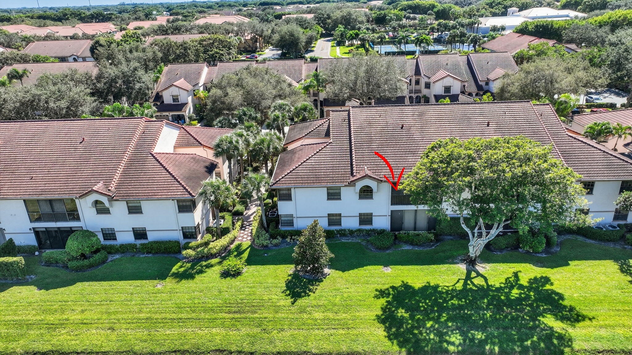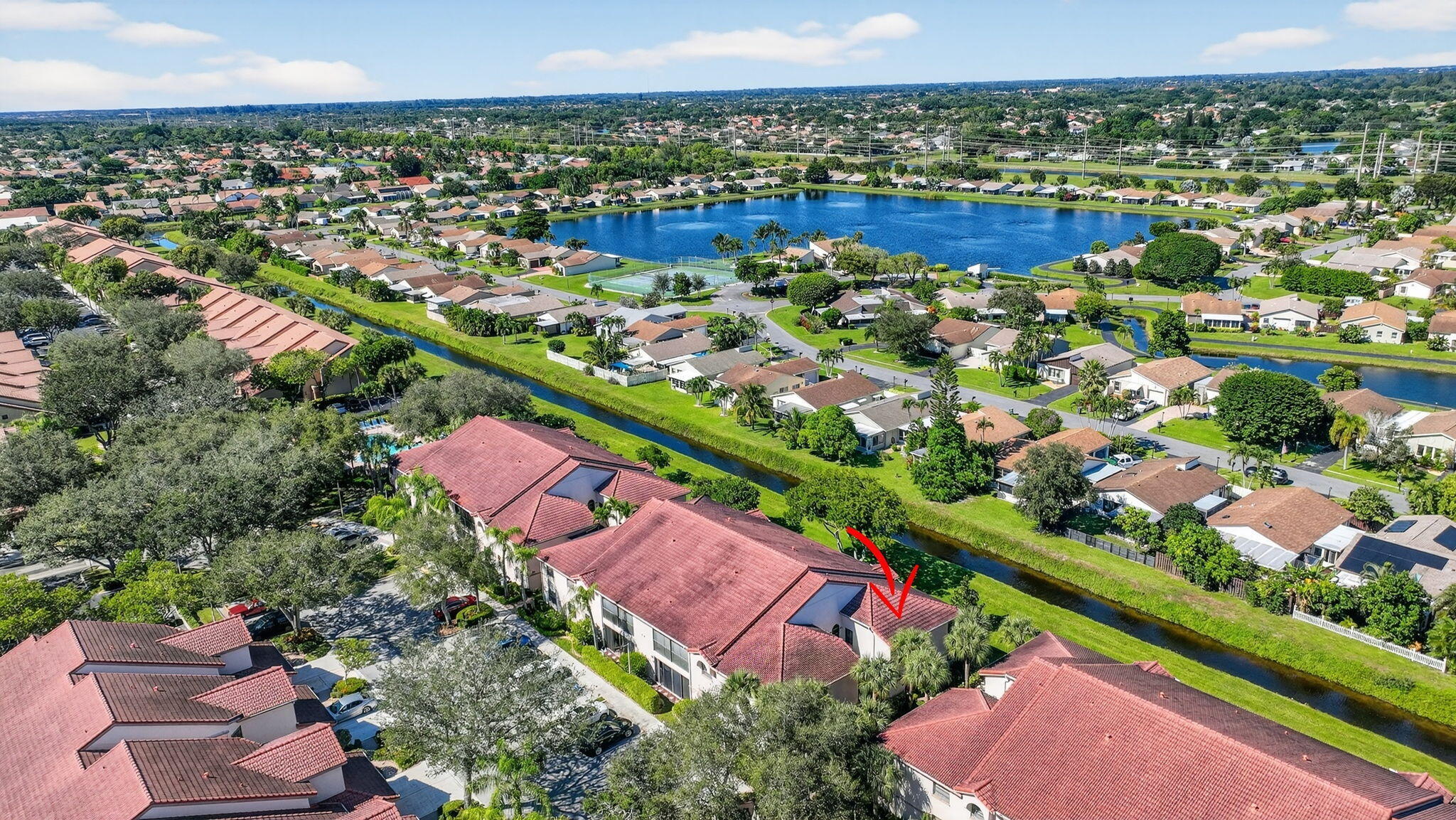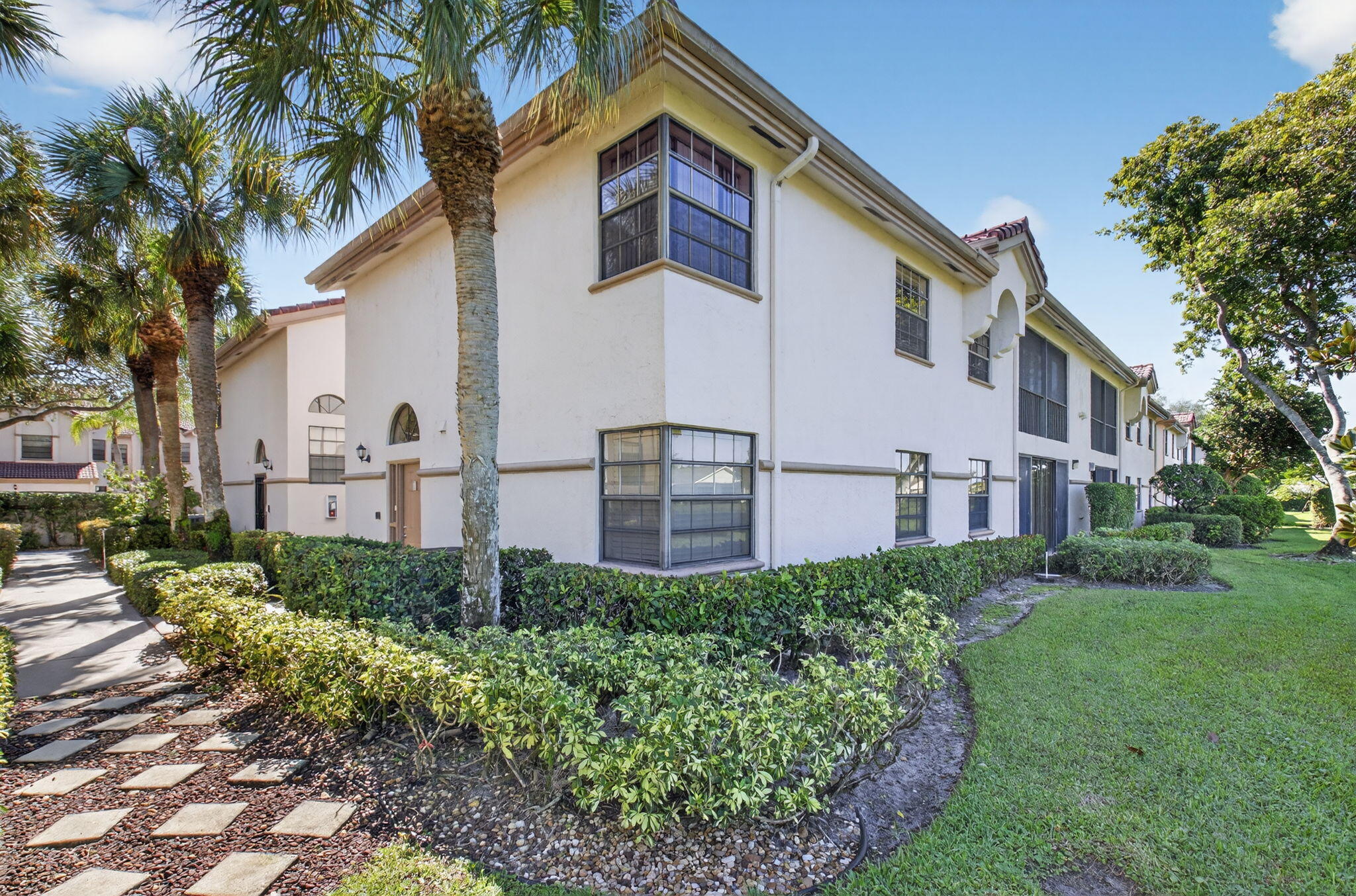 Located in the sought-after Platina community, this spacious 2-bedroom, 2-bath condo with a den offers comfort, convenience, and plenty of potential. The den features double doors and can easily be used as a third bedroom, home office, or guest space. Enjoy the privacy of your own elevator and staircase, providing secure, direct access to your home. The split floor plan offers great separation between bedrooms, ideal for family or guests. Tile flooring runs throughout the home, creating a clean and open feel. The eat-in kitchen includes a nearly new refrigerator (one year old) and a bonus freezer for extra storage. The main bedroom has a large walk-in closet and linen closet. The ensuite bath features dual sinks, a vanity area, and Roman tub.Relax on the glass- and screen-enclosed balcony. It is a perfect spot welcome in the day or relax later with a beverage of your choice. This home is being sold with all contents included, offering a wonderful opportunity to update and design to your own taste. PRICED TO SELL, with its flexible layout, private access, and prime location in one of Boynton Beach's most popular gated communities, this condo offers outstanding value and endless potential. Discerning buyers place PLATINA at the TOP OF THEIR LIST! It is a vibrant gated community known for its resort-style living and beautifully maintained grounds. Direct TV, AT&T high speed internet, water and pest control is included. All you pay for is electricity! The active 20,000 square foot clubhouse is stunning! Cafe open for breakfast and lunch now offering take-out meals, card rooms, fitness center with stationary bicycles in a solarium overlooking the pool area. Relax in one of the satellite pools or at the enormous free-form main pool and spacious sundeck. Tennis, handball and pickleball courts. There is also an art room with a kiln! With shows, bingo, and an array of clubs, you will not be bored! 24-hour guard gated community. Convenient access to I-95 and the Florida Turnpike. Close to shopping and wonderful restaurants. DON'T FORGET TO VISIT THE CLUBHOUSE.