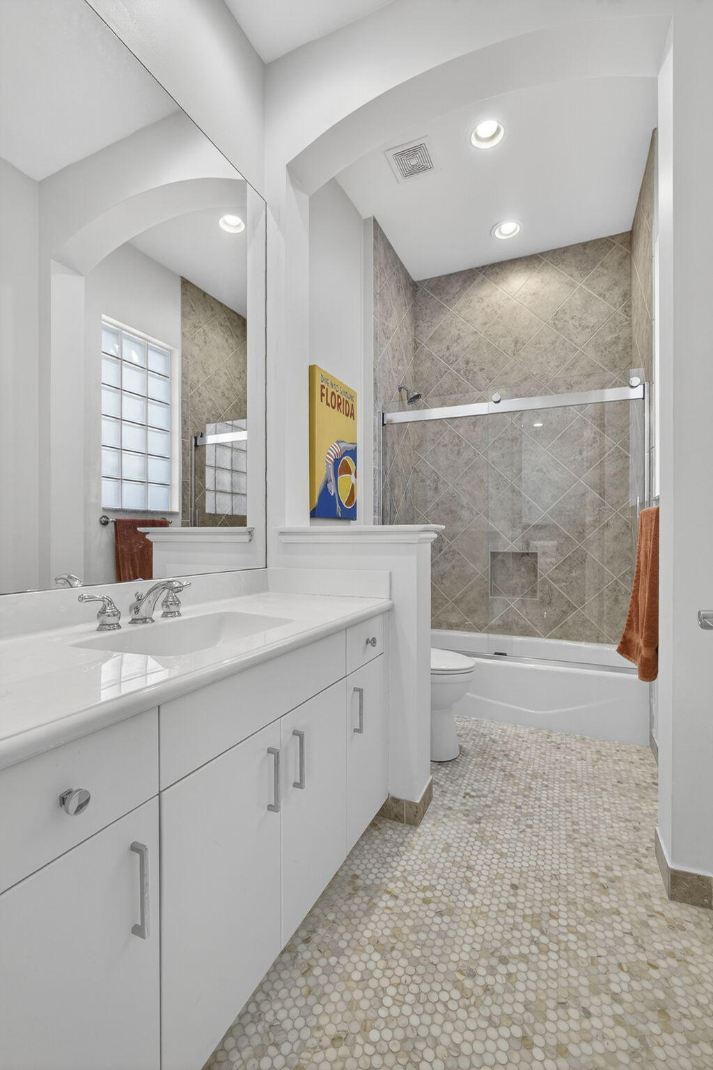 Rarely do you find a home with such a spectacular golf view, impact windows and doors, and a complete renovation. This three-bedroom, three-bath residence showcases a modern, contemporary kitchen and master bath, luxury vinyl flooring throughout, decorator finishes, custom paint colors, LED lighting, and more.The spacious primary suite offers beautiful views and a serene retreat. The master bathroom was impeccably designed with a freestanding tub, stylish cabinetry, new tile, and designer fixtures creating a spa-like atmosphere.The second bedroom is a private en suite featuring a large walk-in closet, providing comfort and privacy for family or guests. A third bedroom includes a Murphy bed, making it ideal for use as an office or den with convenient access to a full bath.An enclosed den/TV room adds flexibility and can be used as a private media or reading space. Enjoy southern exposure for all-day Florida sunshine on the beautifully renovated patio, highlighted by a stunning lap pool with rich blue tones, perfect for relaxing or entertaining. The large two-and-a-half-car garage provides ample storage, and the home's location at the end of a quiet cul-de-sac ensures exceptional privacy and tranquility. This home truly captures the best of Florida living in one of Mirasol's most sought-after settings.