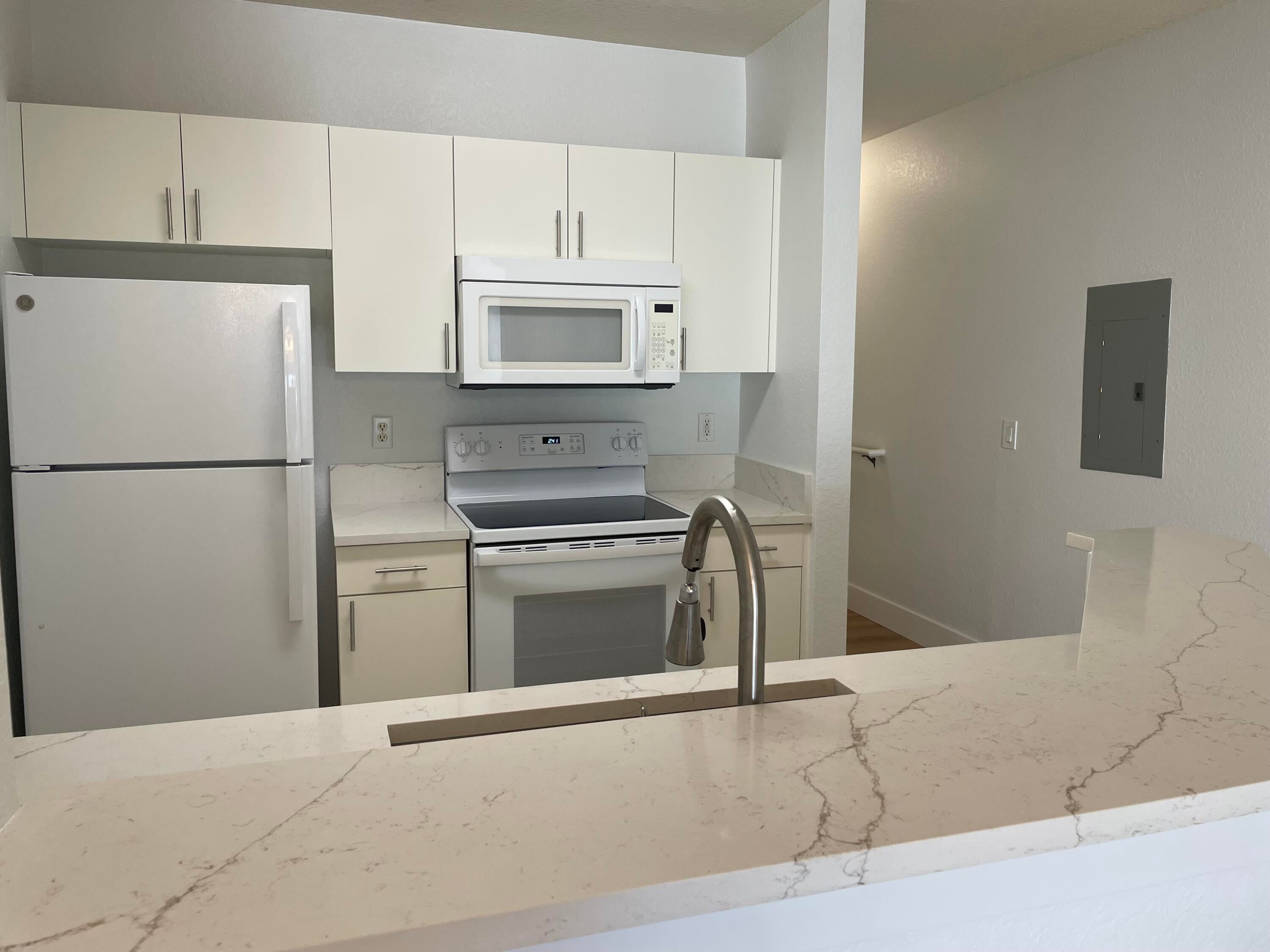 Spacious and updated 2BR/2BA coach home with 1-car garage in the Residences of Belmont. Features a brand-new roof, fresh paint, new luxury vinyl flooring, new quartz kitchen countertop, newer appliances, balcony, abundant natural light, and full-size washer/dryer. Rent includes water, sewer and trash. Enjoy community amenities--pool, hot tub, fitness center, and playground. Prime Boynton Beach location near shopping, dining, major highways, airports, and just minutes to the beach.