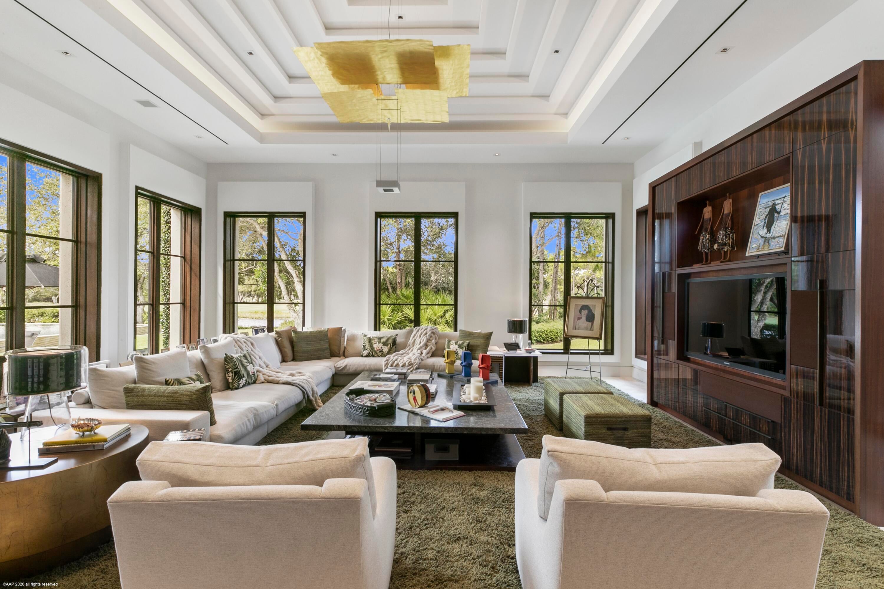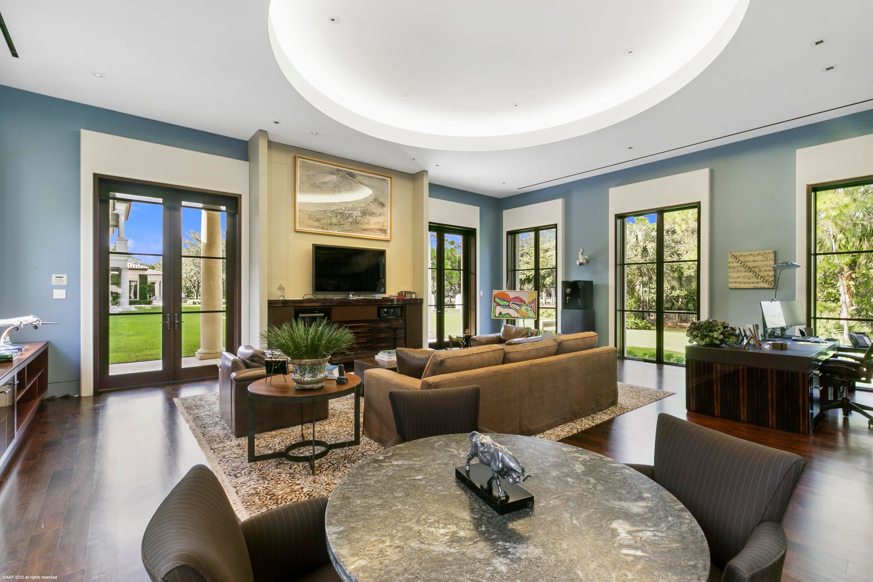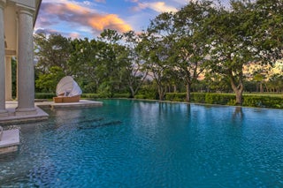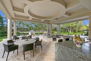 Situated on an oversized double lot in the The Bear's Club, this custom Palladian styled estate residence offers 33,705 total square feet with 7 bedrooms, 9 baths and 3 half baths. The property offers spectacular views of the 11th and 12th fairways of the Nicklaus signature golf course from its expansive outdoor loggias, galleries, manicured lawn, elegant pool and spa and covered private second floor terrace. This residence was originally designed by architect Manuel J. Diaz and was built by Lavelle Construction. The property has been previously featured in Architectural Digest.The main house offers bespoke finishes and extraordinary attention to detail throughout including high ceilings and doors, custom moldings and built-ins, marble floors, beautifully proportioned rooms, a full house generator, hurricane impact doors and windows and the most spectacular master suite with a dressing room, safe room, gallery hall and a sensational bathroom that serves as a spa-like retreat. In addition to the main residence the property features a spacious free standing office conveniently located next to the master wing complete with an en-suite bath, walk-in closet and a large gym surrounded by floor-to-ceiling windows showcasing the beautiful garden and golf course views. There is also a separate two-story guest house with an office, two bedrooms and two baths, and a living room, kitchen, and laundry.