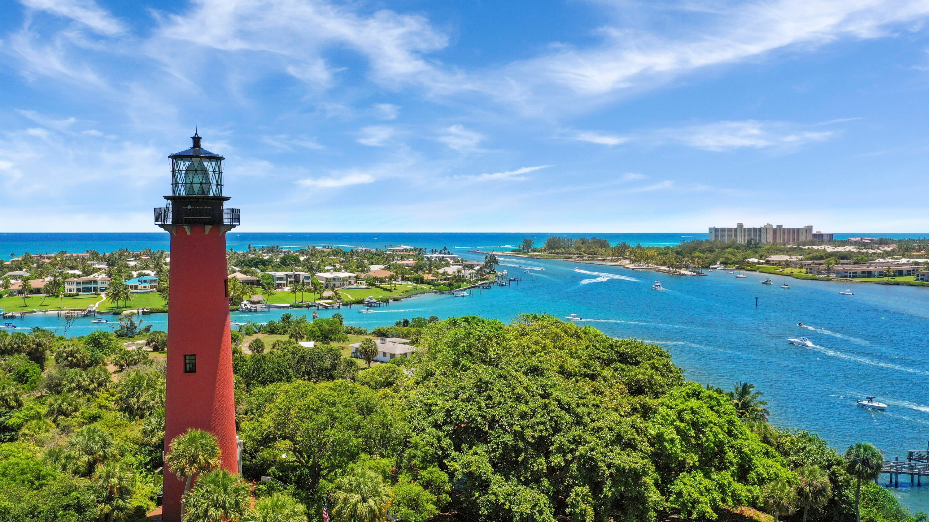 Jupiter is 12 miles north of Palm Beach Shores via I-95 and Rte. 706. Jupiter is one of the few little towns in the region not fronted by an island. Beaches here are part of the mainland, and Route A1A runs for almost 4 miles along the beachfront dunes and beautiful estates.