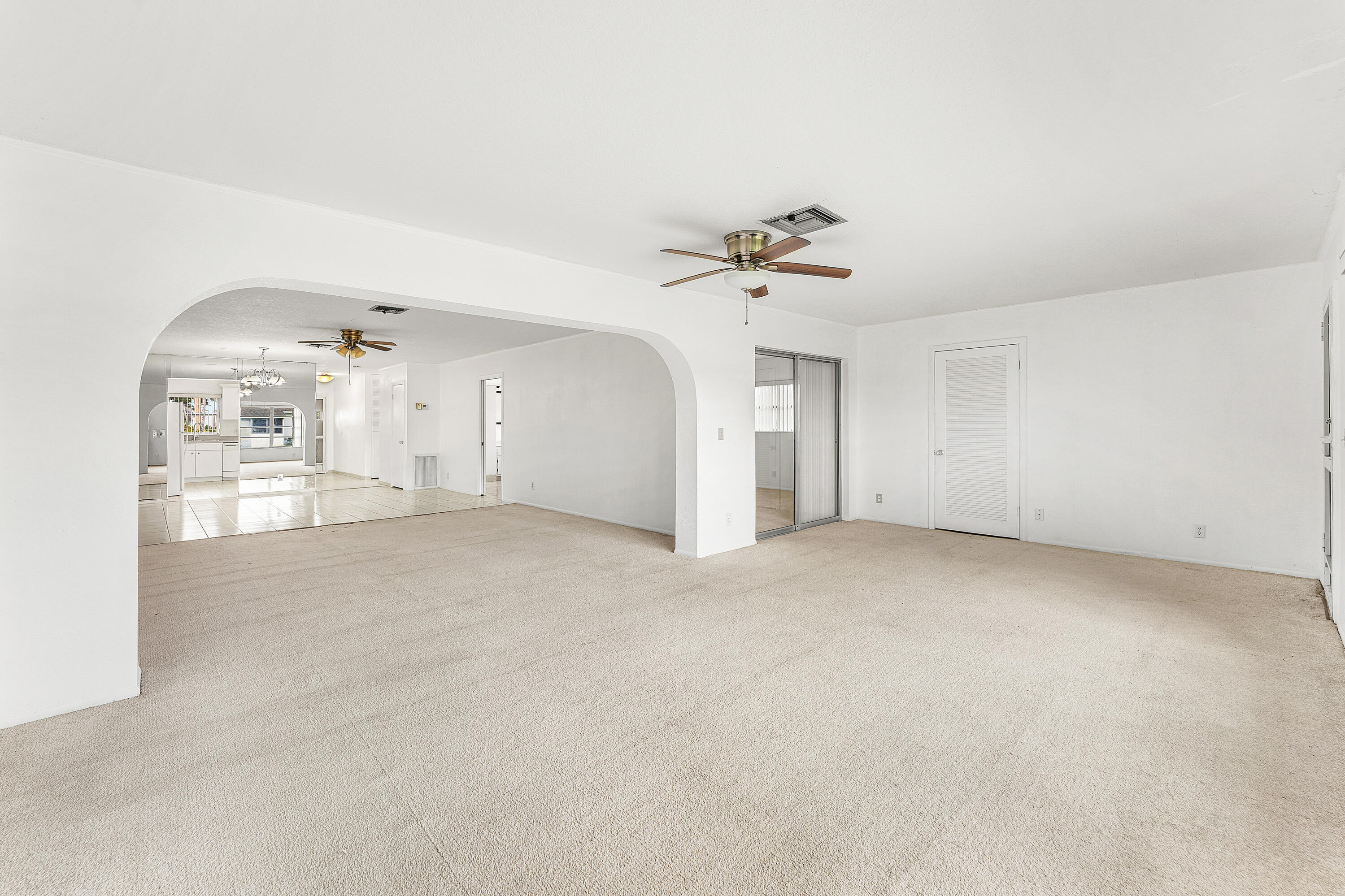 Spacious 2-bed, 2-bath villa featuring a brand-new kitchen with sleek cabinetry and ample counter space, open living areas, and abundant storage throughout. The primary suite offers a large walk-in closet, while the finished enclosed porch adds over 400 sq ft of bright bonus living space ideal for a home office, sunroom, or guest suite. Enjoy a full-size laundry room with washer/dryer, shelving, and rear door to a private outdoor area. Two reserved parking spaces right in front. Pet-friendly, resort-style community with heated pool, clubhouse, sauna, tennis, pickleball, and new dog park. HOA covers roof, exterior insurance, lawn care, cable, and all amenities. Prime location near shopping, dining, golf, PBI Airport, and beaches perfect for full-time or seasonal Florida living!
