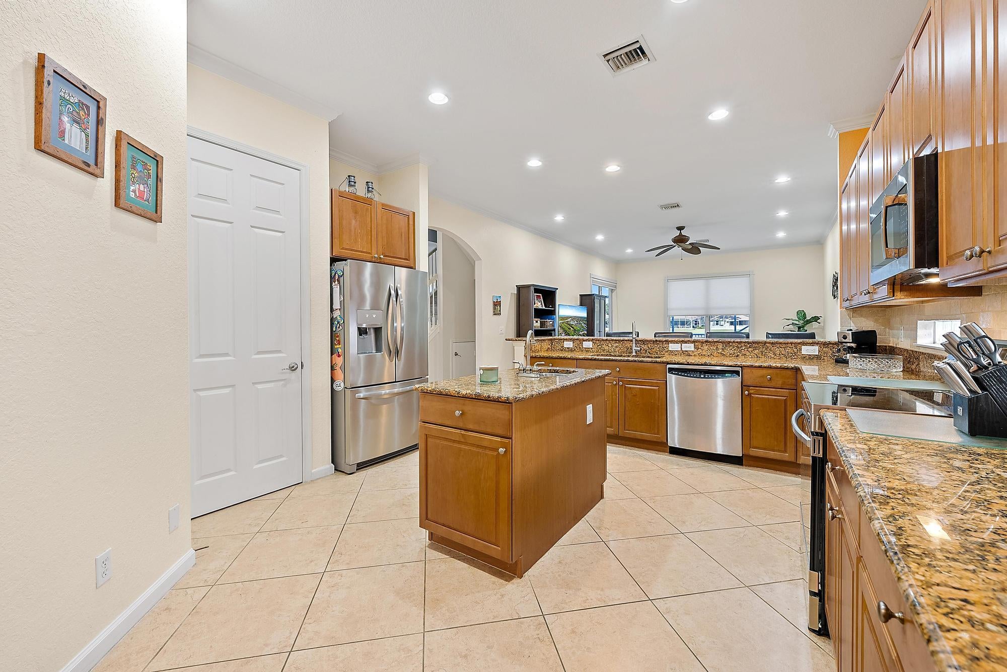 Discover this rare GEM in River Marina Estates, a beautiful 5-bedroom, 4-bath pool home with a 3-car garage. Designed with comfort and style in mind, this spacious residence showcases elegant finishes throughout. As you step through the covered entry, you're greeted by a bright and open layout perfect for both family living and entertaining. A formal living room flows seamlessly into the dining area. The heart of the home boasts a gourmet kitchen, features granite countertops, stainless steel appliances, maple cabinetry, a chef's island with a sink, and a charming breakfast nook. The kitchen opens to a spacious family room with direct access to the covered patio and pool area, creating an ideal space for indoor-outdoor living. A full bath conveniently serves the pool and main floor. The primary suite is a private sanctuary, featuring a balcony that overlooks the tranquil lake, perfect for enjoying breathtaking sunrises or sunsets. Step outside to your own backyard oasis, where a solar-heated and screened pool invites you to relax or entertain in style. The fully fenced yard, bordered by lush hedges, offers exceptional privacy and serenity. One of the largest lots in River Marina! Additional upgrades include convenient accordion shutters on the second floor for quick storm preparation and a 500-gallon buried propane tank, ideal for powering a generator, converting the kitchen range to gas for cooking, or adding an outdoor kitchen. Two new water heaters were recently installed. The spacious 3-car garage offers ample storage and is perfect for housing a golf cart or even a small boat, as many residents do. Beyond your backyard, the gated community offers resort-style amenities, including a clubhouse, fitness center, pool, tot lot, half-court basketball, and a day dock that provides access to the St. Lucie River. This community truly has it all!