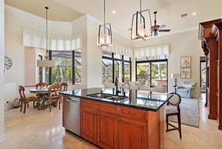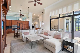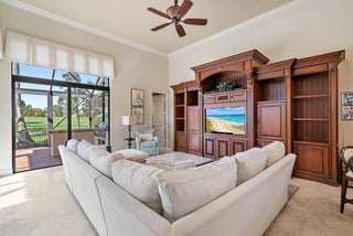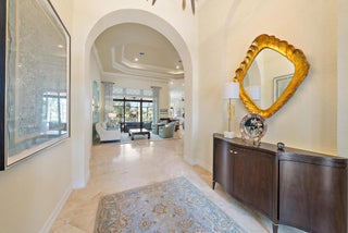 IMMEDIATE PREMIER GOLF MEMBERSHIP AVAILABLE WITH THE PURCHASE OF THIS HOME. Situated on a rare, pie-shaped lot overlooking the 10th hole of the Jack Nicklaus-designed Legend Course, this Crane's Pointe residence offers the perfect blend of privacy, elegance, and spectacular panoramic views. With sweeping vistas of both water and fairway and a desirable NW exposure in the rear, this home was designed to capture the beauty of Ibis's signature landscape and bring it seamlessly into daily living. Built by Delcrest, this 4BR/4.2BA+Den ''Lake Como E'' model is one of the community's most sought-after floor plans, prized for its thoughtful layout, timeless finishes, and livable elegance. A NEW ROOF (2022) and IMPACT GLASS throughout ensure lasting peace of mind, while the home's architectural...detailsarched doorways, coffered ceilings, and extensive moldingscreate a sense of sophistication that complements its resort-like setting. The interior features rich SATURNIA MARBLE FLOORING set on the diagonal, creating a bright and polished backdrop that flows effortlessly throughout the living areas. Neutral tones and custom finishes add warmth and balance, while solid wood doors and crown moldings underscore the home's quality craftsmanship. The floor plan was designed for both comfort and function, offering two powder roomsone ideally located off the large family room for guests, and another adjacent to the office for convenience. The chef's kitchen features upgraded cabinetry, marble and granite countertops, a center island, a butler's pantry, and a useful wet barideal for entertaining. The den, finished with WOOD FLOORS and FRENCH DOORS, provides an elegant work-from-home or media space, while custom built-ins and closet systems throughout the home enhance organization and style. Each of the four bedrooms offers its own en-suite bath, providing privacy and comfort for family and guests alike. The luxurious primary suite is a peaceful retreat, complete with custom closet built-ins, spa-like finishes, and serene views that open directly to the lanai. The large screened lanai expands the living space outdoors, creating the perfect environment for Florida living. Enjoy a sparkling pool surrounded by lush landscaping, a fully equipped outdoor kitchen, and multiple areas for dining or lounging. With its orientation and pie-shaped lot, this home provides both beauty and seclusiona rare combination in one of Ibis's most desirable neighborhoods. Set within the Crane's Pointe enclave, residents enjoy a quiet, picturesque setting just minutes from Ibis's heart. The Club at Ibis offers an unrivaled lifestyle in a Platinum Club of America community, featuring a 90,000-square-foot clubhouse, three Nicklaus-family championship golf courses, five dining venues, a world-class fitness complex and spa, and premier tennis and pickleball facilities. Refined in every detail, move-in perfect, and positioned on one of the most special lots in Ibis, this residence captures the essence of luxury golf course living at its finest.