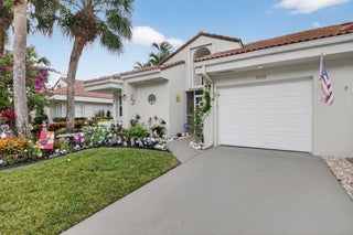 FABULOUS CORNER VILLA WITH GARAGE ON CUL-DE-SAC STREET! INTERIOR LOT WITH WONDERFUL VIEW OF THE LAKE! Kitchen renovated in 2020! Bright & spacious open layout w/split bedroom floor plan. Lots of natural light thru-out. Relax in your air-conditioned Florida Room overlooking the scenic lake view. Separate family room, breakfast area, & laundry room. Vaulted ceilings. Accordion storm shutters. Master bedroom suite offers walk-in closet, 2nd closet, & master bath with dual sinks & walk-in shower. Largest model in this gated 55+ community with clubhouse, pool, tennis, fitness room, & walking paths. Lawn care included in LOW HOA fee. Pets: ESA and service pets welcome. Active West Boca Raton area with lots of shopping, dining, recreation. *QUICK CLOSING OK - EASY HOA APPROVALExterior painting-2025. Renovated kitchen-2020, Floors in Kitchen & Family Room-2020, Garage Door-2020. WH-2020. Patio Door-2019. A/C-2017. Roof- 2016. Windows-2015. Accordion Shutters- 2014.