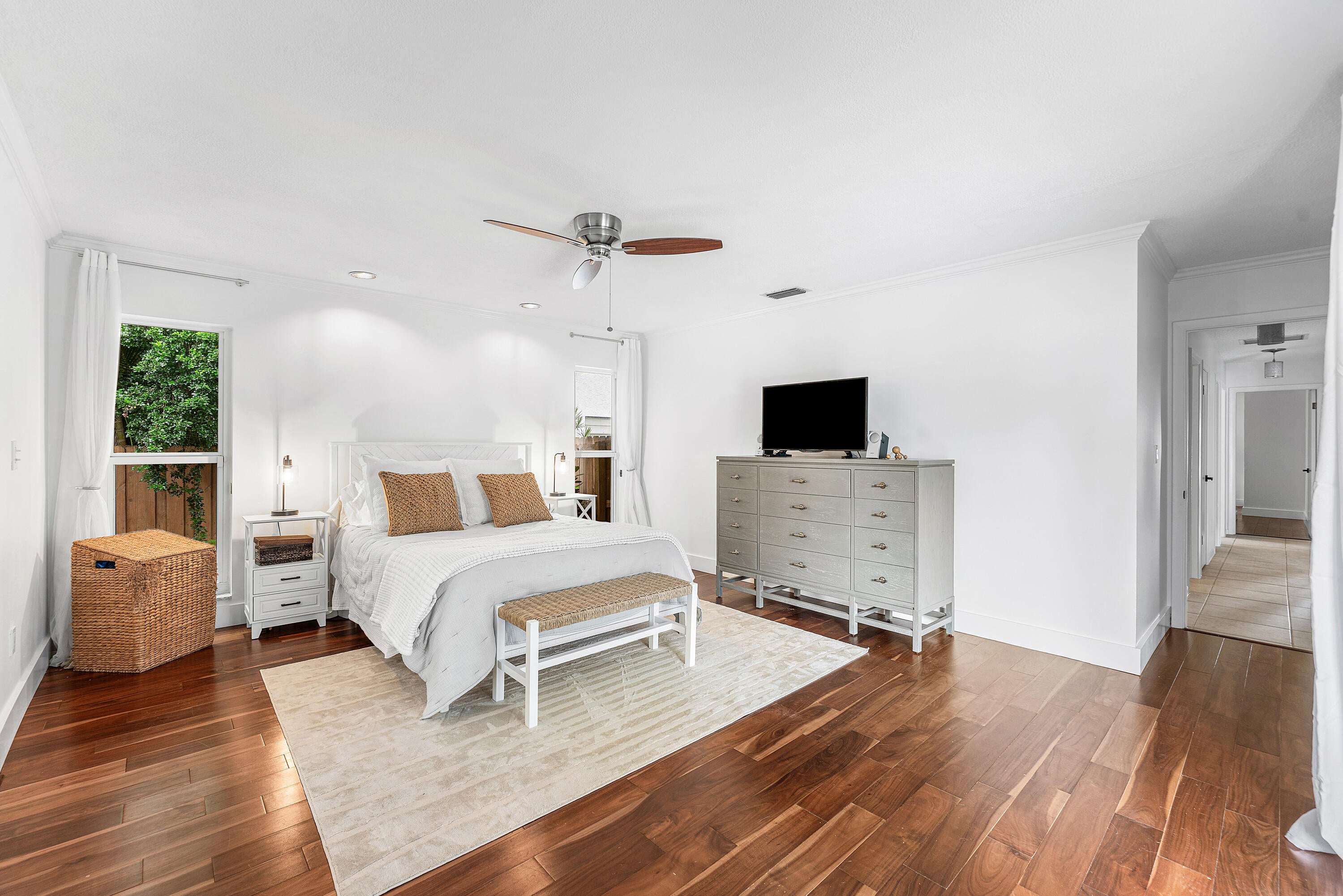 Perfectly situated in Central Boca with two separate gated entrances, this rare floor plan in Paseos is finally available! Upon opening the front door you are flooded with an abundance of natural light, as you look above you notice nearly 20 foot vaulted ceilings! This 4 bedroom, 2 bathroom residence features a renovated kitchen, adjacent to a formal dining area---- perfect for any chef or entertainer! Other notable features include a new roof, complete impact windows, 4 skylights- always making the home bright & light, new gutted, a separate laundry room, primary walk in closet, and so much more. This floor plan has not been on the market in years & won't last long! Paseos is conveniently located in between St. Andrews & Powerline. Tree lined streets, walking paths, tennis/pickleballcourts, a park, and amazing sense of community truly make this neighborhood special. Not to mention the A+ rated schools! Don't wait to schedule your showing!