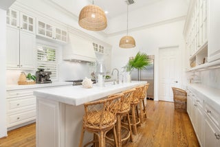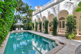 Prime location just two homes from the Intracoastal Waterway this 4-bedroom, 4.5-bath custom Plantation-style courtyard residence was built in 2006 with timeless architecture and refined finishes throughout. Beyond the private gated entry, arched French doors and expansive windows fill the interiors with natural light and frame views of the serene courtyard. A saltwater pool surrounded by a covered loggia creates an inviting setting for effortless indoor-outdoor living and entertaining. Offering more than 5,500 total square feet, this residence includes multiple balconies and a spacious primary suite with a large veranda showcasing views of the Intracoastal. Each bedroom includes an ensuite bath. Additional highlights include a full-house generator, two-car garage with generousstorage, and ceiling height suitable for a vehicle lift to accommodate up to four cars.