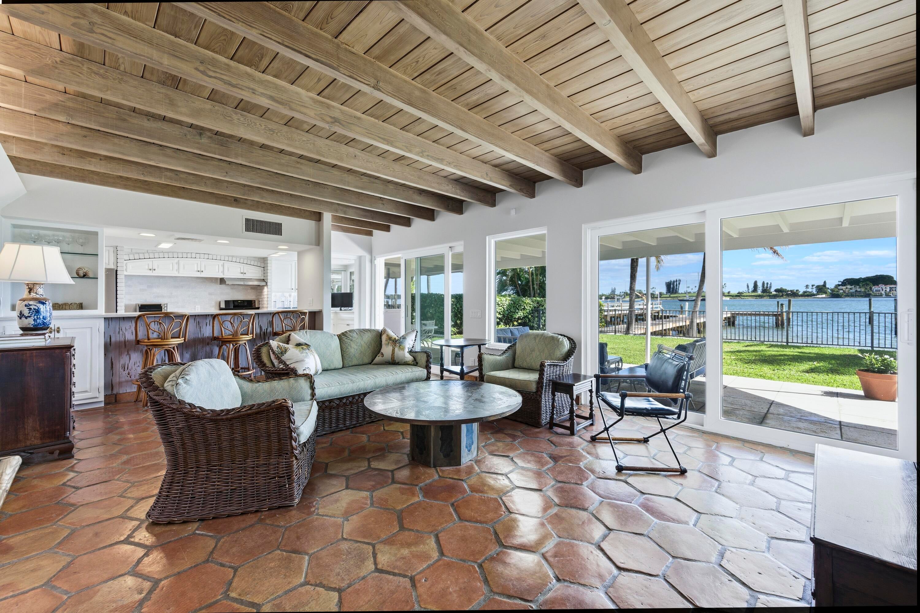 Direct Intracoastal. Freshly renovated 5 bedroom/4 bath pool home with guest house, two car garage, dock, impact windows, and a new roof (2025) . Experience amazing Intracoastal and Palm Beach views from all major rooms in this fabulous single story home with vaulted ceilings in the living room, and an eat-In kitchen and family room with Intracoastal views ... Watch the yachts floating by on the way to the Palm Beach Inlet just minutes away. With a private beach, all situated on a 17,498 sq. ft. Lot. It's just perfect and Truly a Rare Find! Move in and Enjoy!