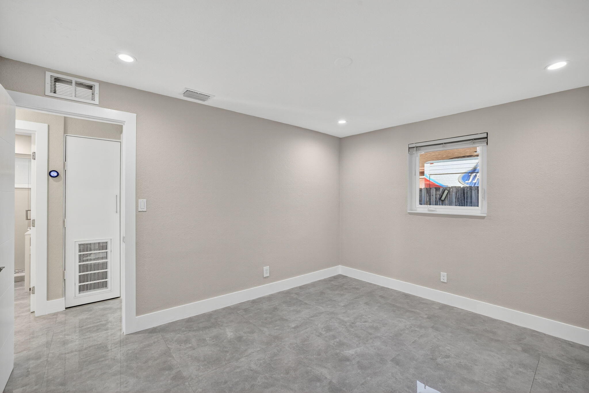 Beautifully remodeled 3 bedroom 2 bathroom + den single family home in the heart of Oakland Park! This home has it all, ready for you to move in to make yours. Features 32x32 European porcelain tile throughout, brand new contemporary kitchen with white cabinets, granite countertops, & stainless steel appliances, tankless water heater, solar panels, impact windows & doors, inside laundry, and large covered patio. The den/office has its own separate entrance for your convenience. Backyard is fully fenced.