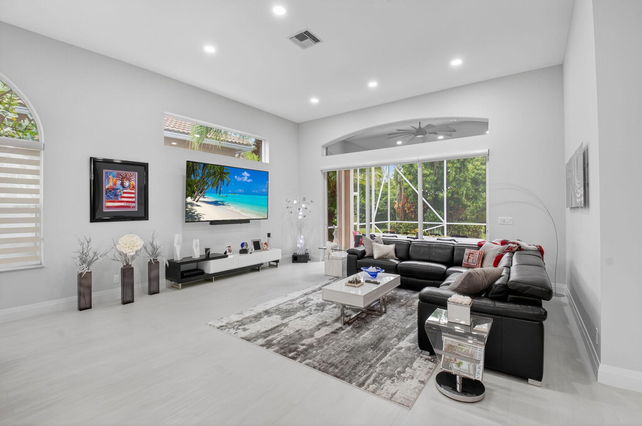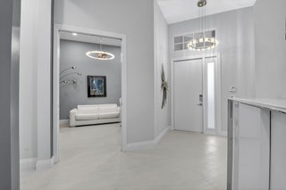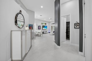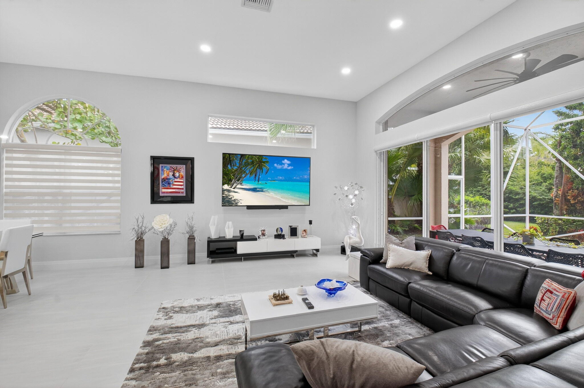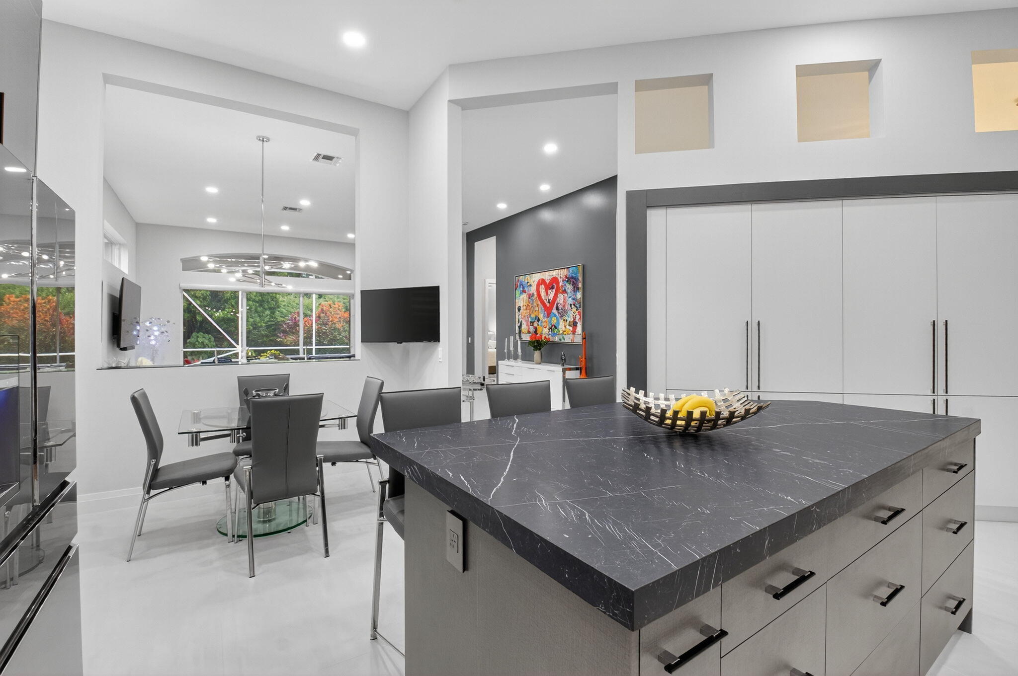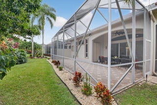 Step into luxury with this beautifully updated home featuring designer details and exceptional craftsmanship at every turn. The open-concept layout boasts 12' ceilings and porcelain 24x48-inch tile flooring throughout, creating an elegant and spacious feel. The gourmet kitchen is a chef's dream with quartz countertops, a striking porcelain island, GE Cafe appliances with Bluetooth capability and a granite composite sink with a Kohler touch free faucet.. You will find amazing storage space in the kitchen with pull out shelves in the pantries.Relax in the spa-inspired primary suite offering a separate raised soaking tub and walk in shower with raised floor, and enjoy the convenience of a large custom-fitted bedroom closet providing abundant storage.The second and third bedrooms have been tastefully decorated and the second bedroom is an ensuite providing privacy for those guests or family members staying overnight. The custom laundry room, generous built-ins, and thoughtful storage solutions add everyday functionality to this luxurious home. You will also appreciate the newer solid core wood doors which have been installed throughout the home. Enjoy your morning coffee or your favorite beverage in the privacy of your screened lanai with no rear neighbors . Aberdeen CC provides great value and amenities at a fraction of the costs of other high price country clubs. If you are looking the Country Club lifestyle and a home that provides all the bells and whistles, make sure you see this home before making your buying decision. Every inch of this residence has been thoughtfully curated with high-end finishes and mo