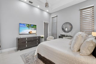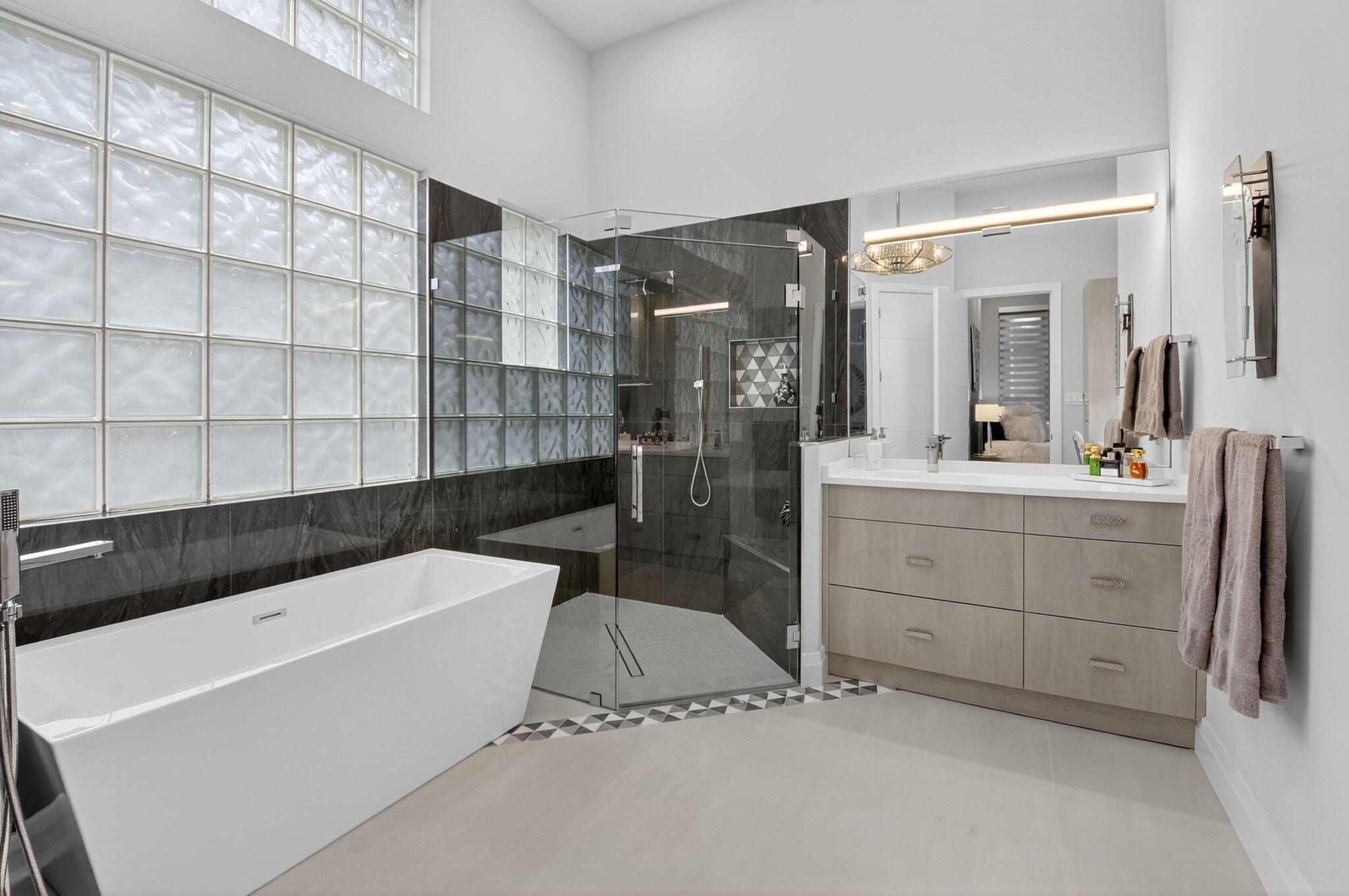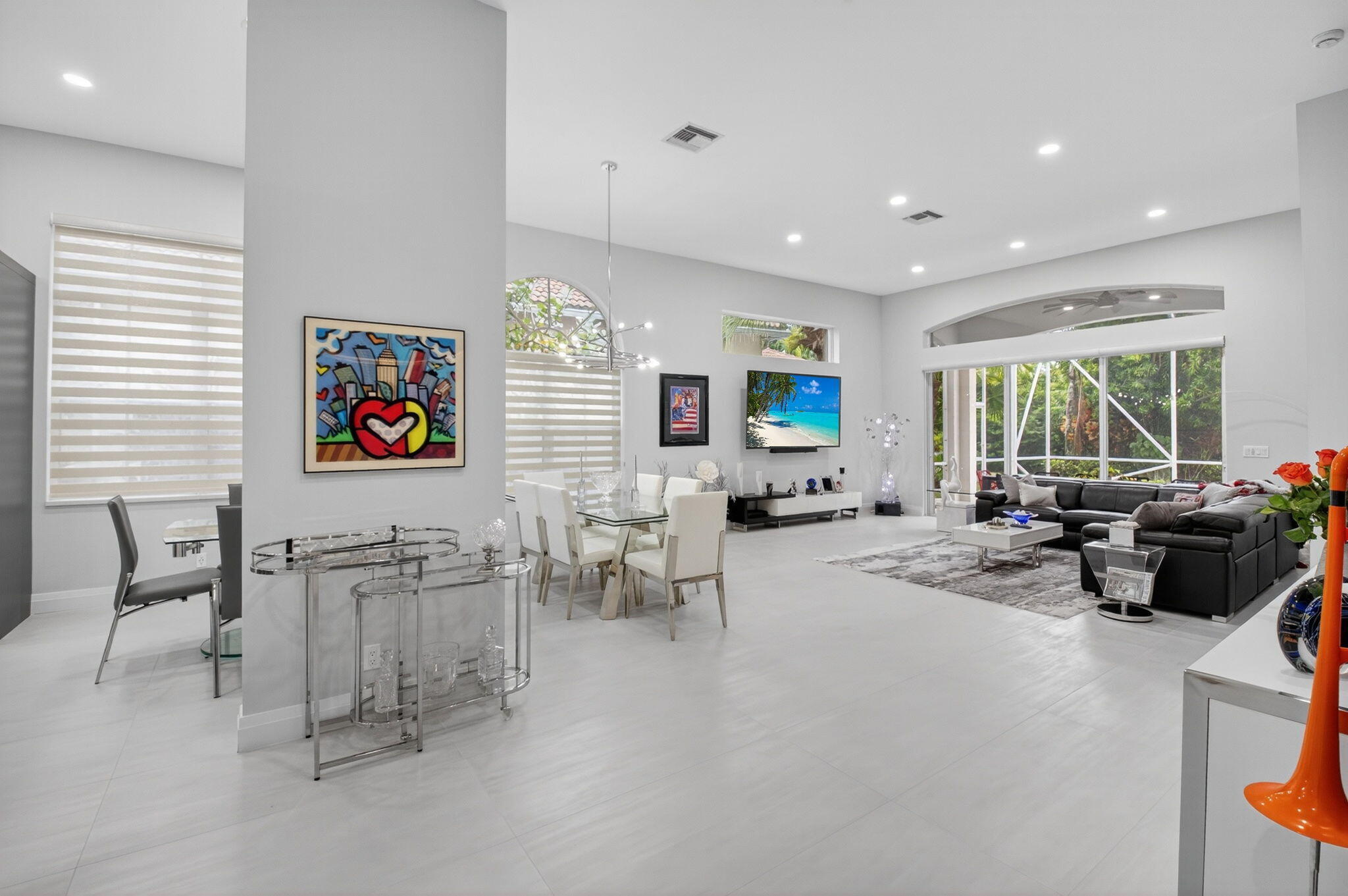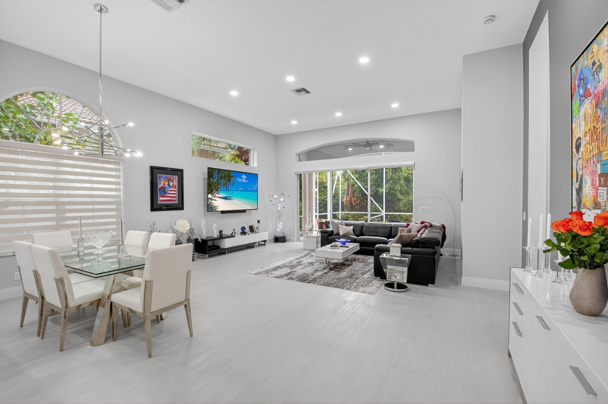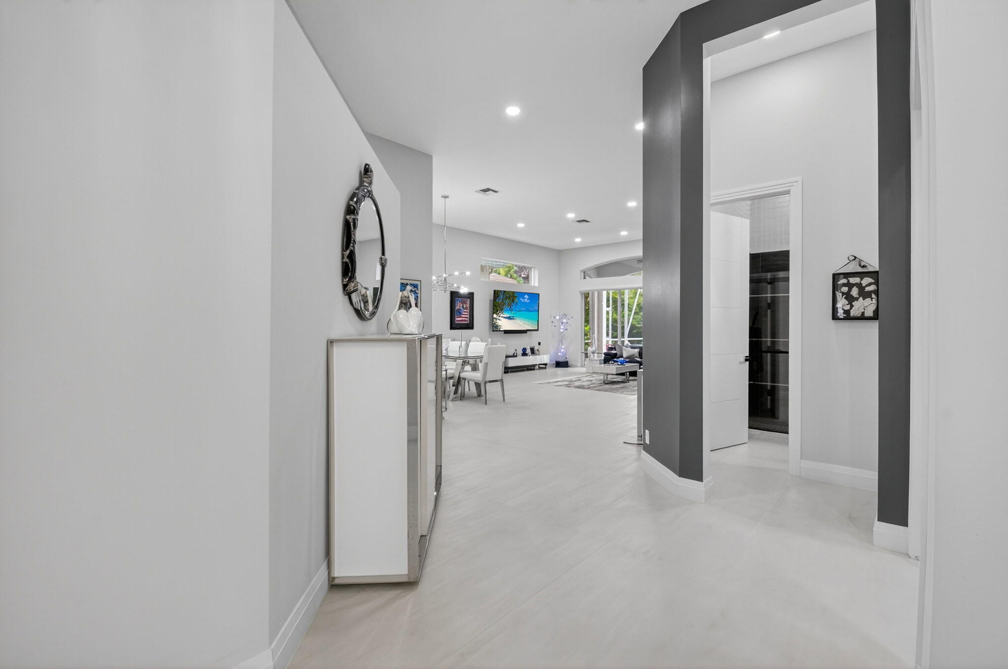 Step into luxury with this beautifully updated home featuring designer details and exceptional craftsmanship at every turn. The open-concept layout boasts 12' ceilings and porcelain 24x48-inch tile flooring throughout, creating an elegant and spacious feel. The gourmet kitchen is a chef's dream with quartz countertops, a striking porcelain island, GE Cafe appliances with Bluetooth capability and a granite composite sink with a Kohler touch free faucet.. You will find amazing storage space in the kitchen with pull out shelves in the pantries.Relax in the spa-inspired primary suite offering a separate raised soaking tub and walk in shower with raised floor, and enjoy the convenience of a large custom-fitted bedroom closet providing abundant storage.The second and third bedrooms have been tastefully decorated and the second bedroom is an ensuite providing privacy for those guests or family members staying overnight. The custom laundry room, generous built-ins, and thoughtful storage solutions add everyday functionality to this luxurious home. You will also appreciate the newer solid core wood doors which have been installed throughout the home. Enjoy your morning coffee or your favorite beverage in the privacy of your screened lanai with no rear neighbors . Aberdeen CC provides great value and amenities at a fraction of the costs of other high price country clubs. If you are looking the Country Club lifestyle and a home that provides all the bells and whistles, make sure you see this home before making your buying decision. Every inch of this residence has been thoughtfully curated with high-end finishes and mo