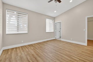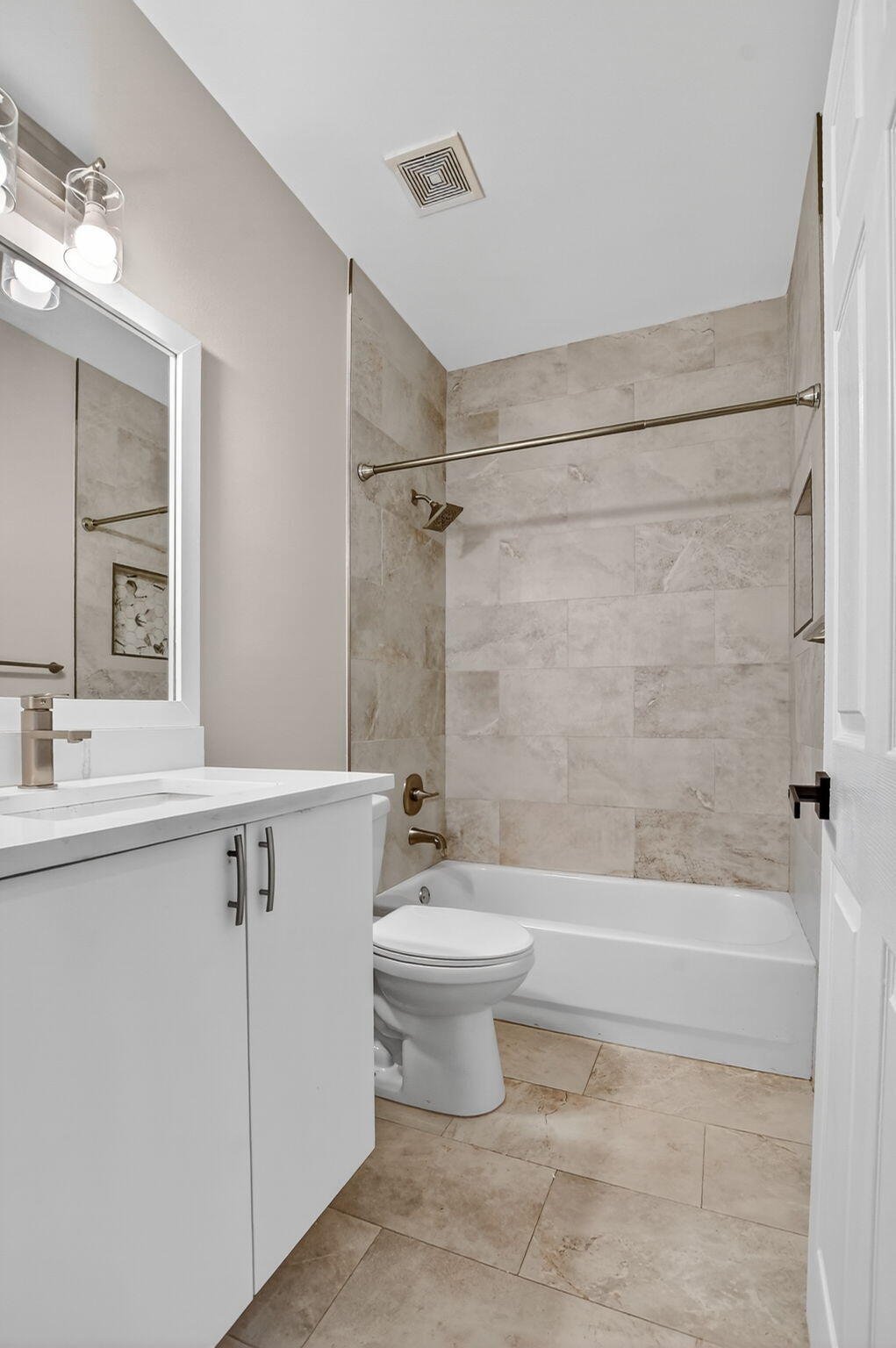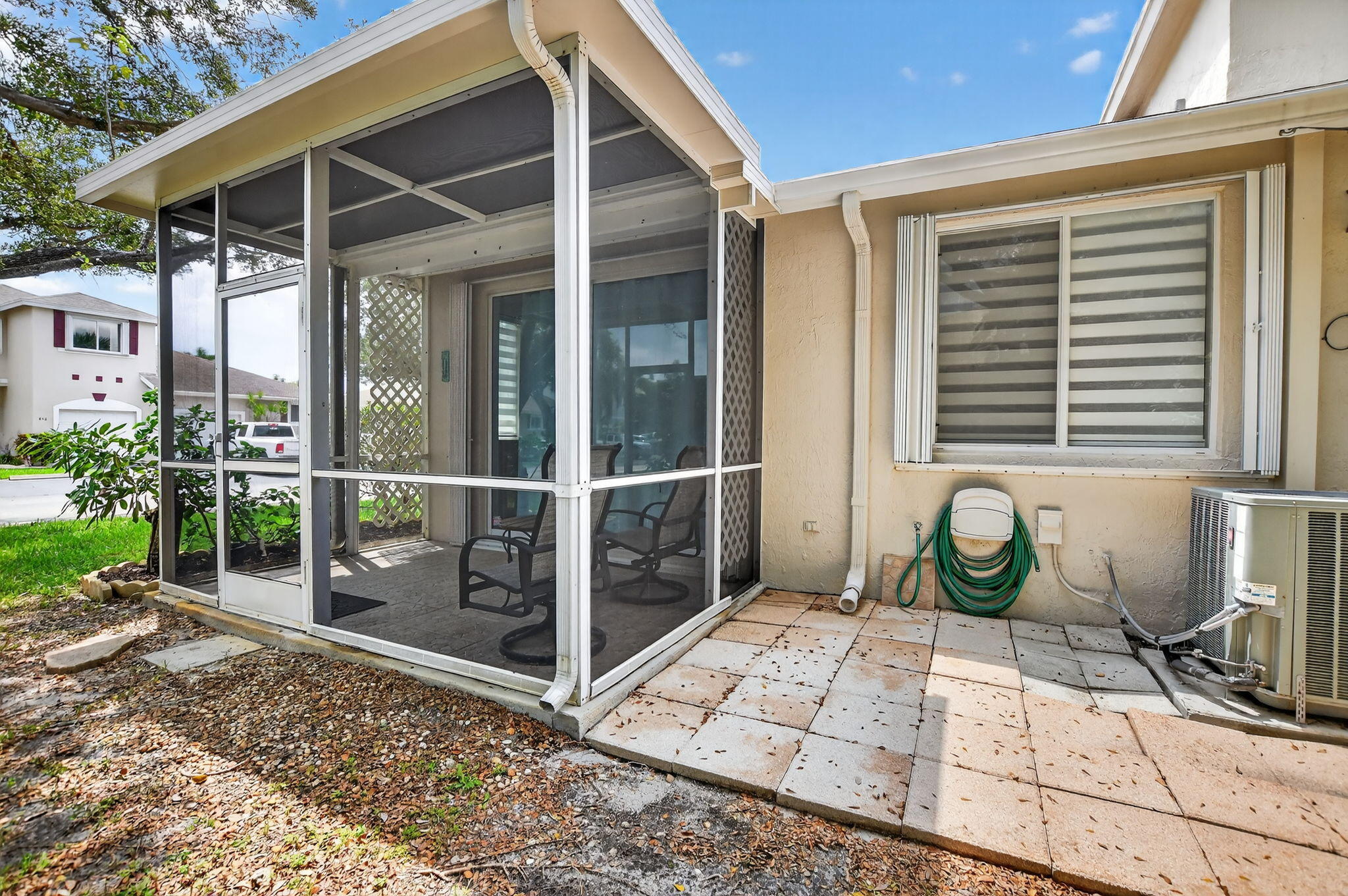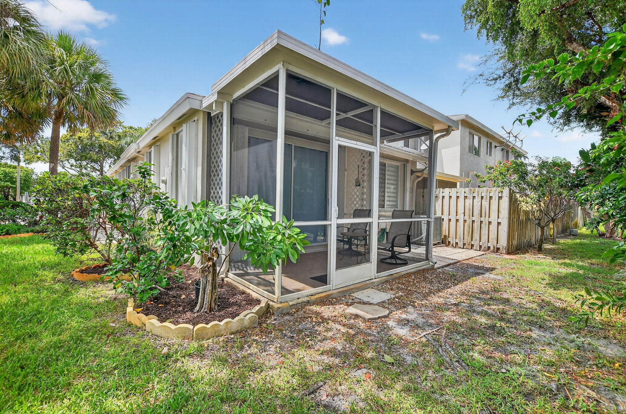 WOW!! Updated 2-Bed/2-Bath Corner Villa w/ 1-Car Garage! Move-in ready corner unit featuring vaulted ceilings and wood-look tile throughout. Updated kitchen with quartz waterfall counters, subway tile backsplash, stainless steel appliances, white cabinetry, and recessed lighting. Spacious open living & dining areas. Large primary suite with vaulted ceiling, walk-in closet, and remodeled bath with frameless shower & modern vanity. Generously sized 2nd bedroom with French door entry and adjacent updated full bath. Laundry/utility room inside. Screened patio, large side yard & backyard. Accordion shutters, newer roof, new blinds, fixtures, and fans throughout. Community offers pool and ample guest parking.