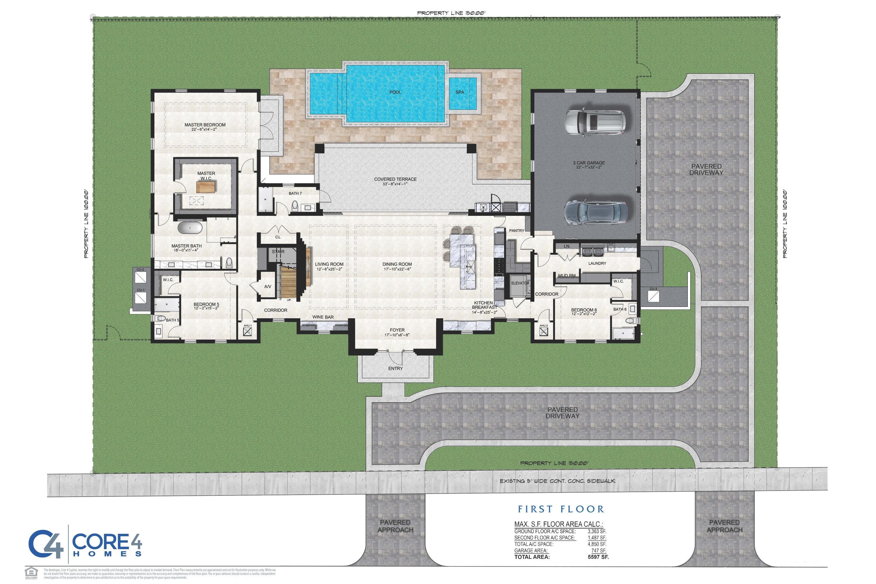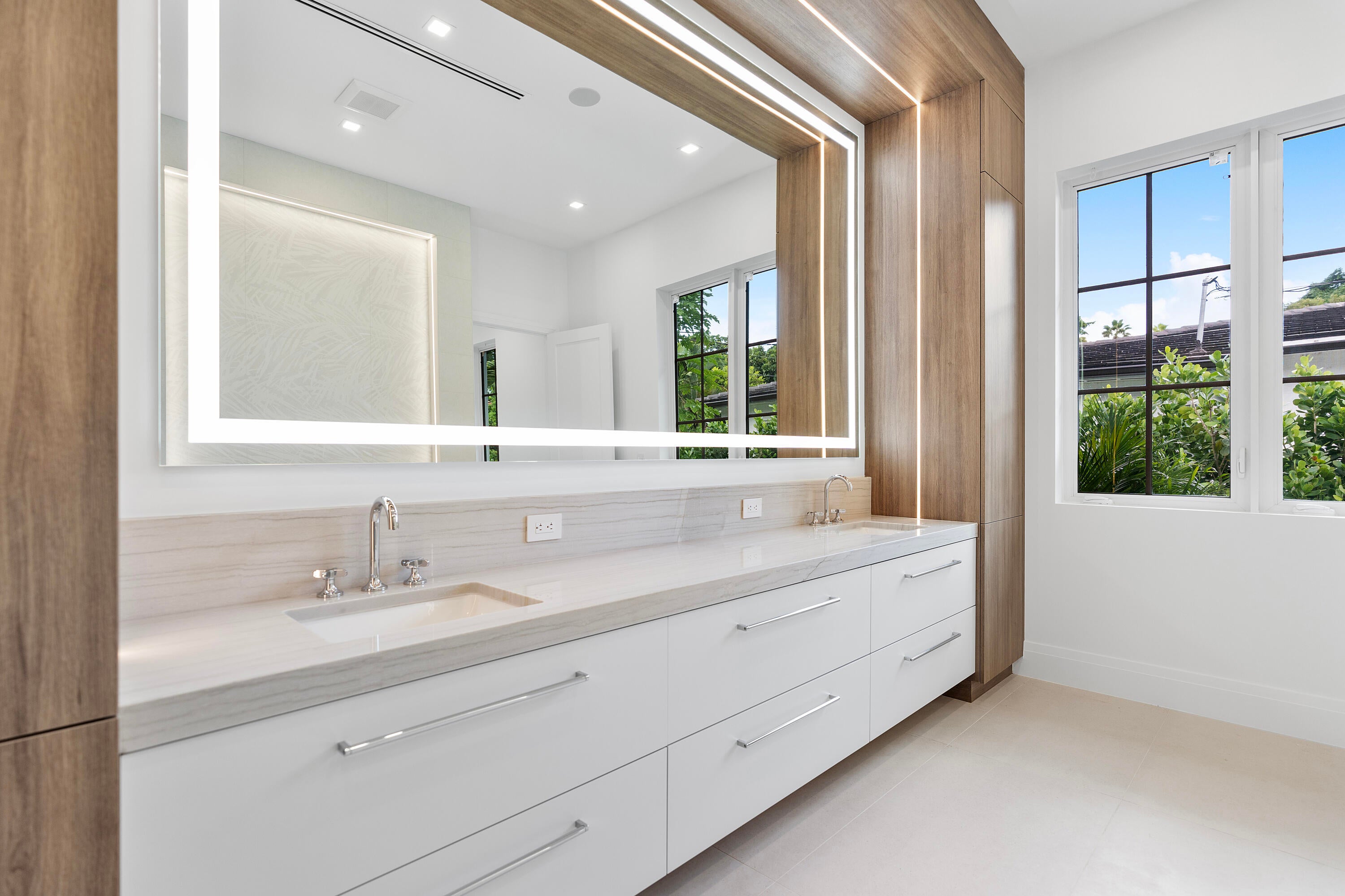 This meticulously designed home, presented by Developer Core 4 Homes offers 4,850 sq ft of luxurious living space, featuring 6 bedrooms and 7 bathrooms. Upon entering, you are welcomed by an open-concept living, dining, and kitchen area, bathed in natural light from the 32-ft long sliding glass doors, leading to a covered terrace and summer kitchen. The kitchen boasts custom cabinetry and premium Miele appliances. The master suite, uniquely located on the main floor, includes a spacious walk-in closet, double vanity, smart toilet, and freestanding tub. The first floor features two versatile rooms, ideal for an office/guest suite, and a nanny/mother-in-law suite, both with en-suite bathroom. Upstairs, find a loft living room and 3 bedrooms, each with an en-suite bathroom and walk-in closetAdditional features of this exquisite home include a complete smart home, an elevator, three-car garage, tankless water heaters, gas appliances, brand-name plumbing fixtures, luxury quartz countertops, linear diffusers, hurricane impact windows, and a heated saltwater pool with a spa. Built on a generous 15,000 sq. ft. lot, this luxury home offers unparalleled elegance and comfort in the heart of Coral Gables. Located just steps from Merrie Christmas Park and minutes from Merrick Park, where you can enjoy fine dining and luxury retail, this property combines a prime location with sophisticated living.