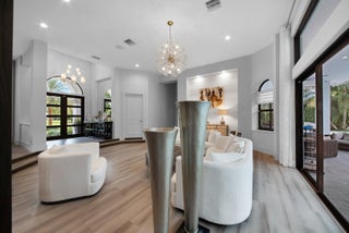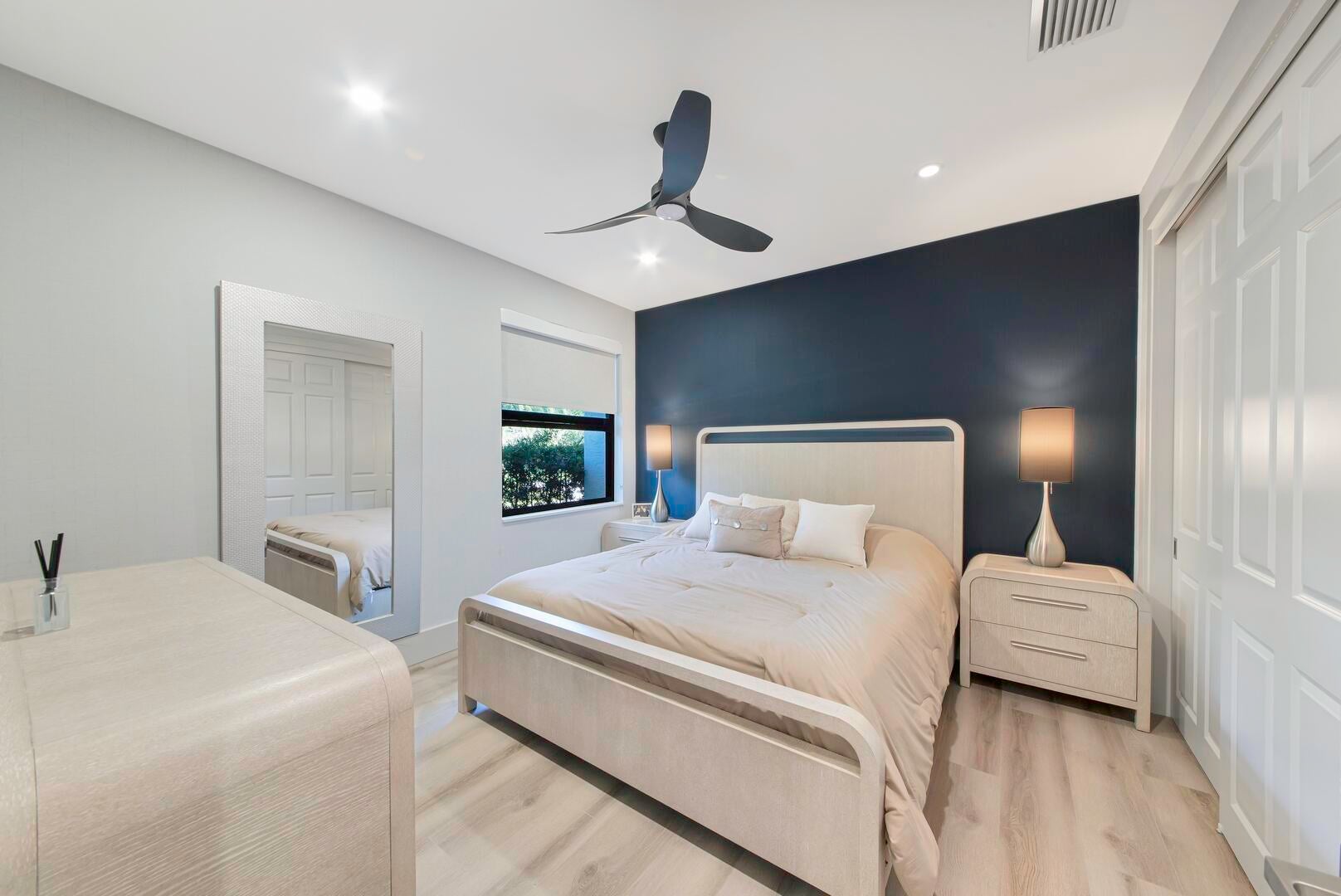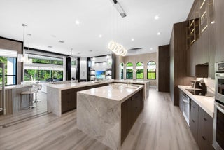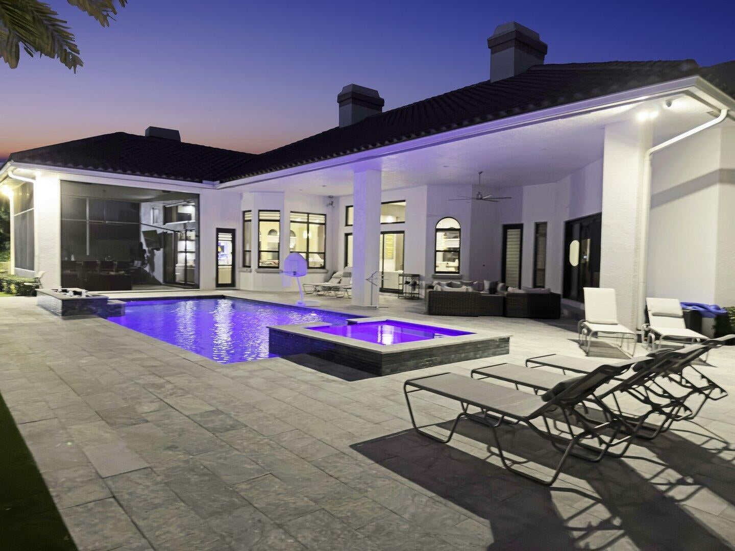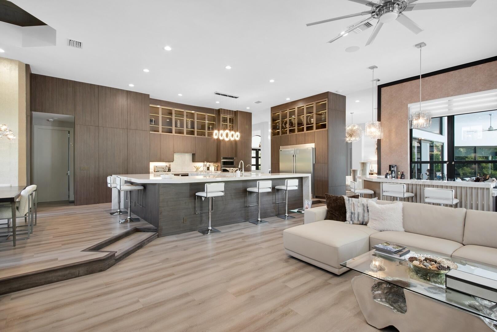 Experience luxury living in this extraordinary contemporary estate, perfectly set on a full acre of waterfront. This sophisticated ranch showcases a spacious split floor plan, den, soaring ceilings, and designer finishes throughout. The brand-new European-style kitchen boasts sleek cabinets, quartz countertops, a center island, stainless-steel appliances, snack bar, and breakfast nook, flowing seamlessly into the family room with a wet bar. The spacious primary suite impresses with oversized sliders to the patio, dual custom closets, double sinks, a soaking tub, and a walk-in shower. Enjoy new flooring, full impact windows, a new roof, updated A/C units, and a well-equipped laundry room.Enjoy new flooring, full impact windows, a new roof, and updated A/C units. The resort-style backyard is built for entertaining with a heated saltwater pool and spa, summer kitchen, putting greens, and a sports court for basketball, pickleball and tennis. A covered, screen-enclosed patio offers the perfect space to relax outdoors Additional highlights include a 38KW generator, Sonos sound system, security cameras, water filtration system, custom closets, LED landscaping, and lush artificial turf delivering the ultimate in modern luxury and comfort. This exclusive gated enclave offers the ultimate in private South Florida livingjust minutes from vibrant Downtown Delray, pristine beaches, and top-rated restaurants. Enjoy the convenience of A+ rated schools and an unmatched lifestyle in a truly coveted location.
