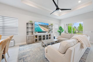 Save money instantly vs. new construction. This one-year-old coveted Mystique model is better than new, fully upgraded, move-in ready, and located on a finished street with no future homes built on Triumph Lane. While nearby sections of Avenir are still building, this home enjoys a quiet setting with mature landscaping and a private lanai lined by a privacy hedge. Skip builder delays, punch lists, and costly upgrades. Included are $25,000+ of custom closets, premium window treatments, designer lighting, and a fully outfitted pantry. The builder recently completed full interior and exterior paint touch-ups and re-sodded the backyard. Inside, enjoy an open layout with 3 bedrooms plus a den, an expanded great room with upgraded dual sliders, a gourmet quartz kitchen with gas cooking, impact glass, tile floors, and a smart split-bedroom plan. Outside, Avondale at Avenir offers resort-style amenities including a clubhouse, fitness center, pickleball, tennis, pools, and nature trails, as well as the Town Center coming very soon which features a Publix, spa, and luxury dining. Move right in and avoid the noise, expense, and hassle of building new.