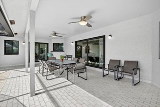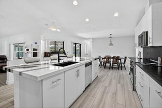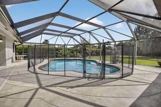 Welcome to this exceptionally charming and thoughtfully designed residence, nestled on a tranquil, tree-lined street in one of the area's most sought-after neighborhoods.This single-family home greets you with a beautifully landscaped front yard and an inviting, sun-drenched living and dining area--ideal for both relaxed daily living and stylish entertaining. The brand-new, well-appointed kitchen showcases premium cabinetry, sleek modern appliances, and generous counter space crafted from highly durable, non-porous porcelain and granite.This home offers full hurricane protection, including a reinforced screened enclosure. Inside, enjoy spacious bedrooms plus a versatile large den easily converted to a fourth bedroom. The primary suite features an en-suite bath adirect access to a private, resort-style escape with a screened-in pool, outdoor shower, and lush landscaping with fruit trees. A covered patio completes the serene settingperfect for relaxing or entertaining. Ideally located near top-rated schools, shopping, dining, and major roadways.