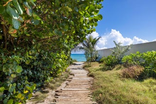 Beautiful John Volk Regency home with ocean views and beach access. Just three streets North of Mar-a-Lago in the Estate Section, this five bedroom, six full and two half bathroom home is ideal for entertaining. A 40 x 20 foot pool and two upstairs balconies with direct ocean views. Just steps away from a private beach access across the road from the house's front door. Also available in-season at $63k per month.