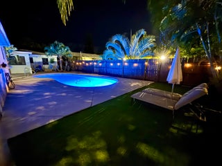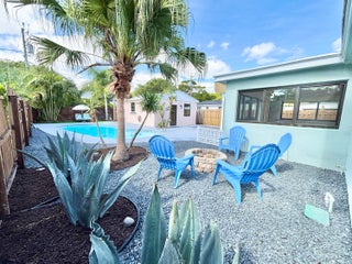 Welcome to 1121 N Ocean Breeze in the prestigious neighborhood of Parrot Cove- A truly one-of-a-kind property. Beautiful midcentury classic home with a guest suite and in-ground pool. The main house is a 2 bed /1 bath along with an equally stunning 1 Bed/1 Bath suite. Both are CBS construction with impact windows & doors. Professionally designed to preserve its vintage Florida charm with a modernized twist. Masterful kitchen complete w/ a porcelain farm-sink, quartz countertops, & SS appliances. Eat-in kitchen large enough to seat 3-4! Luxury vinyl flooring & 5inch baseboards throughout. Built-in sound system in & outside! Sun-soaked pool area suitable for entertainers & sun bathers. Lots of deck space and an outdoor shower w/ hot & cold! Large front lawn/courtyard area is rarely found.Pavers walkway invites you to the covered patio overlooking the lush landscaping & privacy hedges. Updated irrigation system w/ digital timer. Convenient street parking in the front & bonus alleyway access and parking in the back! Loads of potential for guests, family, home office, & more! Just minutes from the beach, shopping, golf, major roads & more. Listing subject errors, omissions, & change without notice. Room Measurements approx. See it today!