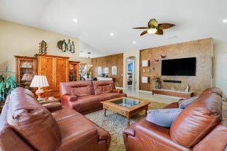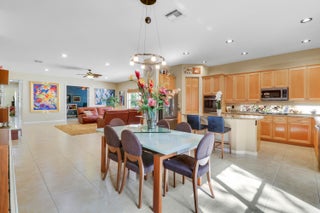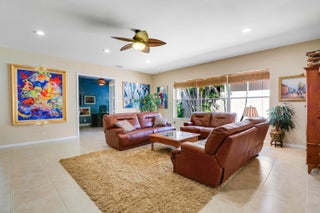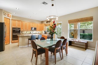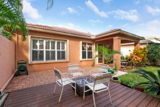 Welcome to this 4-bedroom, 2.5-bath home located in the desirable gated resort-style community of Mirabella. This extended El Prado model offers a spacious open layout with volume ceilings and a split floor plan with tile throughout; 4th bedroom currently set up as den. Perfect for both everyday living and entertaining the home features a large gathering room, open dining and kitchen with updated appliances and access to a private backyard oasis, complete with both covered and open patio areas and a peaceful green space. Additional upgrades include remodeled bathrooms with frameless glass showers, accordion shutters for storm protection, a tankless water heater, modern coach lights, and an extended-width driveway. Mirabella offers resort-style amenities including a gorgeous pool andclubhouse, fitness center, children's clubhouse, and Har-Tru tennis courts. HOA dues include premium cable and internet. Conveniently located near top-rated schools, shopping, and dining and just 20 minutes to PBI airport and pristine beaches. This home combines comfort, style, and peace of mind in one of the area's most sought-after communities.