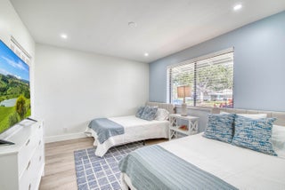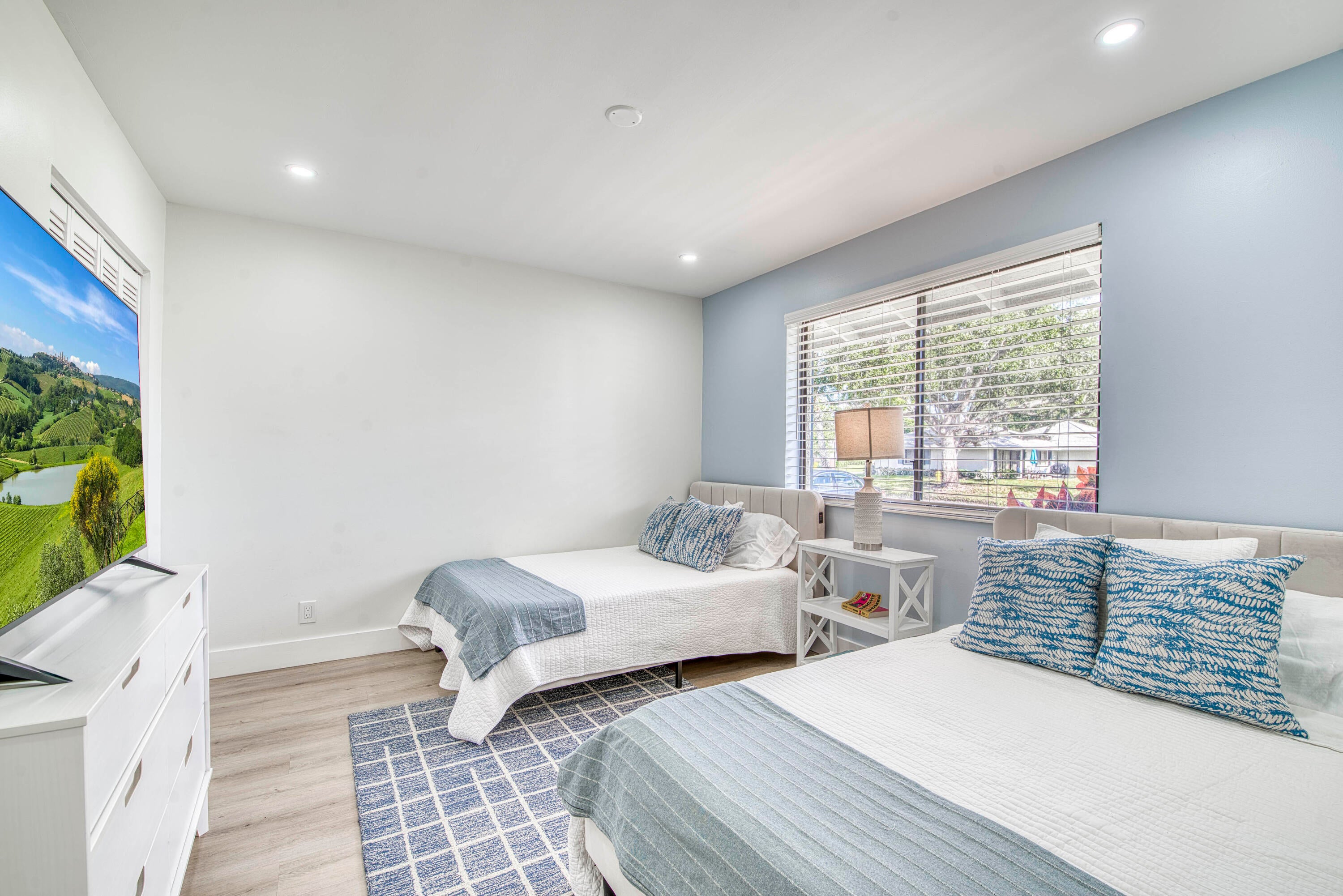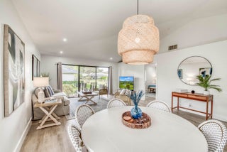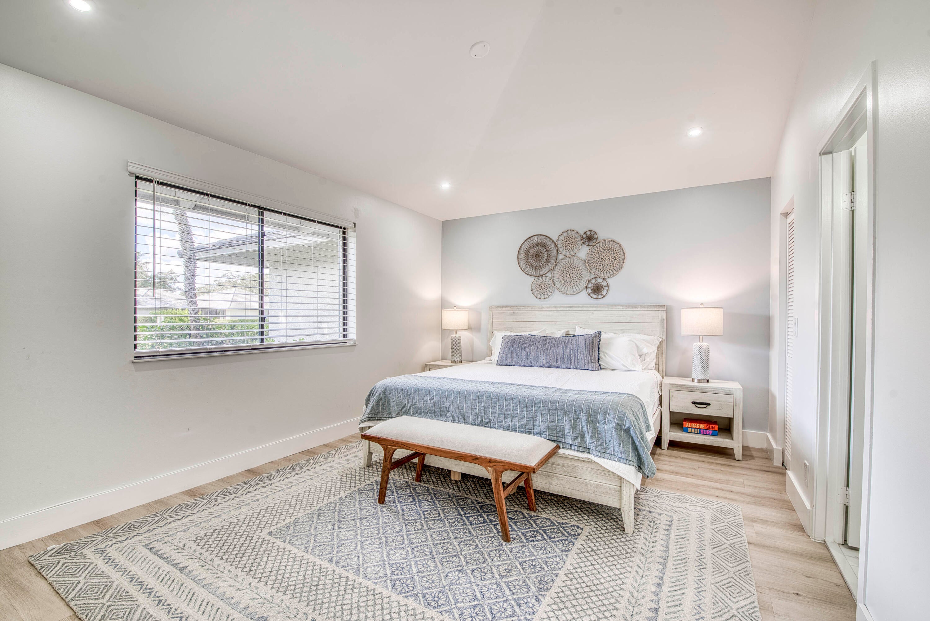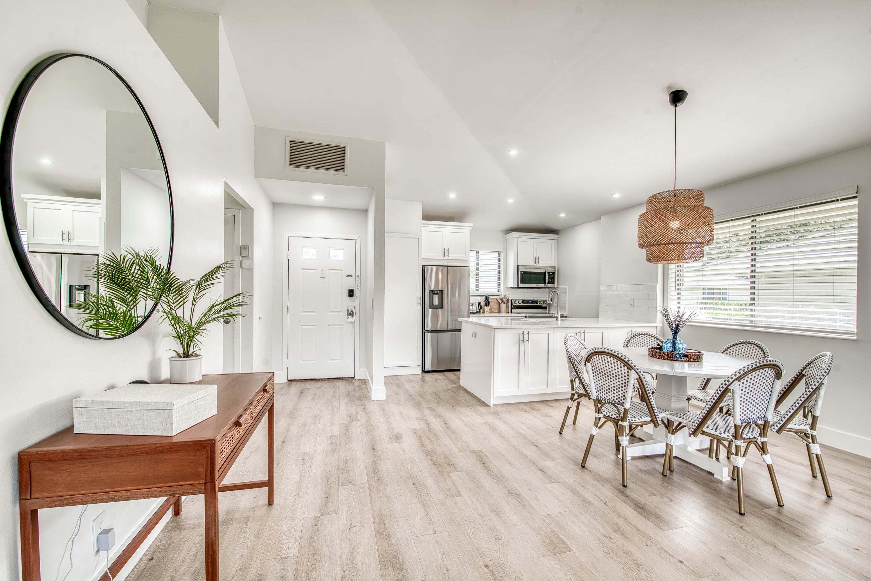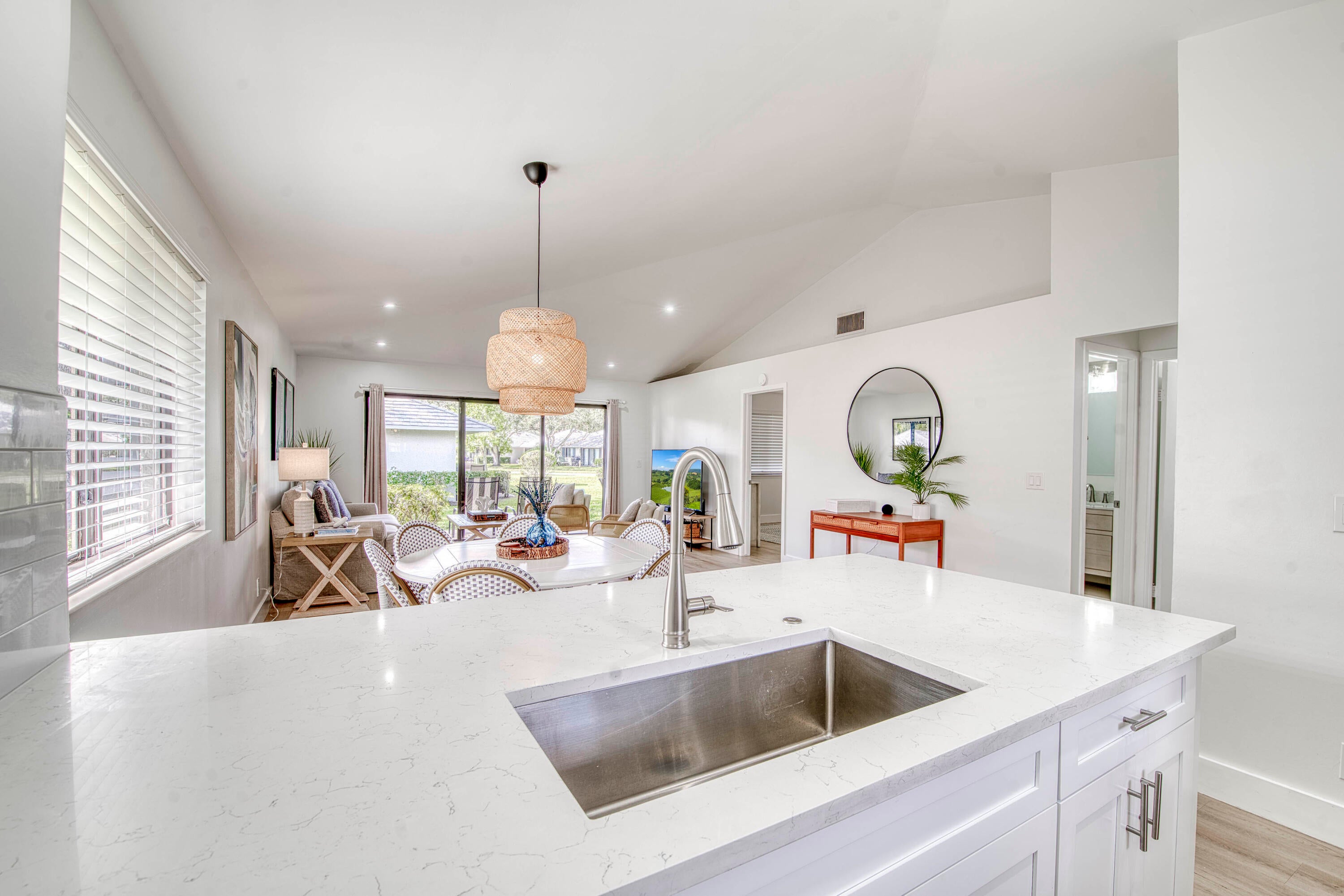 Nestled within the prestigious PGA National community, this charming two-bedroom, two-bath townhouse offers a wonderful blend of comfort, style, and convenience. Measuring 1,135 square feet, this fully furnished residence is ideal as a primary home, seasonal retreat, or investment opportunity, currently part of the sought-after PGA Rental Program, already rented for January, February, and March of 2026. Inside, a bright and open layout creates a welcoming sense of space. The interiors are appointed with white oak luxury vinyl flooring throughout and walls painted in a soft linen palette, setting a calm and contemporary tone. The main living area combines the kitchen, dining, and living spaces into one harmonious design, perfect for both relaxation and entertaining. The living room feelslight and airy with a wall of sliding glass doors that fill the space with abundant natural light and provide a seamless connection to the outdoors. Adjacent to the living area, the dining space is accented by a modern light fixture and a large window that continues the home's bright, inviting atmosphere. The updated kitchen is as functional as it is beautiful, featuring crisp white shaker cabinets, gleaming quartz countertops, and a suite of stainless-steel appliances. An island provides additional storage and workspace, while a cleverly concealed pantry door hides a high-efficiency stackable washer and dryer for added convenience. The primary bedroom is spacious and tranquil, highlighted by a soothing seafoam blue accent wall that complements the home's zen-inspired color scheme. A walk-in closet and en-suite bathroom add comfort and privacy. The primary bathroom showcases spa-like finishes with a light wood vanity topped with quartz, marble-look ceramic floor tile, and a glass-enclosed shower. Enjoying a desirable split floor plan, the guest bedroom mirrors the calm design aesthetic of the primary suite with its own seafoam blue feature wall. Its generous size easily accommodates two full beds, making it perfect for visiting family or friends. Step outside to a cozy open patio accessible from the living room's sliding doors, an ideal spot to enjoy morning coffee or unwind while overlooking the peaceful garden setting. Whether as a serene personal retreat or a smart investment property, this lovely Club Cottage embodies the relaxed Florida lifestyle in one of Palm Beach Gardens' most desirable communities. Experience the comfort, charm, and opportunity this PGA National townhouse has to offer, schedule your visit today.