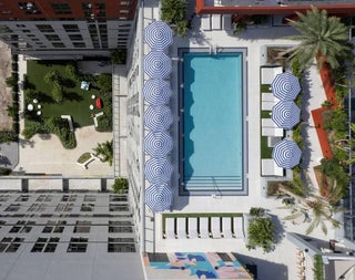 The Highley House combines Wynwood's imaginative setting with inspiring, artfully designed interiors and one-of-a-kind amenities, giving residents a world of new perspectives and experiences. The Terrace at golden hour. A pristine, glittering pool overlooking the Miami skyline. Curated work by some of the world's most renowned muralists and artists. Leading-edge fitness and wellness. A fully wired in-house studio for creators of all kinds--and everything in between.