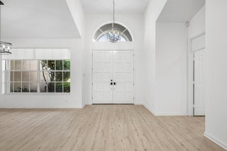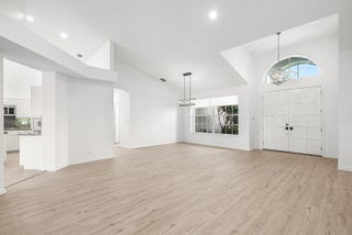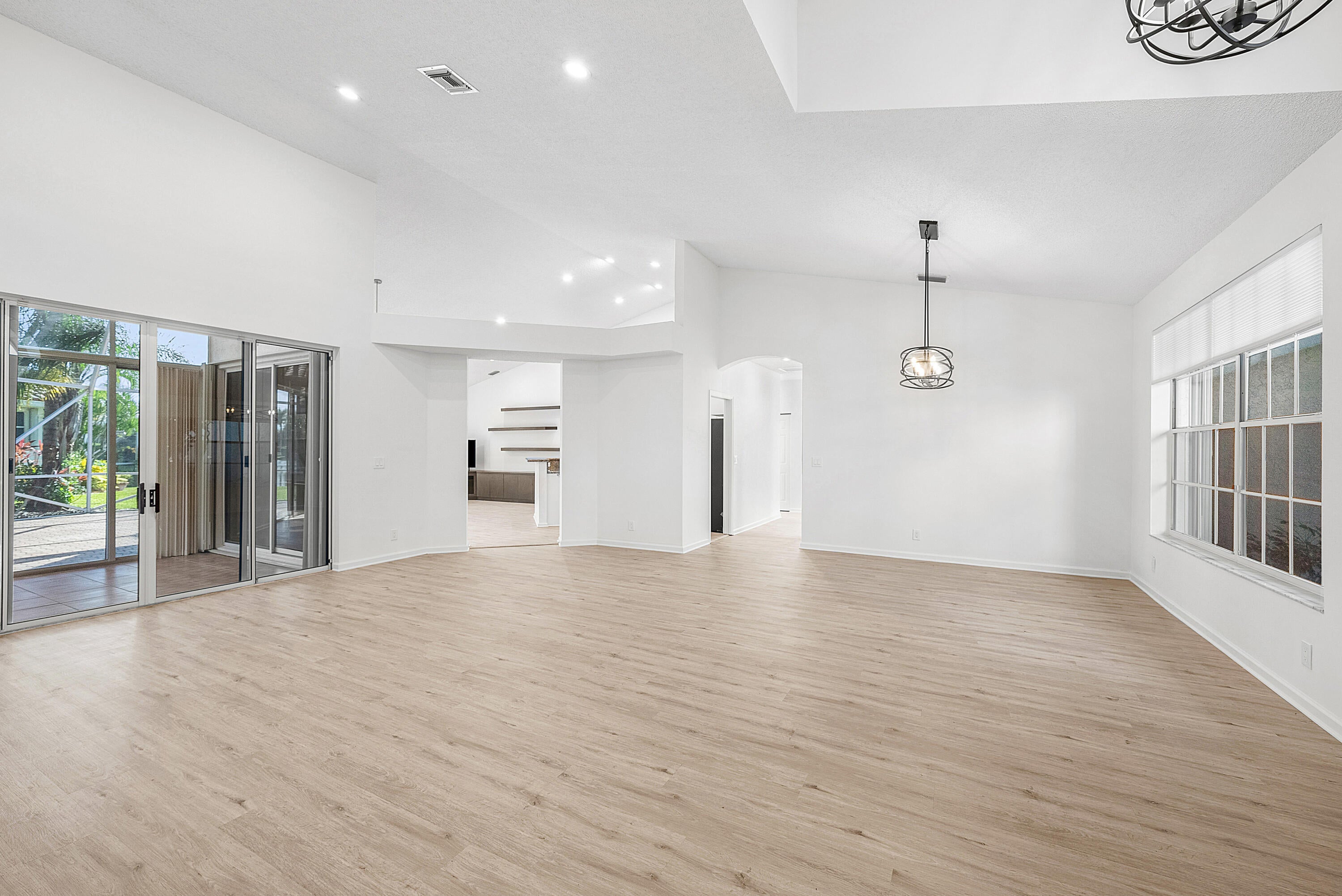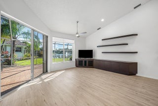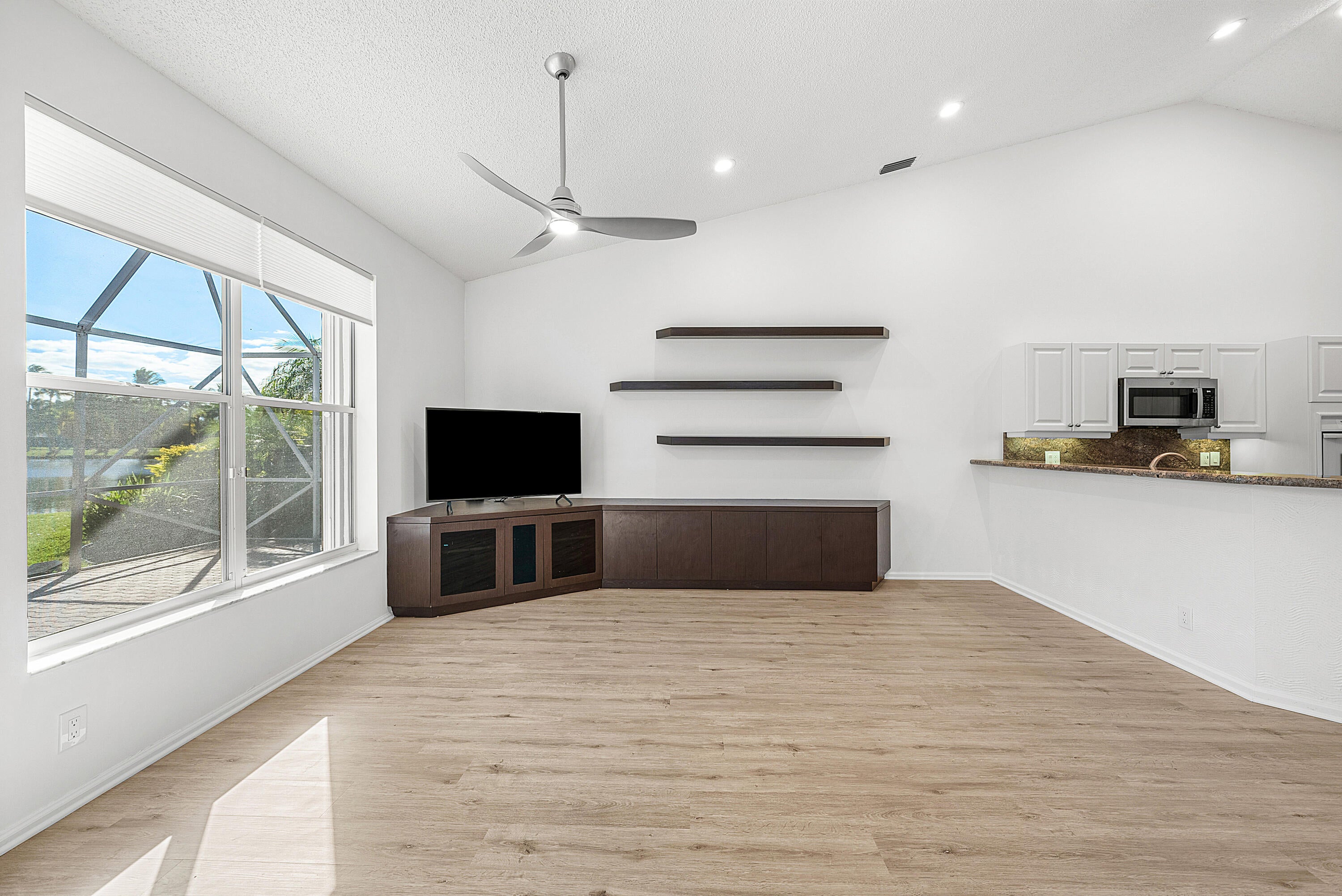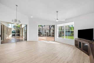 Beautifully maintained 3BR/3BA + Florida room home on a spacious corner lot in the prestigious Aberdeen Golf & Country Club, located in Sterling Lakes, an all ages enclave of only 41 homes. Features include volume/vaulted ceilings, new engineered wood floors (no carpet), fresh interior paint, and abundant natural light. Contemporary kitchen with granite countertops, white shaker cabinets, and new refrigerator/microwave. Primary suite offers walk-in closets, dual vanities, soaking tub, and separate shower. All showers have new flooring. Enjoy lake views from the expansive screened-in patio. Additional highlights: hurricane shutters, impact windows in Florida room, new light fixtures/fans, 2021 tile roof, and newer HVAC systems. Move-in ready and impeccably maintained.