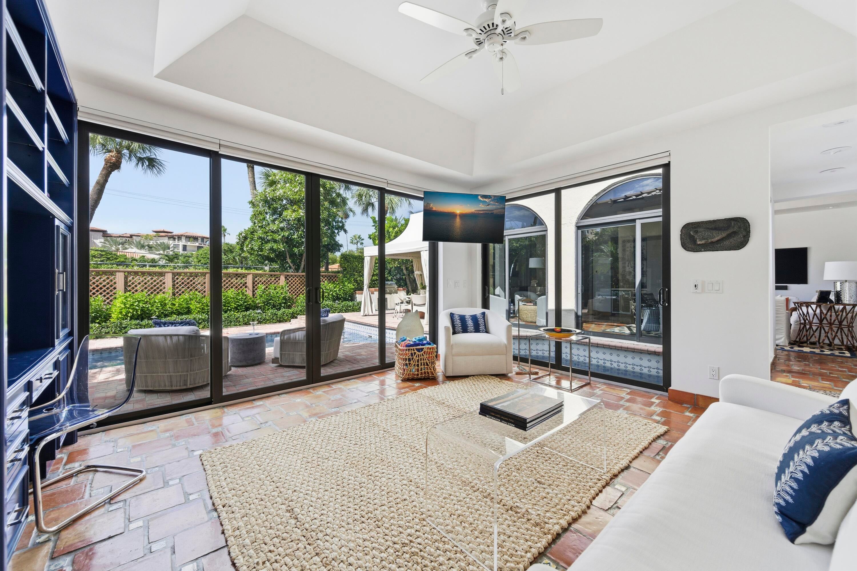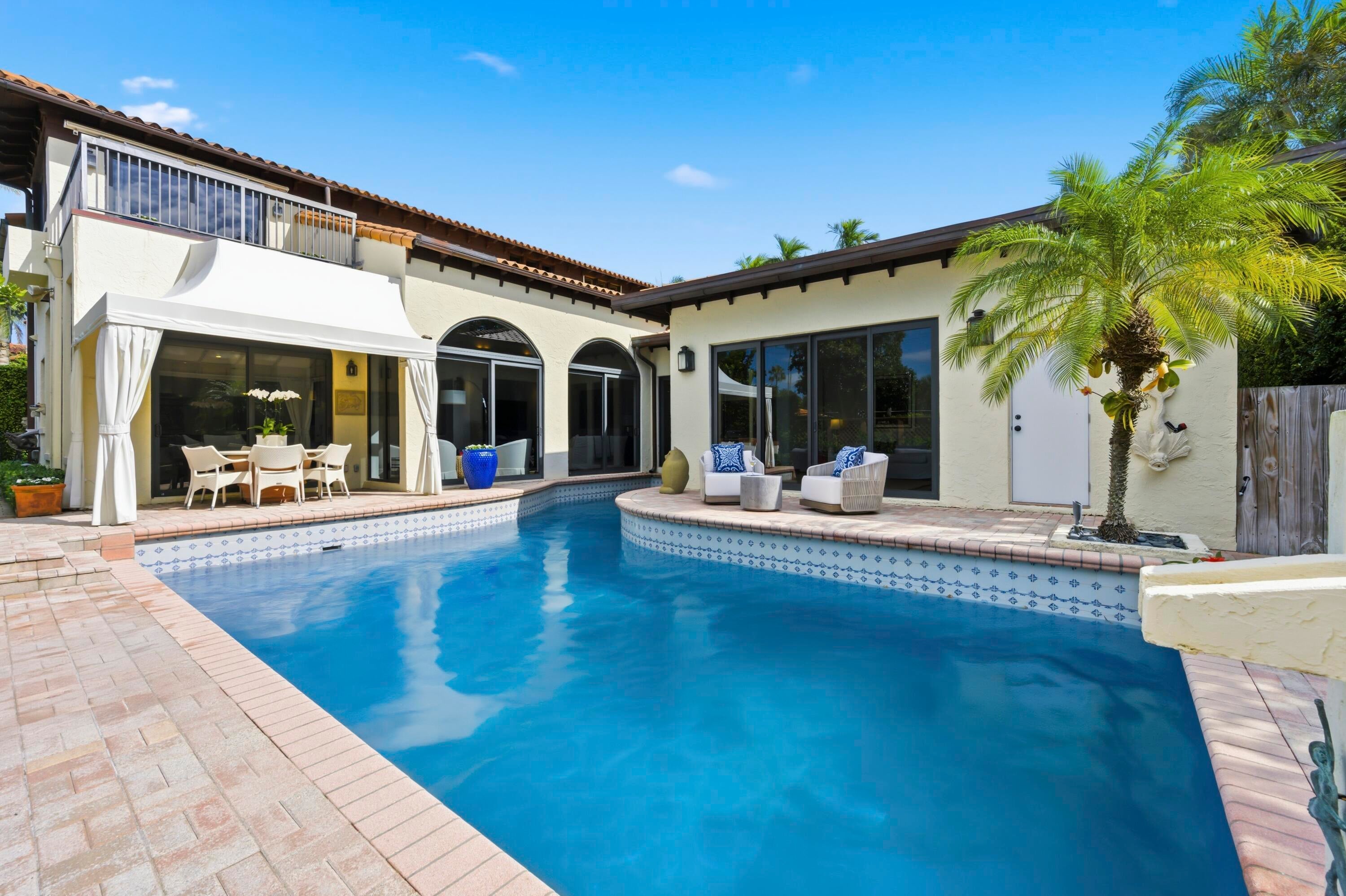 Available for short-term rental in 2026 beginning in March. View this pristine home on Everglade Avenue. This L'Ermitage townhouse is approximately 3300sf with 3 bedrooms and 4.5 baths. Primary suite has two bathrooms plus an office. Spectacular new open kitchen with top-of-the-line Wolf and Sub-Zero appliances. Oversized sliding-glass doors look out to a very private, heated pool. Rental includes use of the L'Ermitage private tennis court and spectacular lap-pool on the intracoastal. Also included is housekeeping and pool cleaning.