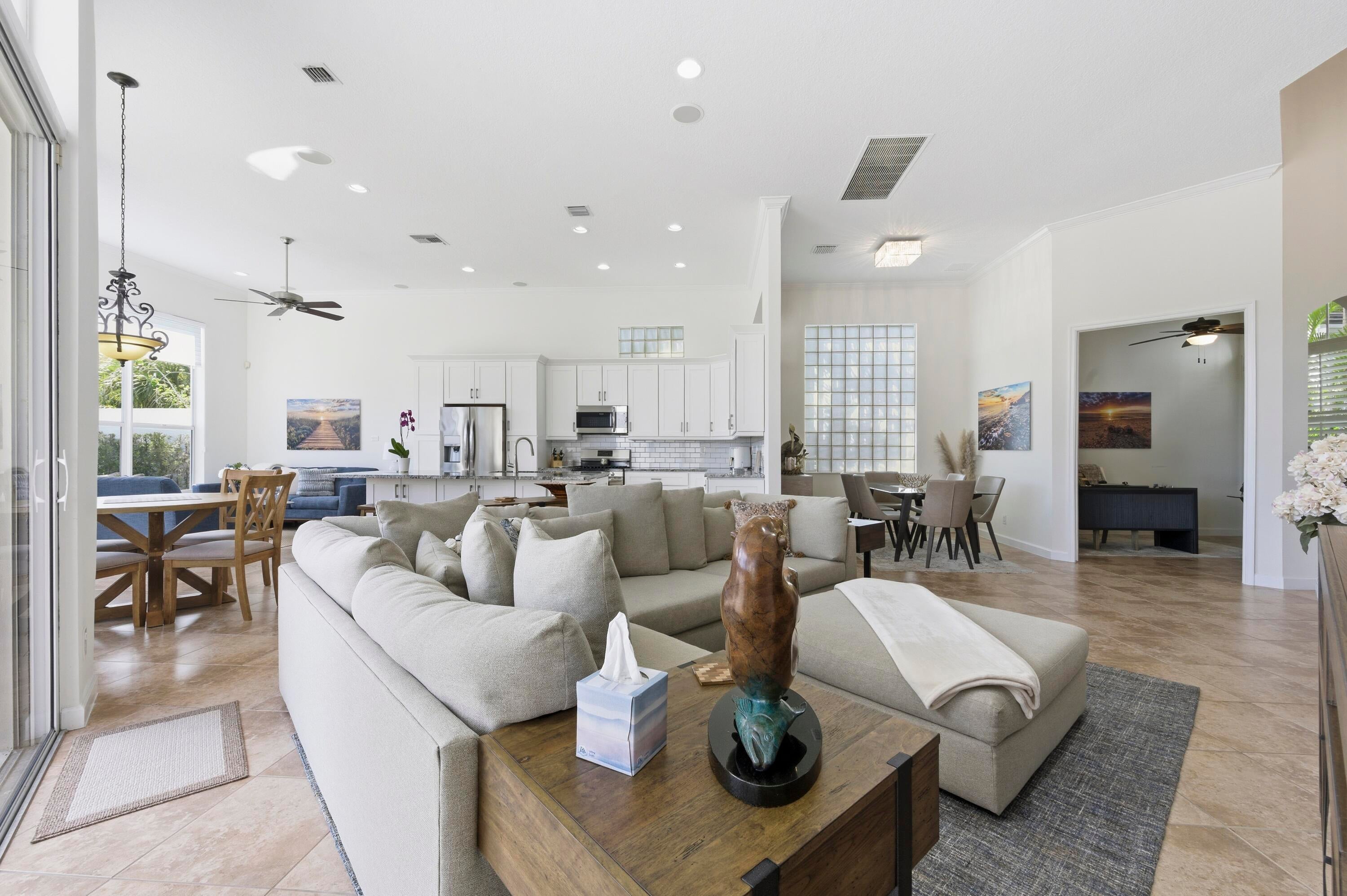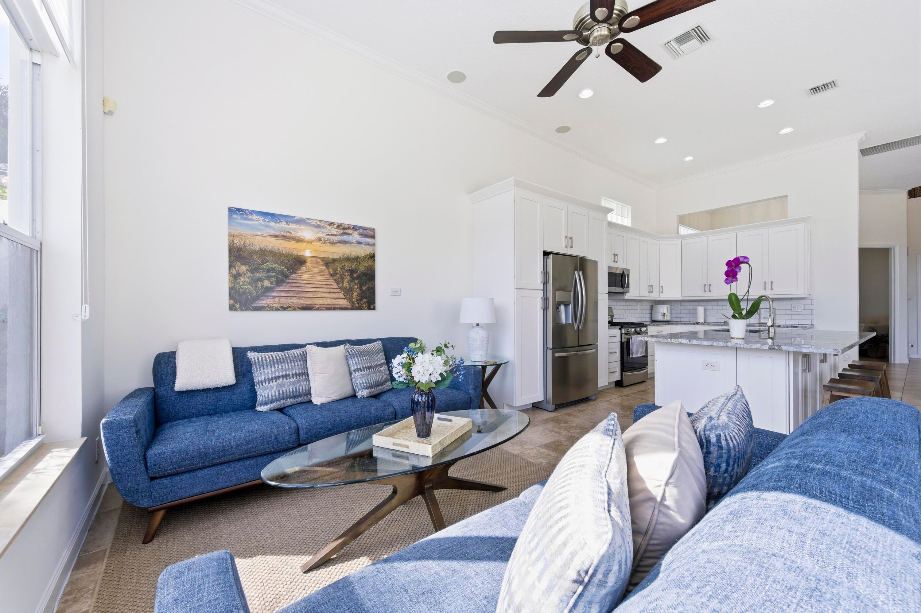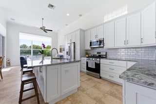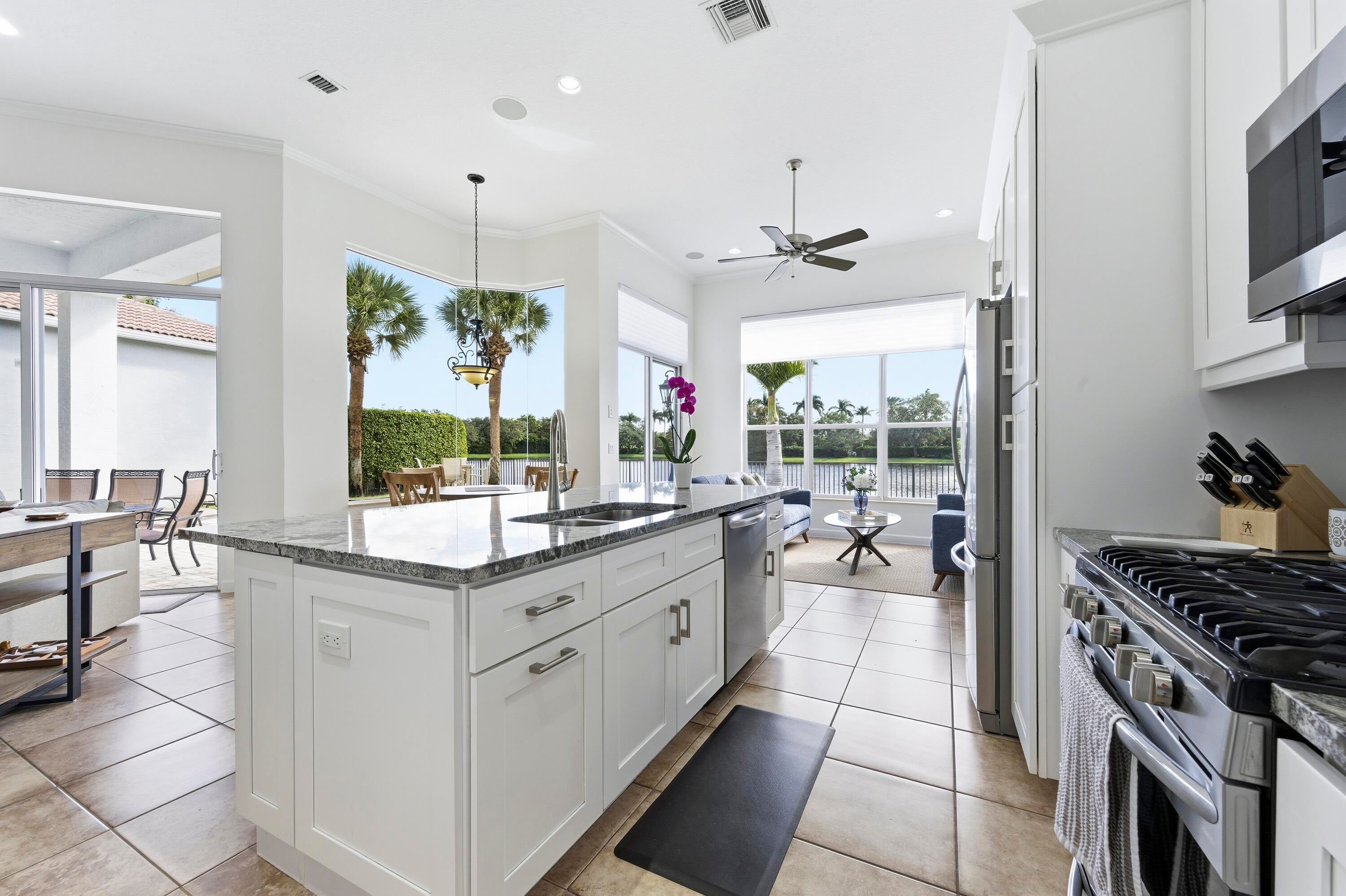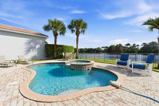 Step into this 4 bedroom plus loft and office/den on a beautiful lake. This extremely light,bright home features a redone kitchen with new cabinets, counter and subway tile backsplash. The stainless steel appliances and island sink have all been updated. The open spaces give you a view of the lake in many rooms in this home. The primary bedroom and another guest suite and office/ den is downstairs . There are 2 guest bedrooms with a jack and Jill full bathroom and a loft for your guests to enjoy upstairs. The backyard has a pool and spa and a lanai looking at the lake where there is a small pier for fishing or just taking in the lake view . There is a grassy area for children or dogs to run. Come see this well cared for, open airy space floorplan for absolute relaxation and enjoyment!!