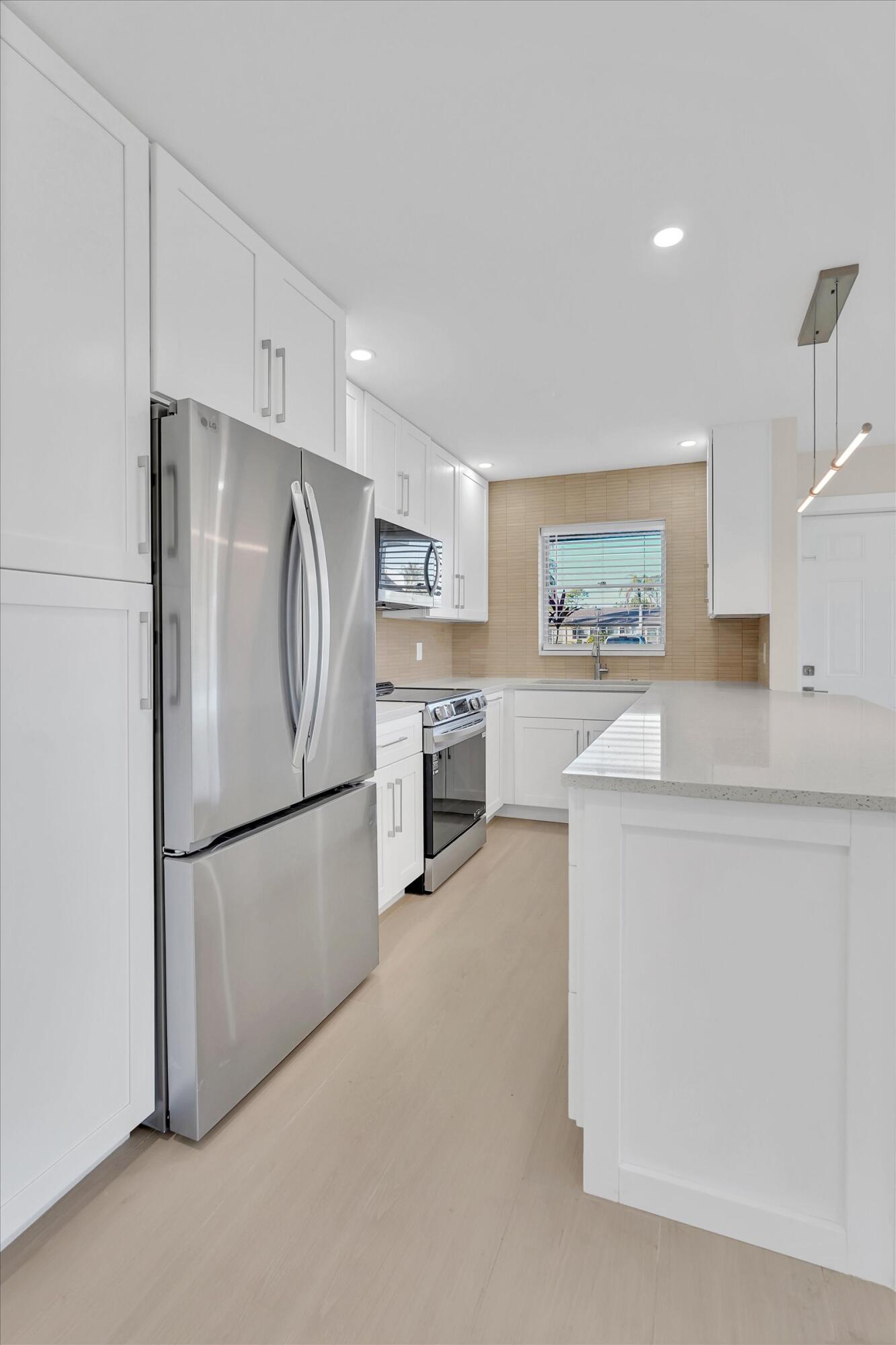 Step into sophistication in this fully renovated condo, where every detail has been upgraded to the highest standards. A bright, open floor plan welcomes you with new wide-plank ceramic tile flooring, custom LED lighting, and premium finishes throughout.The chef-inspired kitchen features sleek cabinetry, quartz countertops, a statement backsplash, and brand-new stainless steel appliances. Open kitchen flows into the spacious living and dining areas.Spa-quality bathrooms have been completely transformed with contemporary tile, designer fixtures, and high-end vanities.Additional highlights include updated electrical and plumbing, fresh paint, and thoughtfully selected materials that bring style, comfort, and style.Move-in ready and crafted with care.