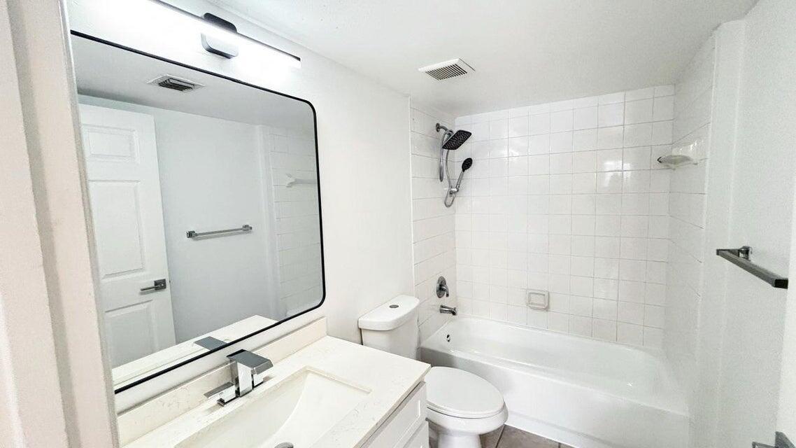 Beautiful First-Floor 3/2 -- Move-In Ready! Welcome home to this stunning first-floor residence featuring freshly painted interiors, beautifully remodeled bathrooms, and newer appliances including a brand-new microwave. Enjoy modern comforts with LED lighting, stylish fans, new blinds, and an in-unit washer and dryer. The A/C was replaced in 2021, the roof is new, and there are no assessments. This well-maintained community offers resort-style amenities including a scenic lake with walking path, pool, fitness center, BBQ/picnic area, playground, tennis courts, car wash, and ample guest parking. Ideally located near major highways, shopping, the Promenade, and top-rated schools.