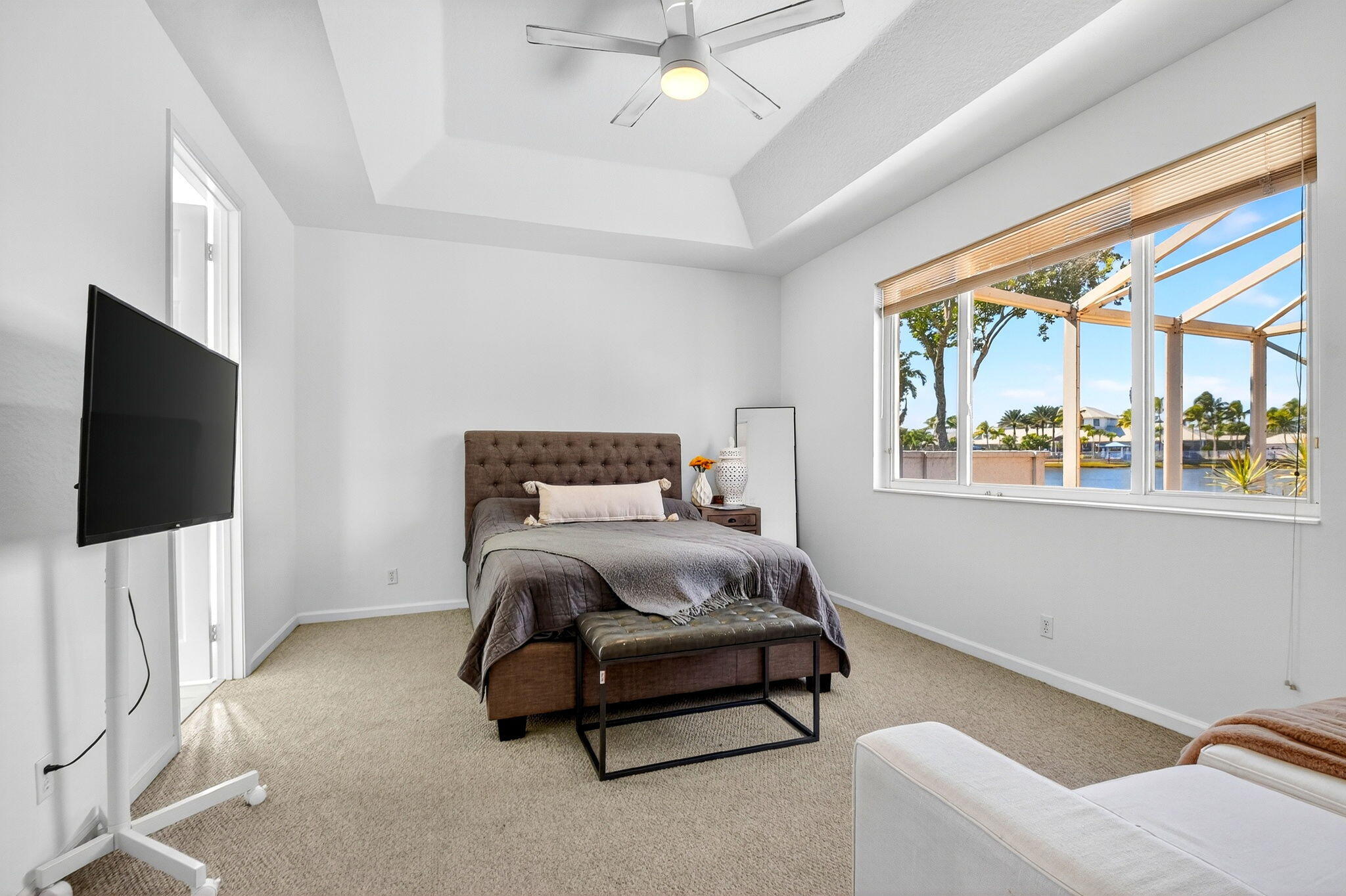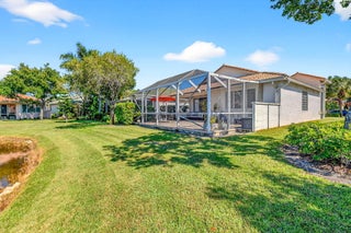 RARELY AVAILABLE LAKEFRONT HOME WITH ONE OF THE BEST PANORAMIC VIEWS IN BAYWINDS. This exceptional 3BR/2BA residence is ideally positioned to capture sweeping, unobstructed views across the wide lake toward the Baywinds Clubhouse--offering a serene and truly spectacular backdrop.The light-filled open living and dining areas create an inviting layout that flows seamlessly to the oversized, screened, and covered lanai. Perfect for relaxing or entertaining, this expansive outdoor space showcases the home's breathtaking lakefront setting.Inside, the open-concept design includes a charming eat-in kitchen and three well-appointed bedrooms, offering both comfort and functionality.Opportunities like this--combining a premier location with unmatched long-lake vistas--are seldom available.The eat-in kitchen features a dramatic quartz waterfall countertop, stainless steel appliances, and picturesque lake views. The spacious primary suite includes a large walk-in closet and an ensuite bath with shower, soaking tub, and dual vanities. Baywinds is a premier 55+ resort-style community surrounded by lakes, tropical landscaping, and tree-lined streets. Residents enjoy exceptional amenities including three pools (lap pool, family pool, and resistance/walking pool), a full clubhouse with fitness center, billiards, media room, arts and crafts, and water aerobics. Additional amenities include tennis, pickleball, and bocce courts with lighting for evening play. Conveniently located just 15 minutes from downtown West Palm Beach and approximately 6.5 miles from Palm Beach International Airport. Sapphire Cove at Baywinds offers a beautiful country club lifestyle without the high fees.