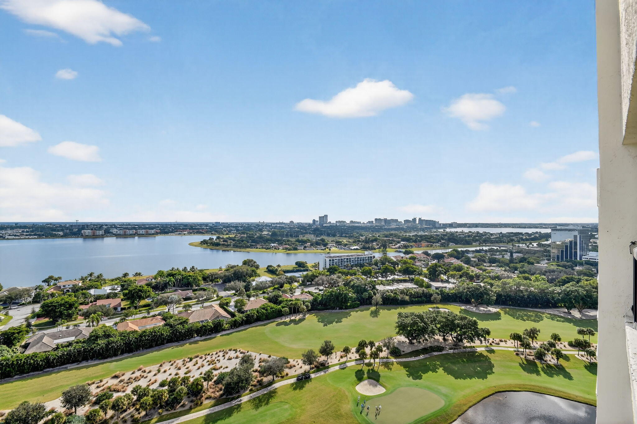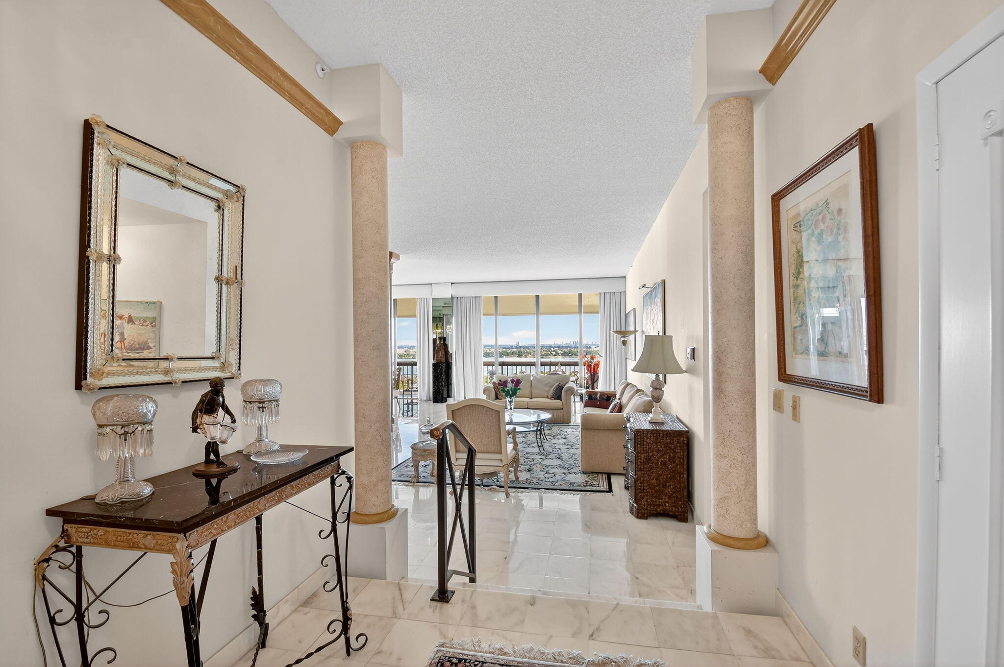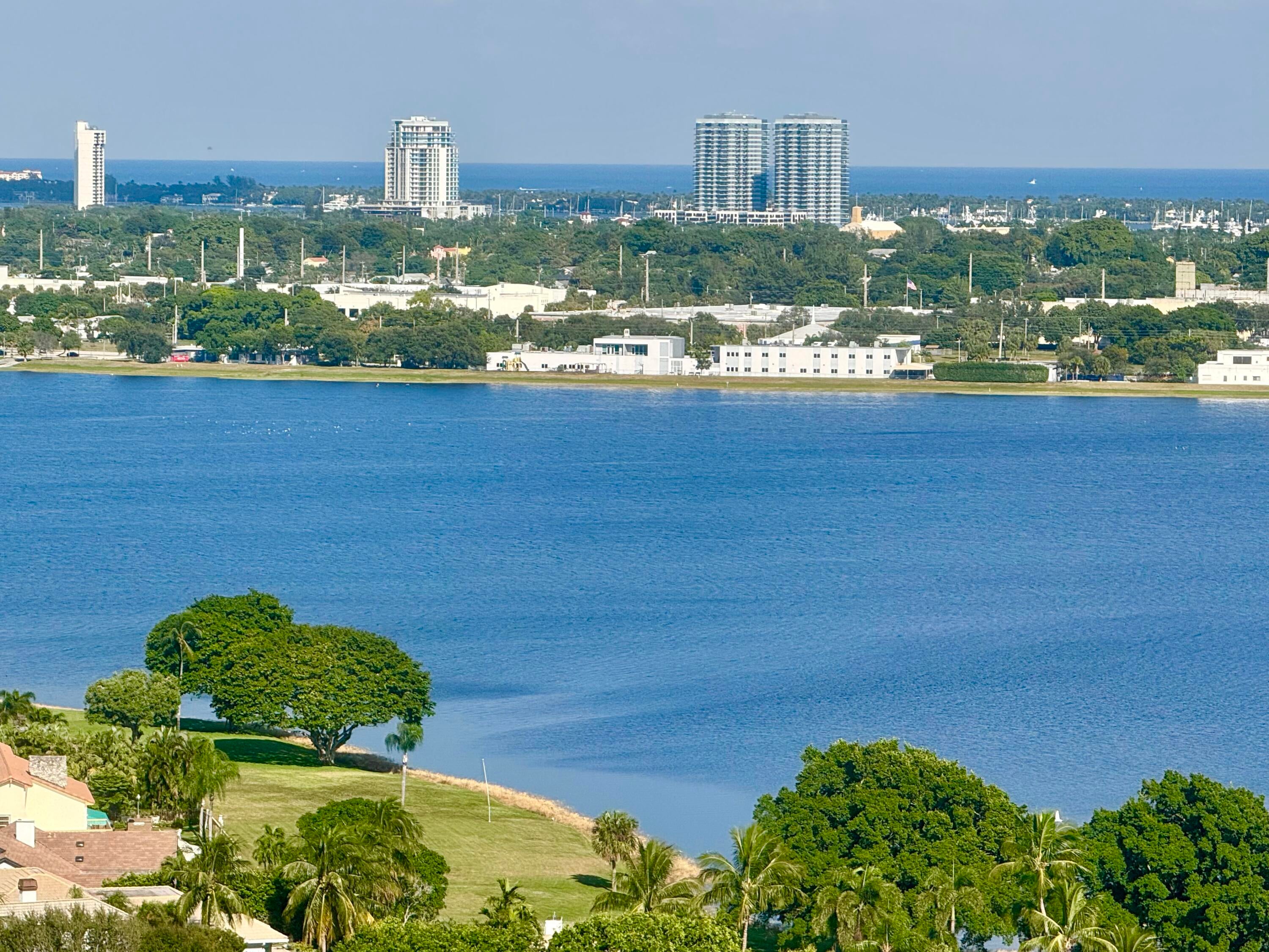 RARE CORNER 3BR PENTHOUSE FACING EAST & NORTH ~ High 10'8'' ceilings, floor-to-ceiling sliders, and a wraparound balcony! Sweeping views all the way to the ocean, Palm Beach, Singer Island, as well as Dutchman's Pipe Golf Course and Lake Mangonia. This 2,600 SF corner residence is the largest floorplan in The Consulate due to expanded kitchen, dining and bedrooms. Sunlight fills every room, each opening to the continuous north and east-facing terraces for stunning sunrises and soft sunset colors. Located in a 24-hour gated community East of 1-95 with concierge services, heated pool, fitness center, covered parking space #122. A RARE penthouse opportunity combining scale, light, privacy, and some of the most breathtaking views in all of Palm Beach County.