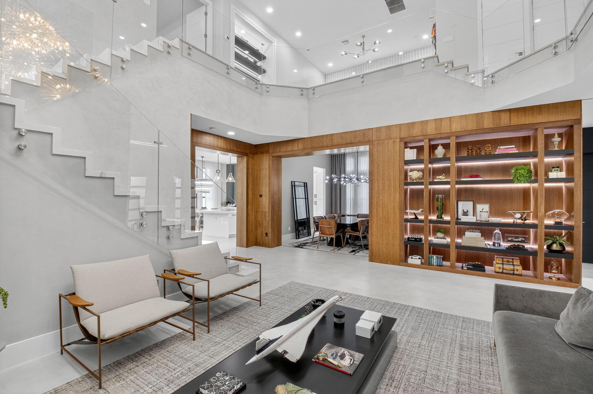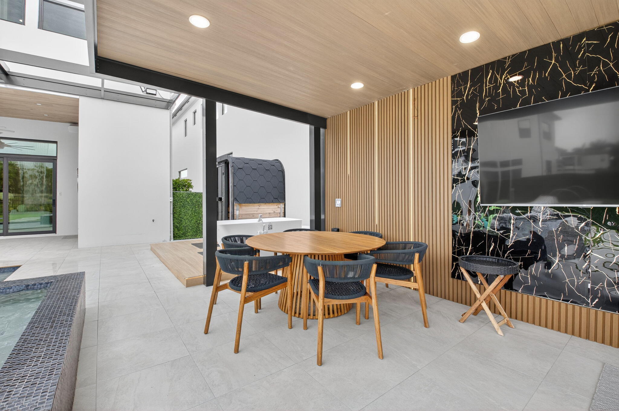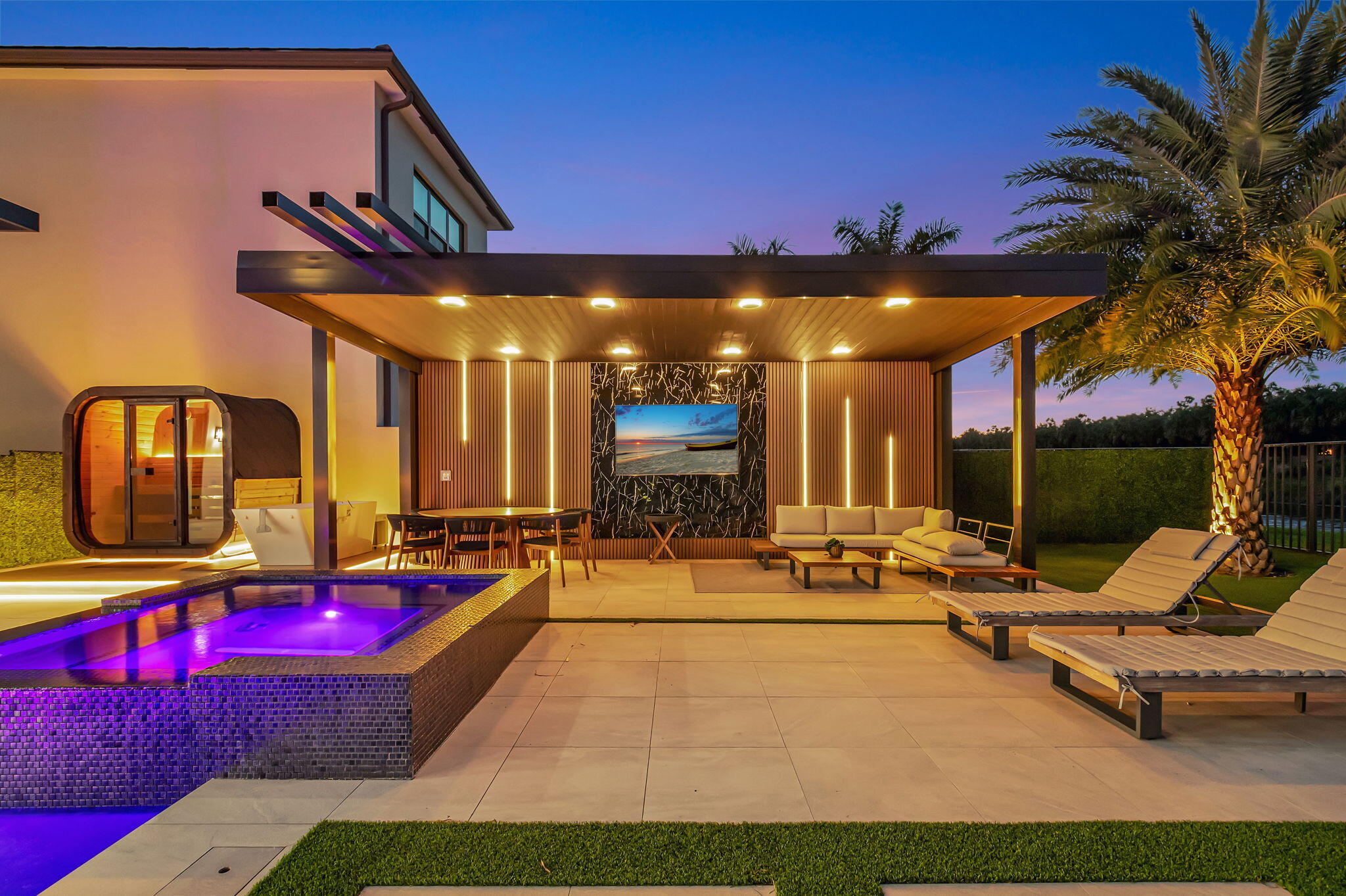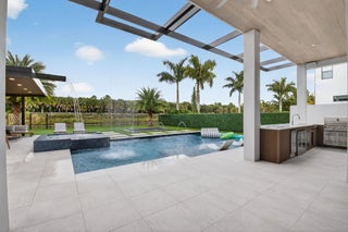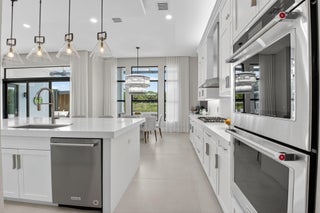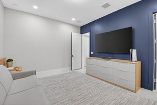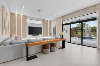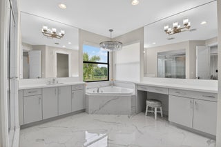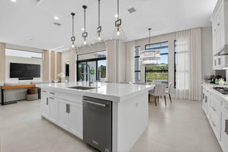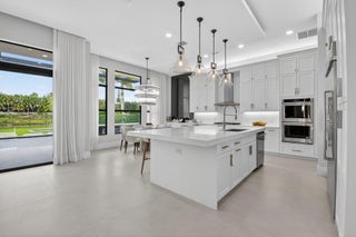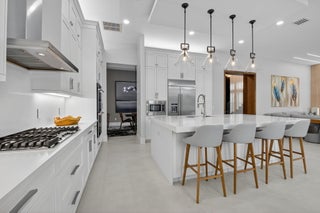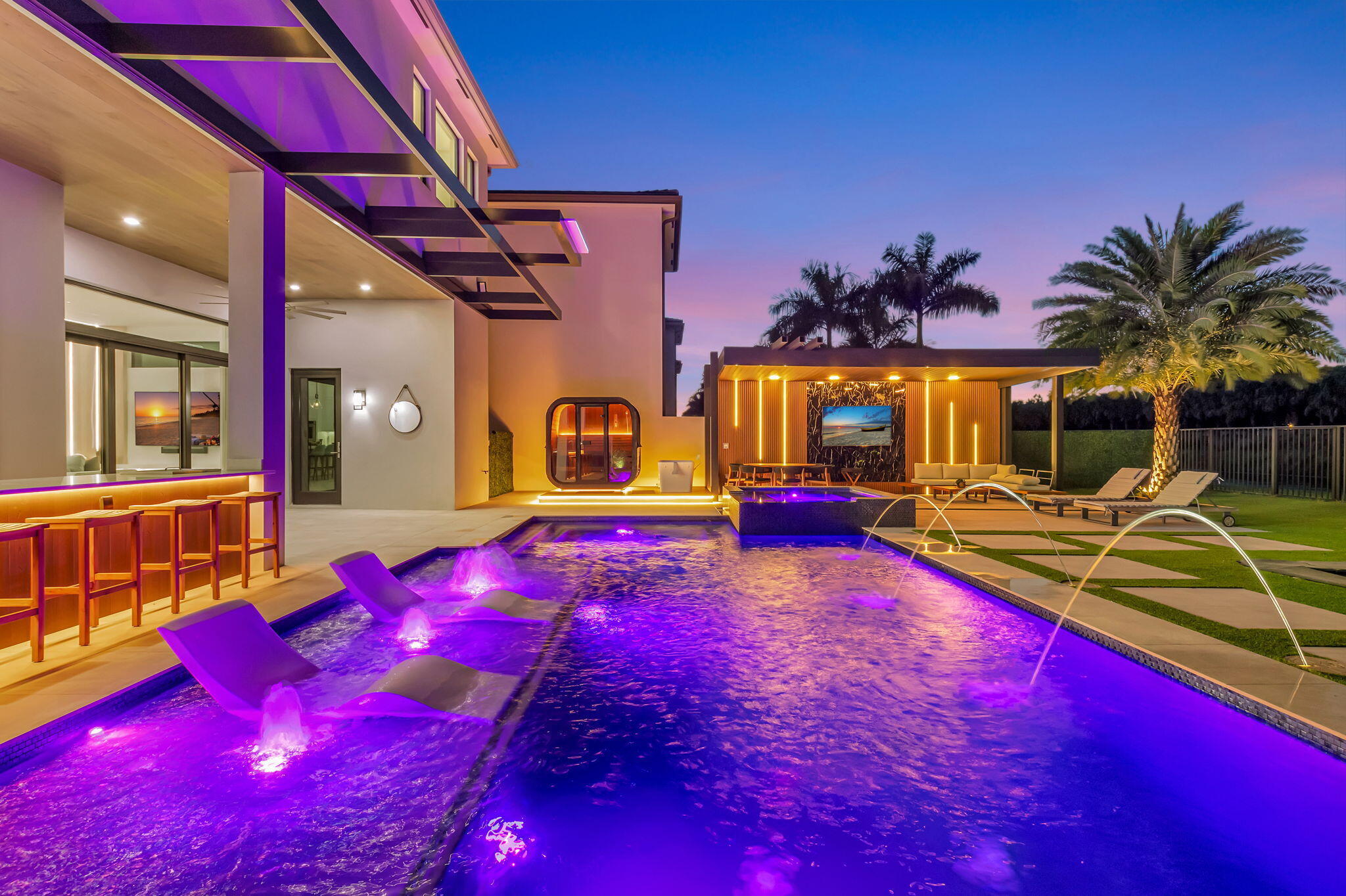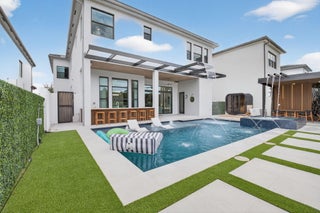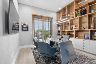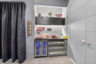 Luxury contemporary 5 bed, 6.5 bath home with designer upgrades throughout. All high-end furniture included in price. Private lake view, heated pool, movie room, sauna, cold plunge & outdoor kitchen. Fully upgraded and turn-key. 48x48 matte porcelain tile, widened glass staircase, custom millwork, Venetian plaster feature walls, custom drapery, designer lighting, & multiple bespoke built-ins. The kitchen features drop ceiling detail, designer hardware & lighting, & opens to the family room with a custom media buildout. Downstairs includes a guest bedroom suite with upgraded shower door & custom headboard, plus upstairs the loft provides custom drapes & dry bar. The primary suite showcases a custom headboard wall, fireplace sitting area, & stunning fully customized closets. see exclusions.EXCLUSIONS: Iron Man in Movie Theater & Airplane Wing on Living Room Wall. Outdoor living feels like a private resort with a peaceful lake view, heated pool with sun shelf & waterfall, turf yard, outdoor audio, lighting package, pergola dining & lounge area, custom sauna & cold plunge, & a built-in summer kitchen with refrigerator, ice machine & dual sinks. The dramatic movie room offers lime wash walls, 7" wood plank flooring, cove lighting, candy bar & refrigerator. 3 car garage is fully finished with 48x48 concrete porcelain floors, garage cabinets + shelving, and Tesla charger. Additional details include upgraded doors & baseboards, upgraded one-piece toilets, upgraded shower doors in secondary bathrooms, custom closet buildouts, & a key-card accessed hidden room.