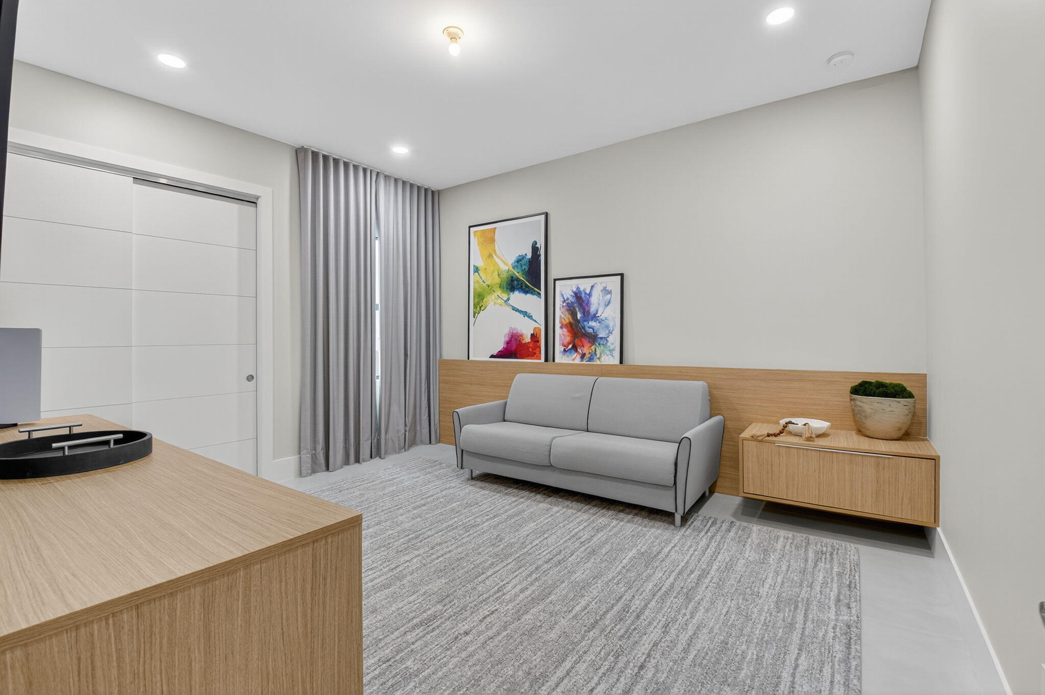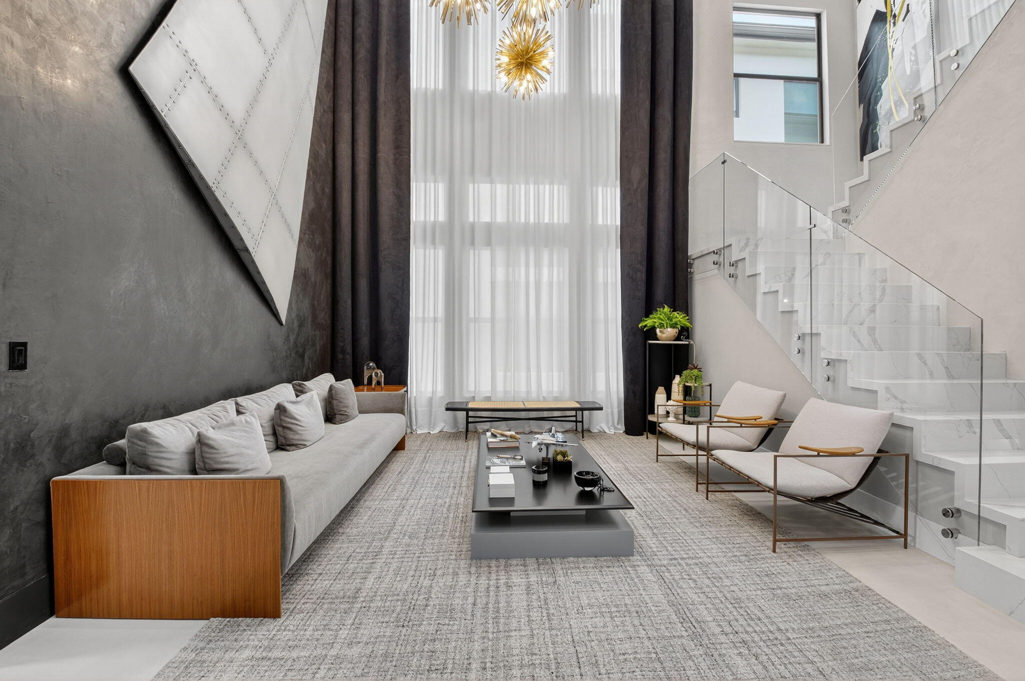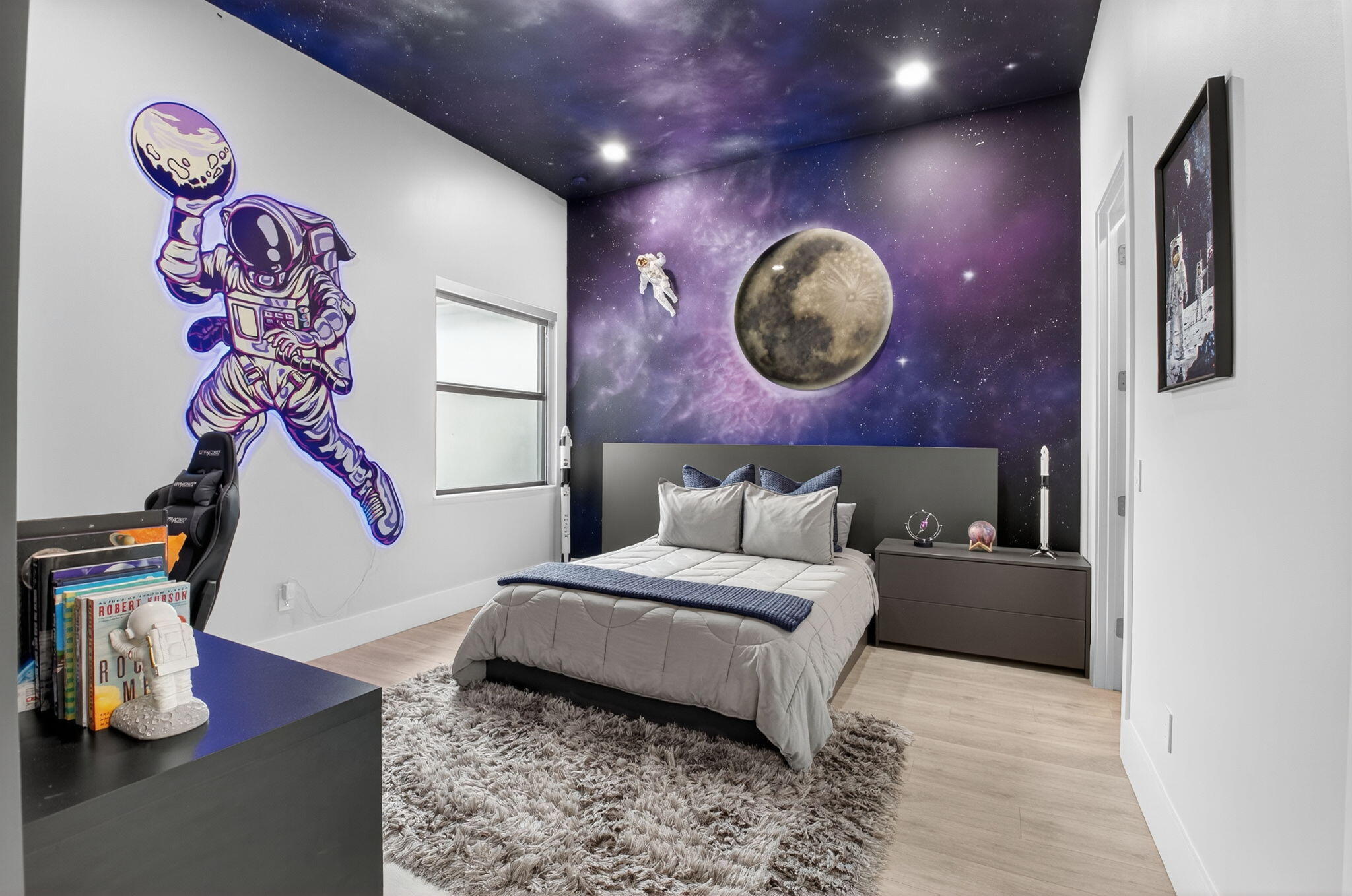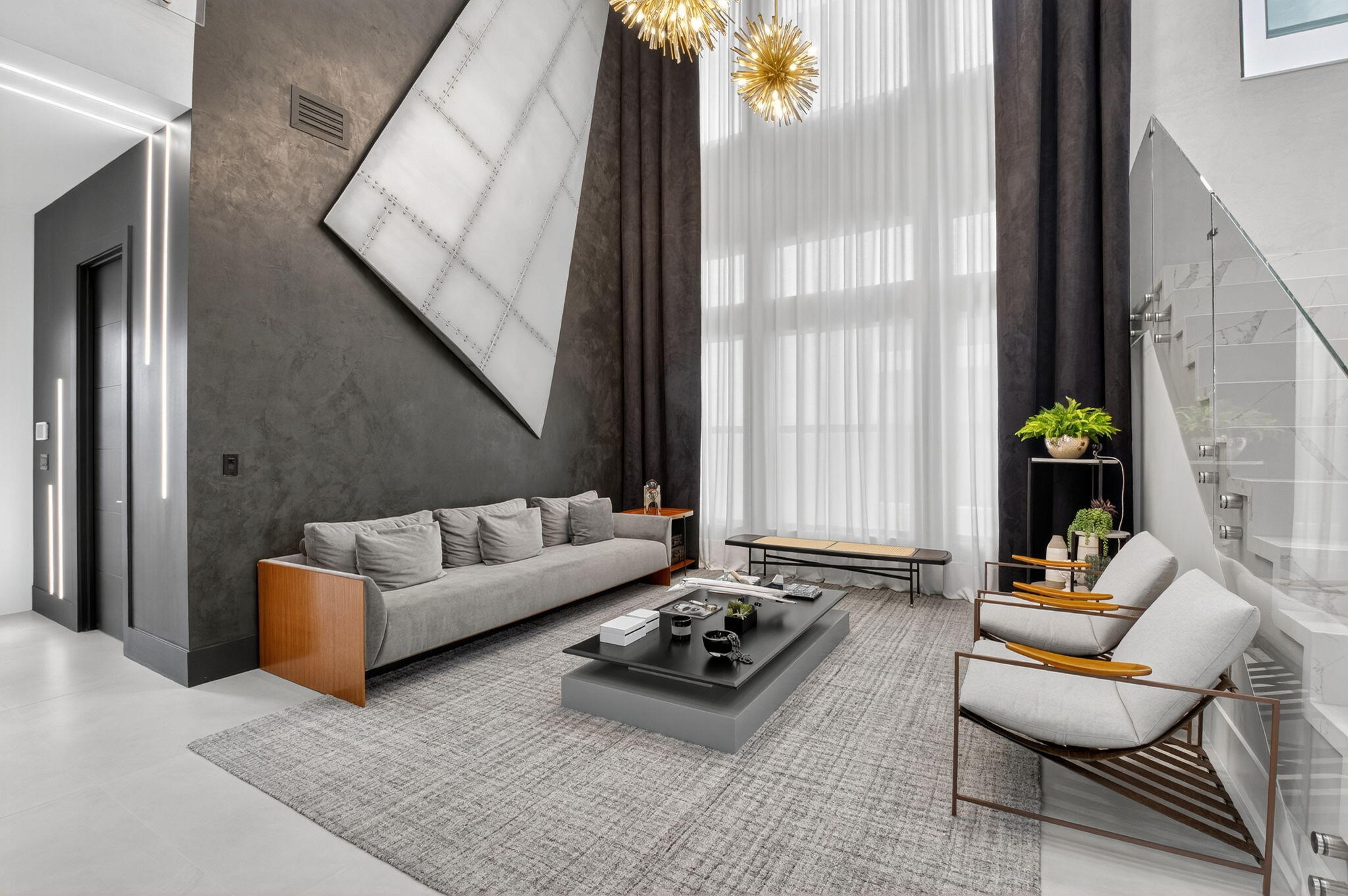 Luxury contemporary 5 bed, 6.5 bath home with designer upgrades throughout. All high-end furniture included in price. Private lake view, heated pool, movie room, sauna, cold plunge & outdoor kitchen. Fully upgraded and turn-key. 48x48 matte porcelain tile, widened glass staircase, custom millwork, Venetian plaster feature walls, custom drapery, designer lighting, & multiple bespoke built-ins. The kitchen features drop ceiling detail, designer hardware & lighting, & opens to the family room with a custom media buildout. Downstairs includes a guest bedroom suite with upgraded shower door & custom headboard, plus upstairs the loft provides custom drapes & dry bar. The primary suite showcases a custom headboard wall, fireplace sitting area, & stunning fully customized closets. see exclusions.EXCLUSIONS: Iron Man in Movie Theater & Airplane Wing on Living Room Wall. Outdoor living feels like a private resort with a peaceful lake view, heated pool with sun shelf & waterfall, turf yard, outdoor audio, lighting package, pergola dining & lounge area, custom sauna & cold plunge, & a built-in summer kitchen with refrigerator, ice machine & dual sinks. The dramatic movie room offers lime wash walls, 7" wood plank flooring, cove lighting, candy bar & refrigerator. 3 car garage is fully finished with 48x48 concrete porcelain floors, garage cabinets + shelving, and Tesla charger. Additional details include upgraded doors & baseboards, upgraded one-piece toilets, upgraded shower doors in secondary bathrooms, custom closet buildouts, & a key-card accessed hidden room.