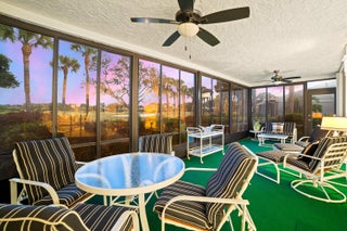 This spacious 1,809-square-foot condo offers sweeping golf course and lake views, three bedrooms--one that can serve as a convertible den, granite counter tops in the kitchen, and two beautifully updated bathrooms. Located on the ground floor, it provides comfortable, convenient access to the outdoors. Inside, abundant natural light fills the living spaces, while the private screened patio overlooking the golf course and wildlife, is perfect for al fresco dining and enjoying Florida's beautiful weather. Off the kitchen and dining room is a large private patio ideal for grilling and outdoor entertaining. There is also a community pool and clubhouse minutes away. The luxury lifestyle awaits at Hunters Run Country Club, offering three, 18 hole championship golf courses including the brand-new East Course designed by Kip Schulties, 18 Har-Tru tennis courts, 12 pickleball courts, a resort-style clubhouse and pool, full-service salon and spa, state-of-the-art fitness center, six dining venues, and more! There is a mandatory one-time equity and initiation fee of $125,000, plus monthly dues.