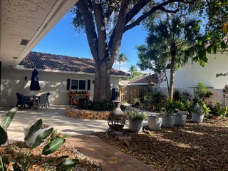 Beautifully renovated corner home on a gigantic lot with 10+ parking spaces and 2+ garage in a very popular EAST BOCA & SCHOOLS! Modern oceanic epoxy floors.Elegant Dining Room seats 12+. Gorgeous Chef's kitchen just made for entertaining! Home is surrounded by Citrus Tree Orchard & Pineapple groves & Herbs and is a tropically landscaped paradise you can't miss to see! Fully furnished with a generator, air fryer oven & chimneys.LOCATION. LOCATION. LOCATION.Rarely available Custom built ADA home in East Boca with NO HOA, Move in ready for you! Yes, you can have it all...Special needs family, 1.5 miles to the beaches, community park, all ages, easy access 95, airports, shopping, theatre, no cookie cutter neighborhood, beautiful courtyard...to enjoy South Florida tropical living at its best! Recently renovated ranch home..."industrial elegance"... ADA accessible with beautiful oceanic epoxy floors. NO carpet Custom blinds throughout and Auto blinds in Great room Fans,indoor and outdoor light fixtures, AV · Elegant Dining Room seats 12 + with pocket door for privacy · ADA/Wheelchair accessible throughout · Open kitchen space for entertaining cooking. Great natural light · 3 Bedrooms 2 and ½ Baths- Steam shower in guest bath · Outdoor Shower with hot, cold and handheld Finished Garage with Slatwall Storage system. Brand new Storage Shed in Courtyard Commercial Juicer · Majestic 100+ year old oak tree in courtyard · TKO's Orchard Surrounds the home by 42 Citrus Trees including Orange, Lemon, Grapefruit, Lime, Papaya, Lychee Raised gardens for herbs, tomatoes, etc Over 110 Pineapple plants New HVAC and hotwater 2024 Tropically landscaped gardens to honor Dot, the original owner including Crown of Thorns, Bird of Paradise, Cuban Butterfly, plumeria, firecrackers, lavender, roses, gardenia, magnolia Bush and more. Racchio water saving sprinkler system Decorated Stamped concrete driveways · 2 + full car garages fits 8' van with openers · Full interior Laundry Room Standy propane home generator, solitubes,air fryer oven, chimneas, Private workspace/ in law suite/art studio off courtyard and more Offered partially furnished Must see! Won't last! Prefer "as is" with the right to inspect Cash/ Proof of funds Location! Yes, You can have it all! See DOCUMENTS Seller Disclosure, survey