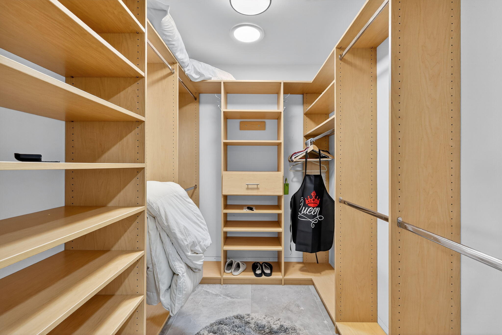 Bar, Built-in Shelves, Closet Cabinets, Ctdrl/Vault Ceilings, Pantry, Pull Down Stairs, Sky Light(s), Stack Bedrooms, Volume Ceiling, Walk-in Closet