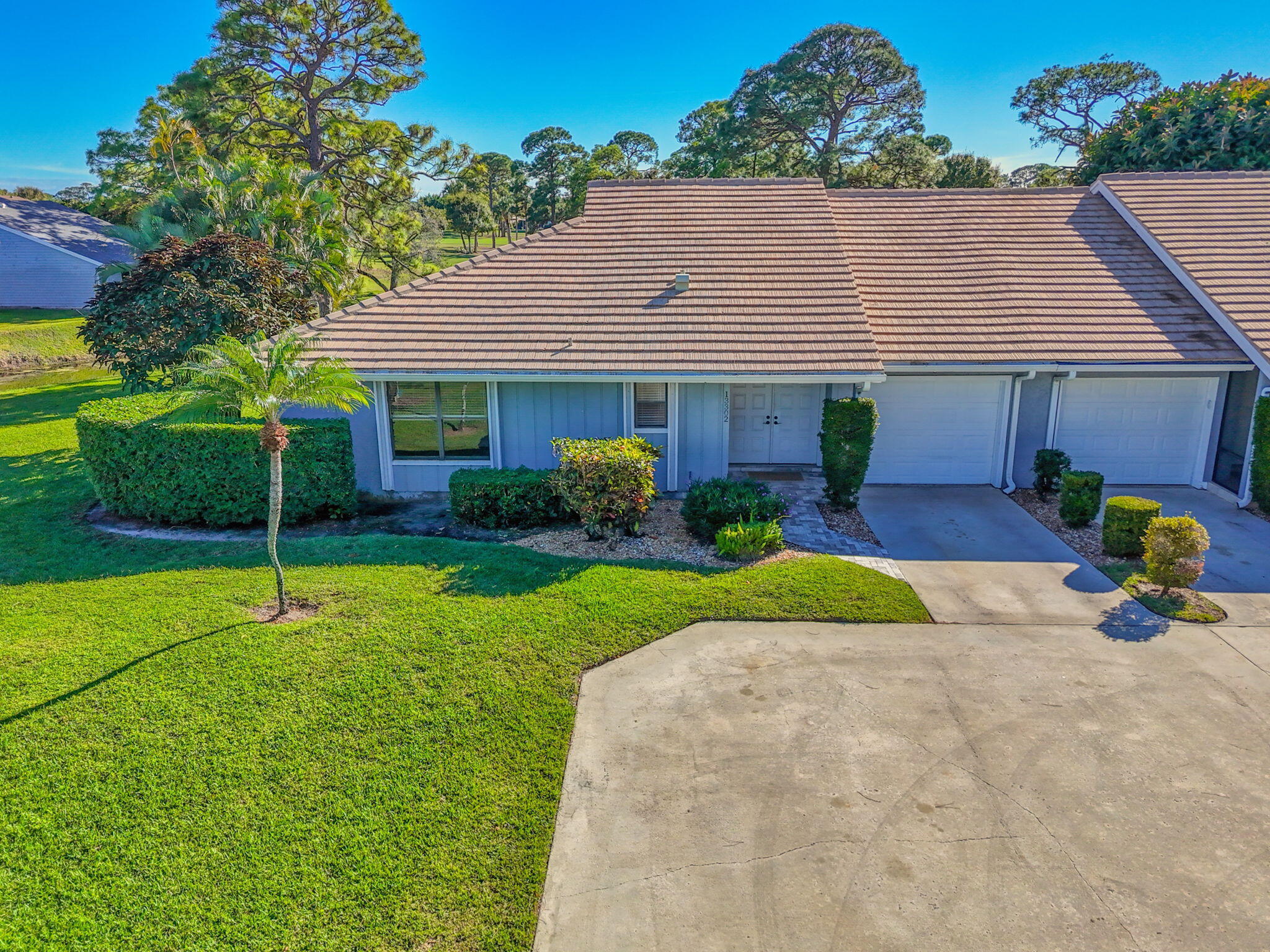 Prestigious Eastpointe Country Club 2/2 single story corner villa with beautiful golf & water views. Open concept layout perfect for entertaining. Enjoy an elegant lifestyle with a renovated gourmet kitchen, updated baths, flooring & more! Split BR plan. Covered screened patio where you can enjoy natures beauty that surrounds you. 1 car garage plus driveway & large open area in front of villa for additional guest parking. Seller will pay the one-time $10,000 club initiation fee for the social membership at closing for Buyer. Eastpointe has 24 hour manned security. Top-notch amenities include 2 Fazio designed golf courses, dining, tennis/pickleball, resort style pools, new state of the art fitness center & more!