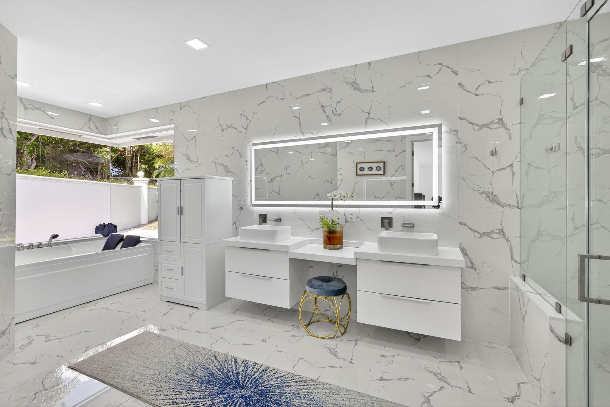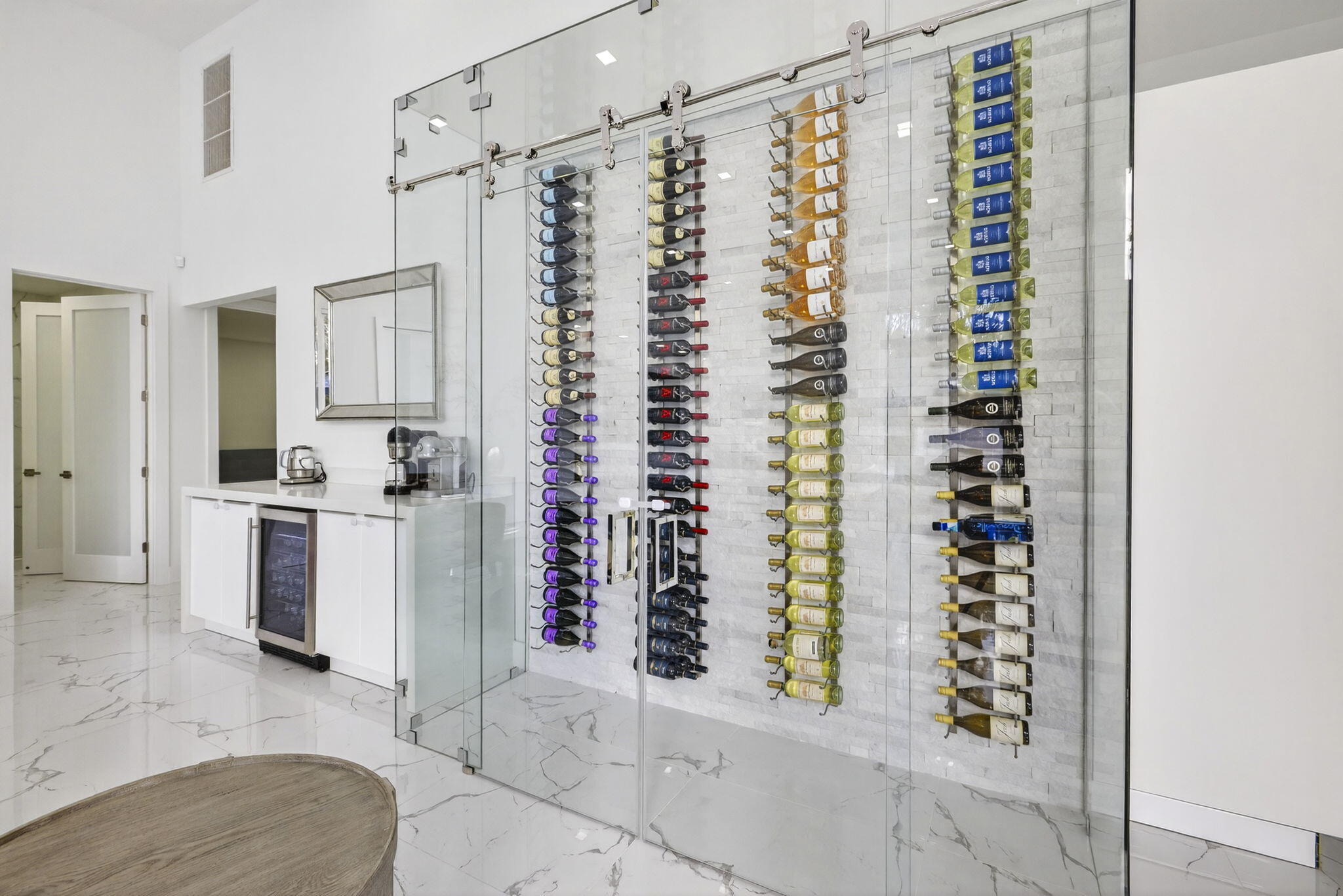 Experience refined luxury living in this spectacular single-story estate home, perfectly situated in the prestigious Village of Grand Oaks within the exclusive Broken Sound Country Club. Recently renovated and meticulously designed, this 6-bedroom, 6-bath courtyard residence offers the ultimate blend of modern elegance, privacy, and resort-style living. Step through the grand entry into an expansive great room with vaulted ceilings, smooth-finish walls, LED lighting, and a dramatic Glass wine display, all overlooking the serene courtyard and private pool. Walls of impact windows and automated blinds seamlessly connect the indoor and outdoor spaces, filling the home with natural light. The chef's kitchen is a showpiece, featuring double islands, white cabinetry, Quartz countertops,Stainless appliances, and exceptional storage, perfect for both intimate meals and grand entertaining. The split floor plan includes 4 bedrooms and 4 full baths in the main home, highlighted by a massive primary suite with floor-to-ceiling windows, tranquil courtyard views, dual walk-in closets, and a spa-inspired bathroom with an oversized jacuzzi tub, double shower, and luxurious finishes throughout. A separate 2-bedroom guest house, each with its own entrance, en-suite bath, and walk-in closet, provides unparalleled comfort and privacy for visitors, extended family, or live-in staff. The heart of the estate is the stunning courtyard oasis with white marble pavers, modern turf, and low-maintenance landscaping, offering a private retreat with a heated pool and spa. With no visible neighbors on either side and a massive side yard, the property feels secluded while still being close to every club amenity. Additional features include: Porcelain tile floors throughout Custom fireplace 3-car garage Impact-rated windows and doors Automated blinds Vaulted ceilings Private, secure courtyard entry This is an exceptional opportunity to own a turnkey contemporary estate in one of Boca Raton's most desirable country club communities. Luxury, privacy, and modern sophistication come together seamlessly in this remarkable residence.