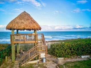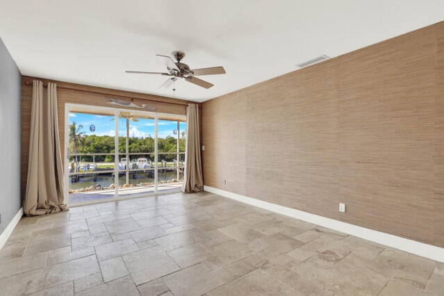 Beautiful riverfront condo with deeded dock. Tucked away and quiet gives the feeling of being in the Keys!Travertine floors, granite counter tops, stainless Bosch Induction stove top, Bosch dishwasher, new microwave, plantation shutters. A washer & dryer is included. DEEDED BEACH ACCESS AND TIKI HUT. Close to shopping and restaurants.