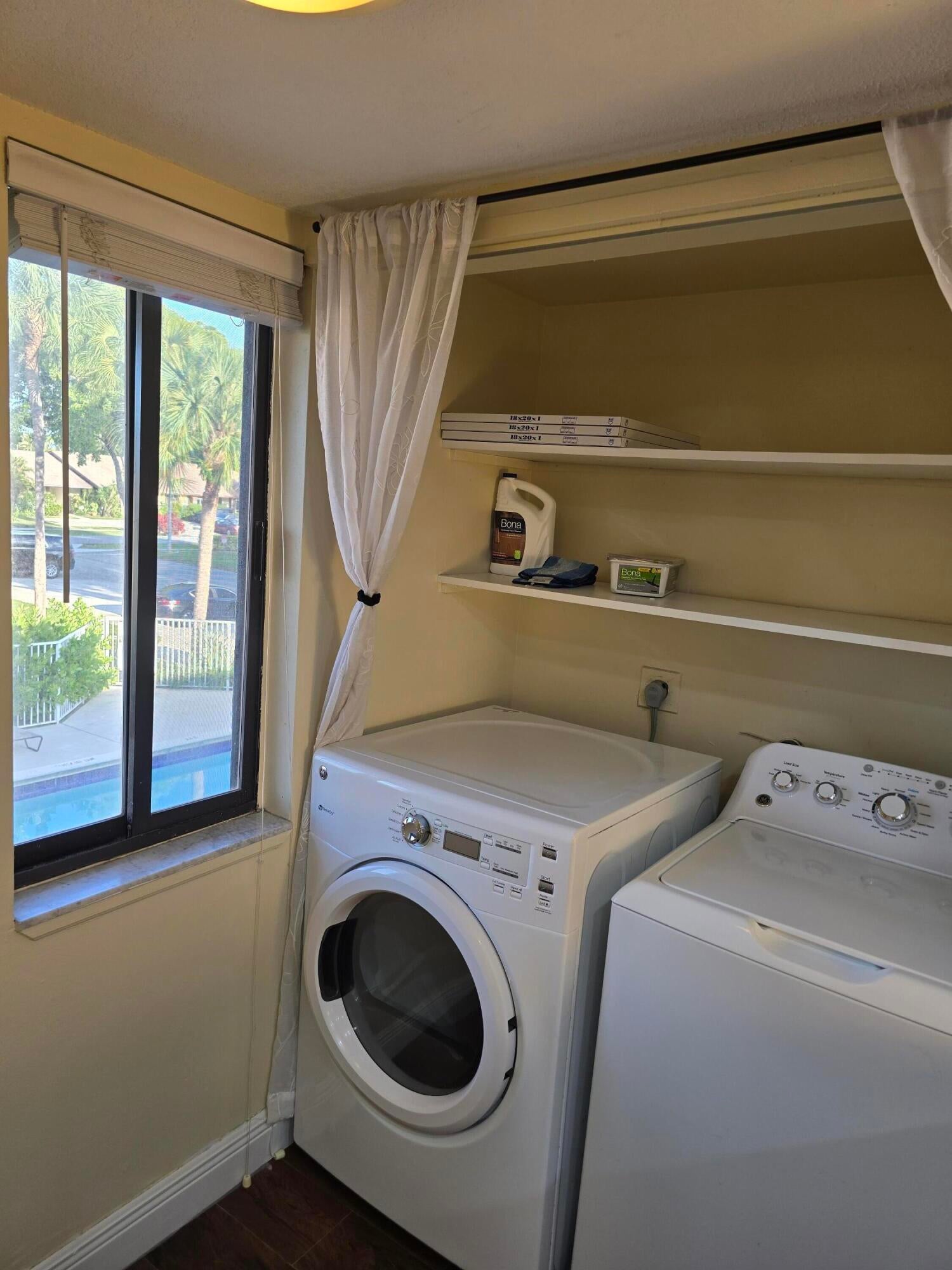 Rare opportunity in the heart of Wellington! This charming 2-bedroom, 2-bath condo offers generous living space and relaxing views of the community pool from both the guest bedroom and the kitchen. Enjoy an enclosed porch, an open balcony, and a convenient outdoor storage area. The fully equipped kitchen features stainless steel appliances, along with an in-unit laundry. Don't miss out on this fantastic opportunity.Se habla Español.